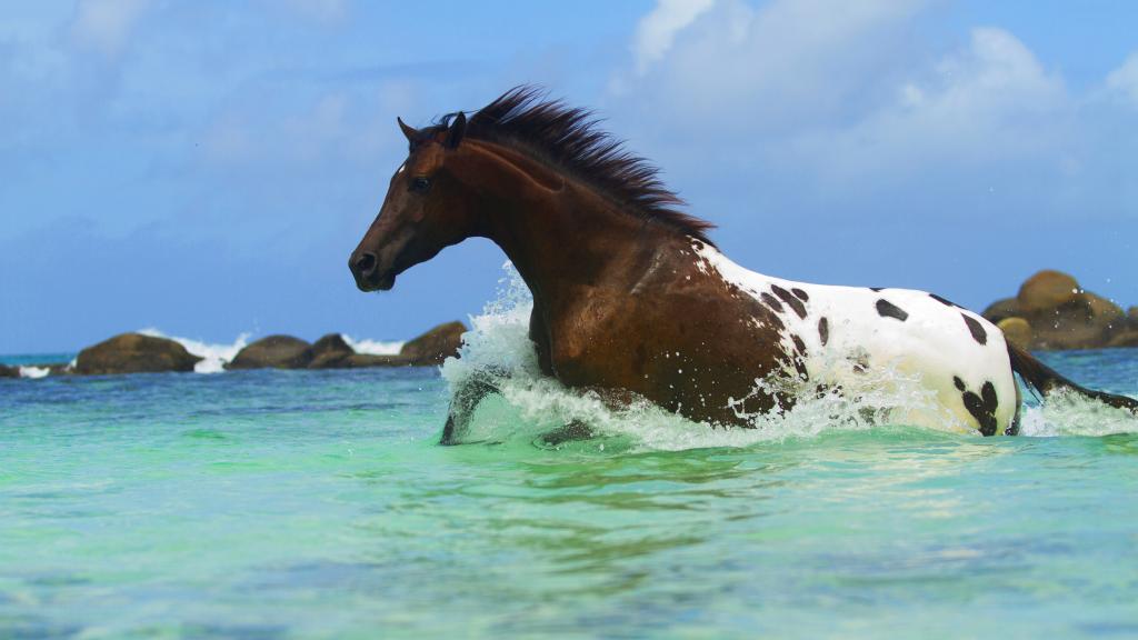 Auf Mahé gibt es die Möglichkeit, das Glück auf dem Rücken eines Pferdes zu erleben - ein besonderes Erlebnis, wenn man dabei an einem weißen Traumstrand entlang reiten kann. Wer reiten möchte, kann dies bei Turquoise Horse Trails nahe der Anse Barbarons tun. Dies ist der einzige Reitstall auf den Seychellen. Am frühen Morgen oder auch am frühen Abend ist ein Ausritt am Wasser besonders schön, denn dann ist kaum ein Mensch am Strand zu finden. Es macht großen Spaß, am Strand entlang zu traben oder auch einen Ritt durch den tropischen Regenwald zu erleben. Der Anbieter hat auch romantische Picknicks für Paare im Programm. Auf Anfrage stellen sie die Pferde auch für Hochzeiten oder Fotoshootings zur Verfügung.