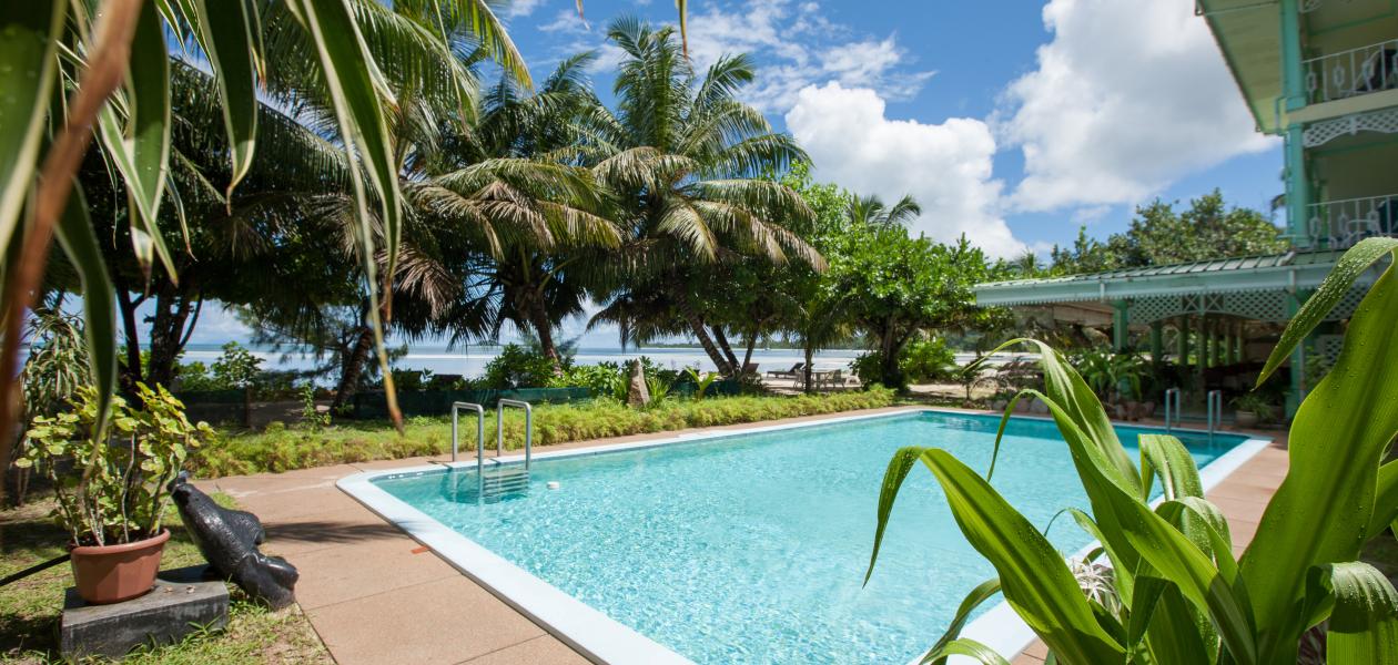 Das charmante "Palm Beach Hotel" befindet sich in einer Top-Lage direkt am Grand Anse Strand Praslins. Hier, umringt von Palmen und tropischen Blütenprachten, lässt sich ein Urlaub in reinster Harmonie verbringen.