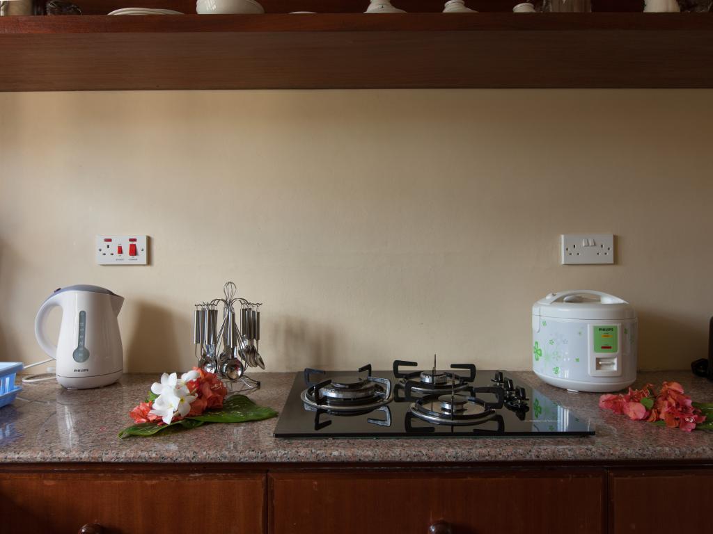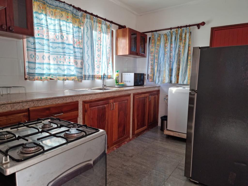 Lage sehr zentral an der "Anse Reunion" - 10 Minuten mit dem Fahrrad bis zum "TRAUMSTRAND". Supermärkte fußläufig schnell zu erreichen, Fahrradverleih nähe Supermarkt (7,00 € p./Tag und Fahrrad - Verhandlungssache). Großes Wohnzimmer mit Ventilator und Schlafzimmer mit Klimaanlage ohne Mängel. Bad sehr klein, keine Ablagen für Utensilien, keine Haken für Handtücher, Dusche wegen Defekt schlecht nutzbar, Spiegellampe defekt - haben uns im kleinen, ungepflegten Garten unter Außendusche geduscht. Küche groß, unsauber und sehr wenig nutzbares Geschirr. Mikrowelle ohne Haube, Reiskocher groß (für 24 Personen - wer braucht so etwas?), keine Geschirrtücher. Positiv: Waschmaschine vorhanden. Kühlschrank mit großen Gefrierfach o.k.. Fischküche (separat) extrem unsauber daher nicht empfehlenswert. Liegen im Garten uralt, Metall - ohne Auflagen, d. h. nicht nutzbar. Internet WLAN/WIFI funktioniert dort nicht.