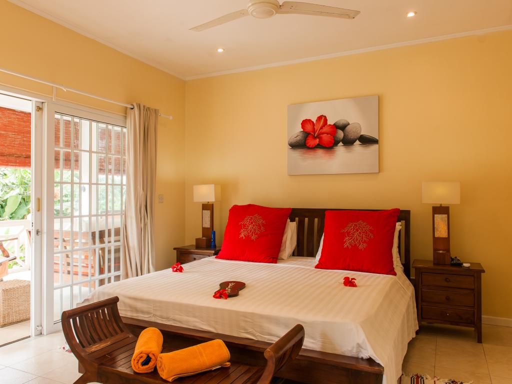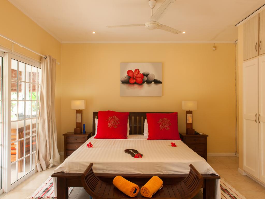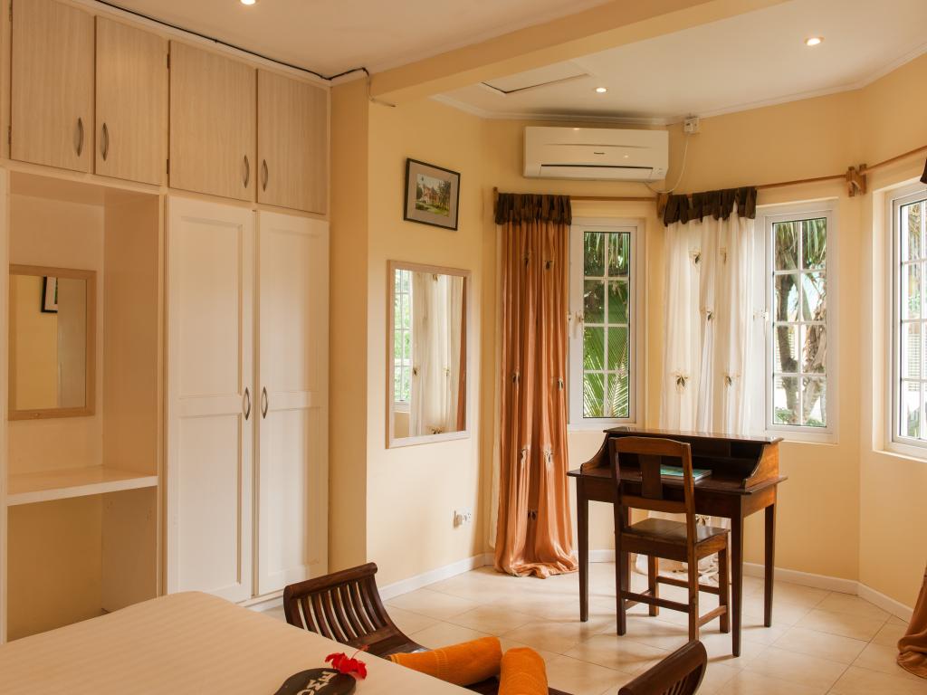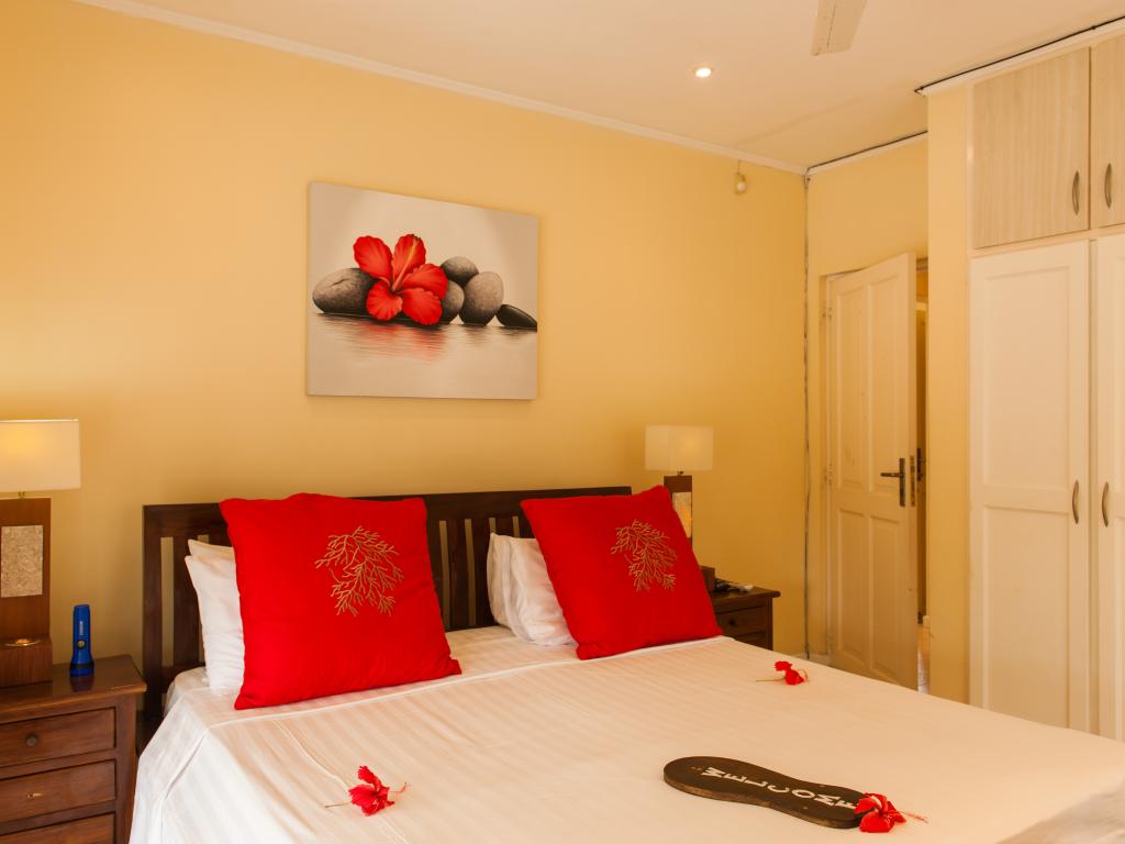 Unser letztes Domizil auf den Seychellen. Wir hatten das Studio im ersten Stock. Wunderbarer Blick auf‘s Meer aber mit vielbefahrener Straße vor dem Haus. Das ist aber hinlänglich beschrieben. Uns hat es nicht gestört. Die Lage im Südosten der Insel am Pointe du Sel hat uns sehr gut gefallen. Gegenüber liegt das Bacova Sur Mer. Man bekommt den Code für das Tor und schon ist man am Strand. Entgegen einiger Beschreibungen im Netzt hat uns dieser Strand sehr gut gefallen. Ruhig, klein und fein. Natürlich ist es wie überall mit vorgelagerten Riffen, das Wasser ist sehr ruhig aber Tiede abhängig. Will sagen bei Ebbe ist es mit dem Schwimmen schwierig. Dafür umso besser zum Schnorcheln.