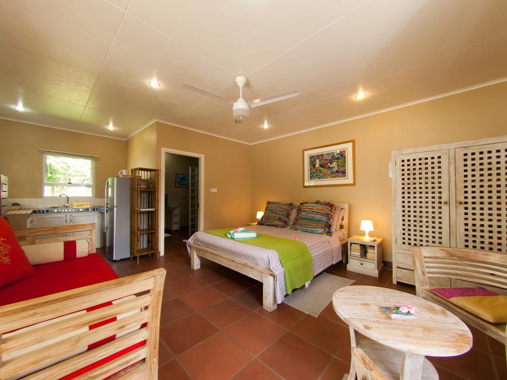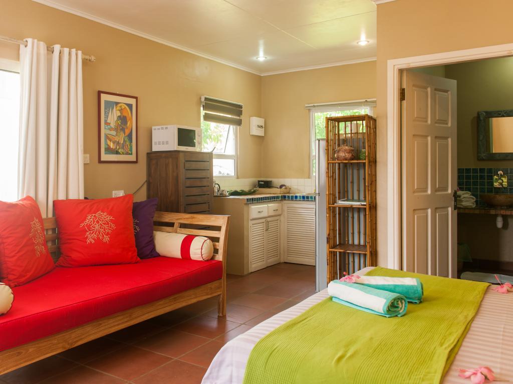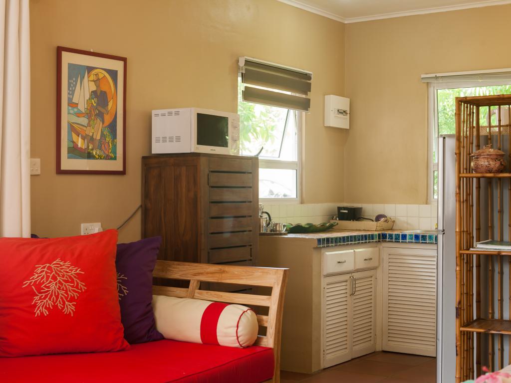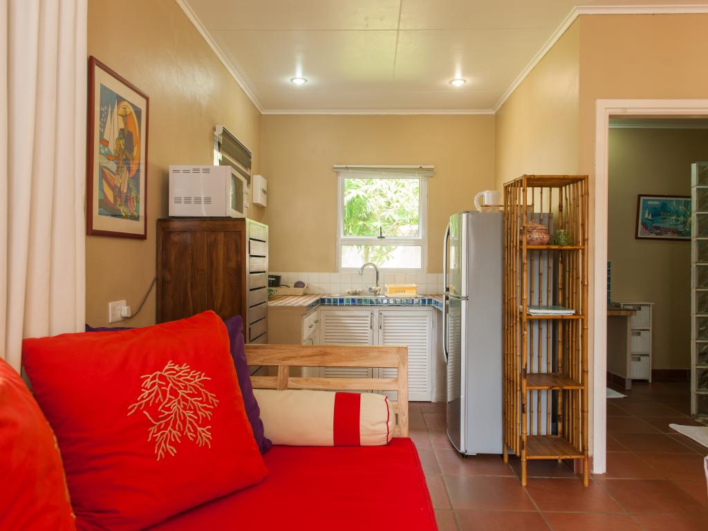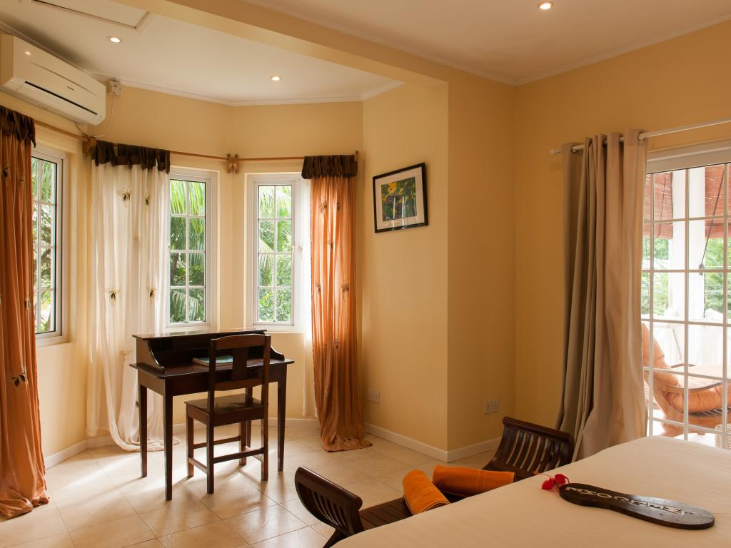 Unser letztes Domizil auf den Seychellen. Wir hatten das Studio im ersten Stock. Wunderbarer Blick auf‘s Meer aber mit vielbefahrener Straße vor dem Haus. Das ist aber hinlänglich beschrieben. Uns hat es nicht gestört. Die Lage im Südosten der Insel am Pointe du Sel hat uns sehr gut gefallen. Gegenüber liegt das Bacova Sur Mer. Man bekommt den Code für das Tor und schon ist man am Strand. Entgegen einiger Beschreibungen im Netzt hat uns dieser Strand sehr gut gefallen. Ruhig, klein und fein. Natürlich ist es wie überall mit vorgelagerten Riffen, das Wasser ist sehr ruhig aber Tiede abhängig. Will sagen bei Ebbe ist es mit dem Schwimmen schwierig. Dafür umso besser zum Schnorcheln.