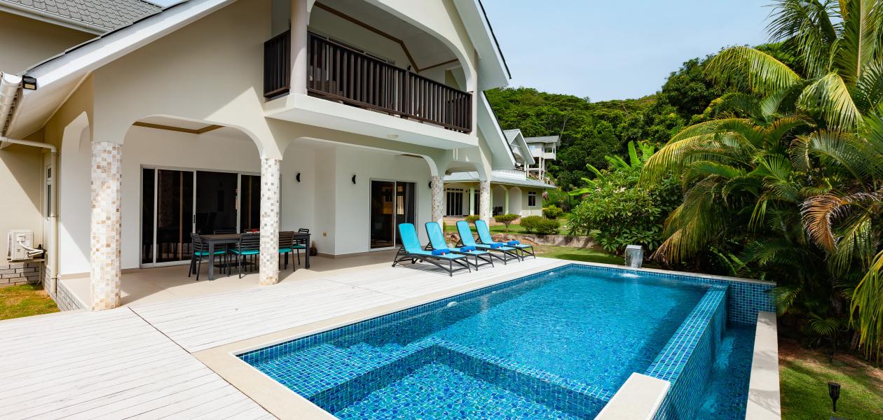 Die "Tranquility Villas" liegen unweit der ruhigsten Bucht Praslins, der Anse La Blague Bucht. Genießen Sie mit ihrem Partner oder aber ihrer ganzen Familie den spektakulären Blick vom eigenen Balkon aus und lassen Sie sich vom wohltuenden Seychellen-Flair überzeugen.