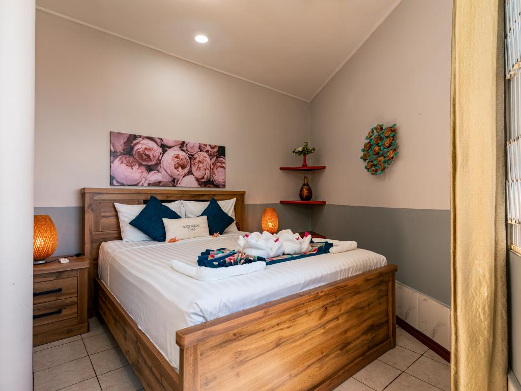 Beryl (spricht auch Deutsch), Brian und ihr Team sind unglaublich freundliche und herzliche Gastgeber. Das Frühstück wird auf der Pool Terrasse serviert. Abendessen kann vorab für moderate Kosten gebucht werden wenn gewünscht. Mietwagen werden direkt vor Ort angeboten. Extrem steile Zufahrt, funktioniert aber. Supermarkt direkt an der Einfahrt. Wir konnten am Abreisetag für den halben Preis das Zimmer noch bis Abends nutzen. Ein echter Mehrwert wenn man erst um Mitternacht zurück fliegt.