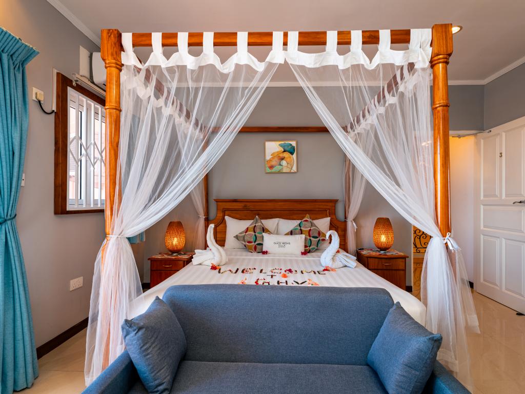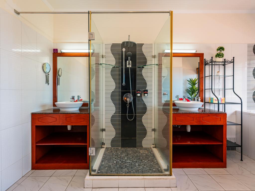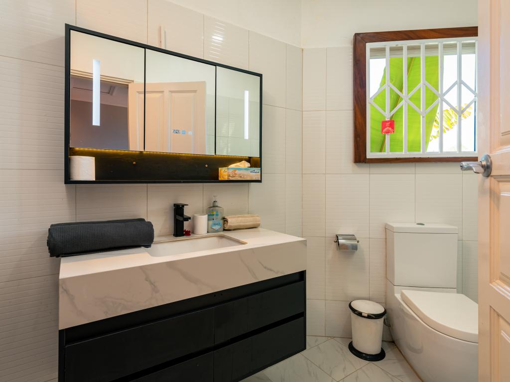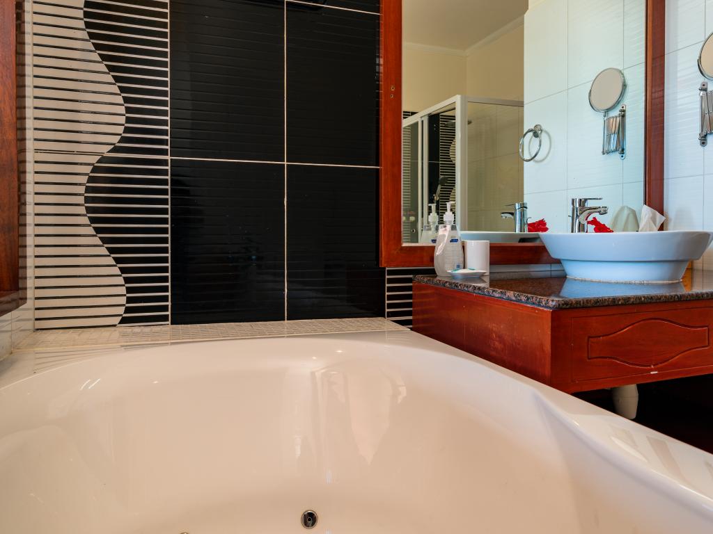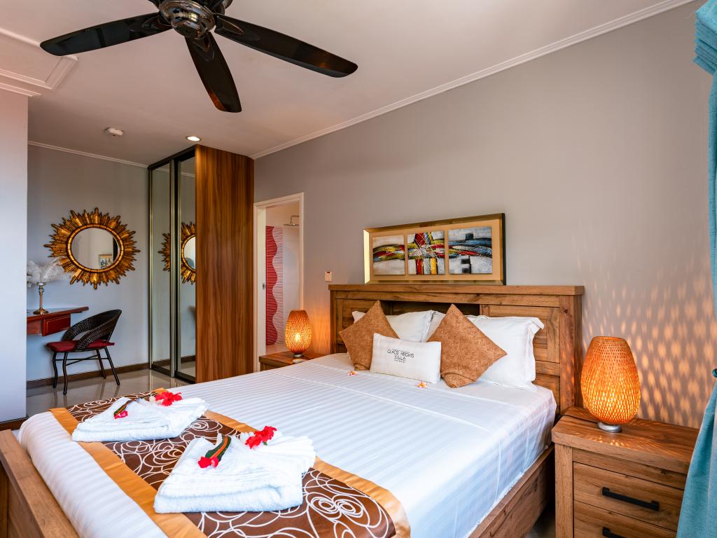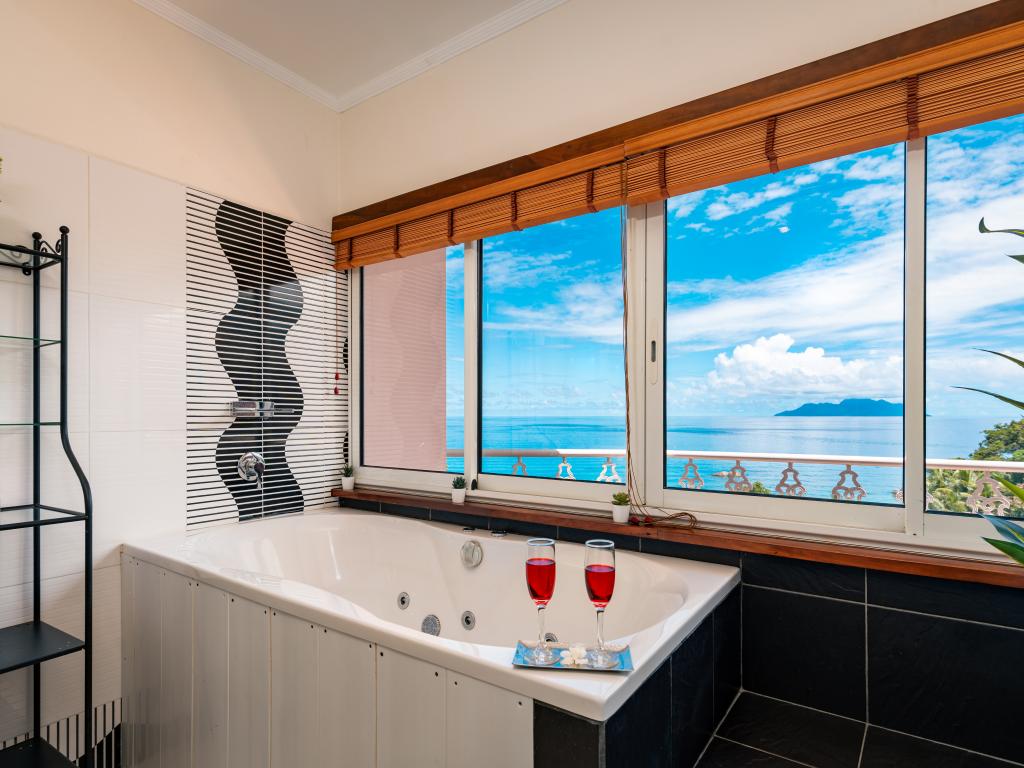 Die moderne und komfortabel ausgestattete Glacis Heights Villa befindet sich auf der Insel Mahé. Man hat von hier aus einen herrlichen Blick auf den Indischen Ozean und Silhouette Island. Der wunderschöne Strand Beau Vallon ist von der Unterkunft 5 und das Stadtzentrum von Victoria 15 Autominuten entfernt.