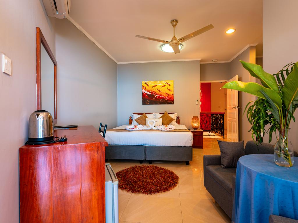 Sehr sportliche Zufahrt (extrem steil) gab dadurch mit SeyVillas auch eine kurze Irritation. Wird von den Transferfahrzeugen nicht angefahren. Braucht man eigentlich einen Privaten Transfer. Hat dann SeyVillas aus Kulanz übernommen, weil das bei der Buchung noch nicht bekannt war. Sehr löblich.