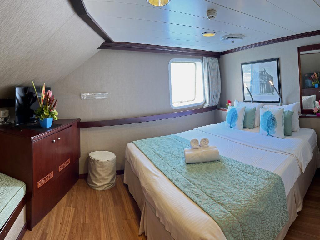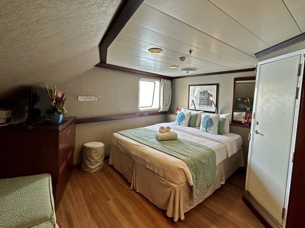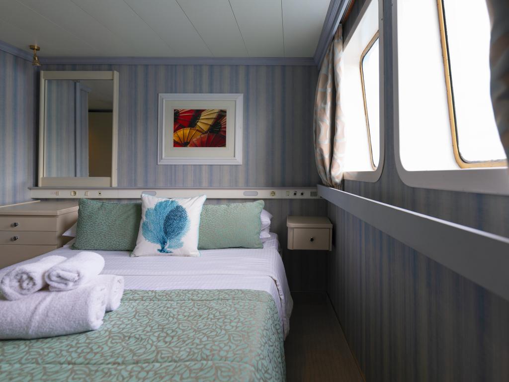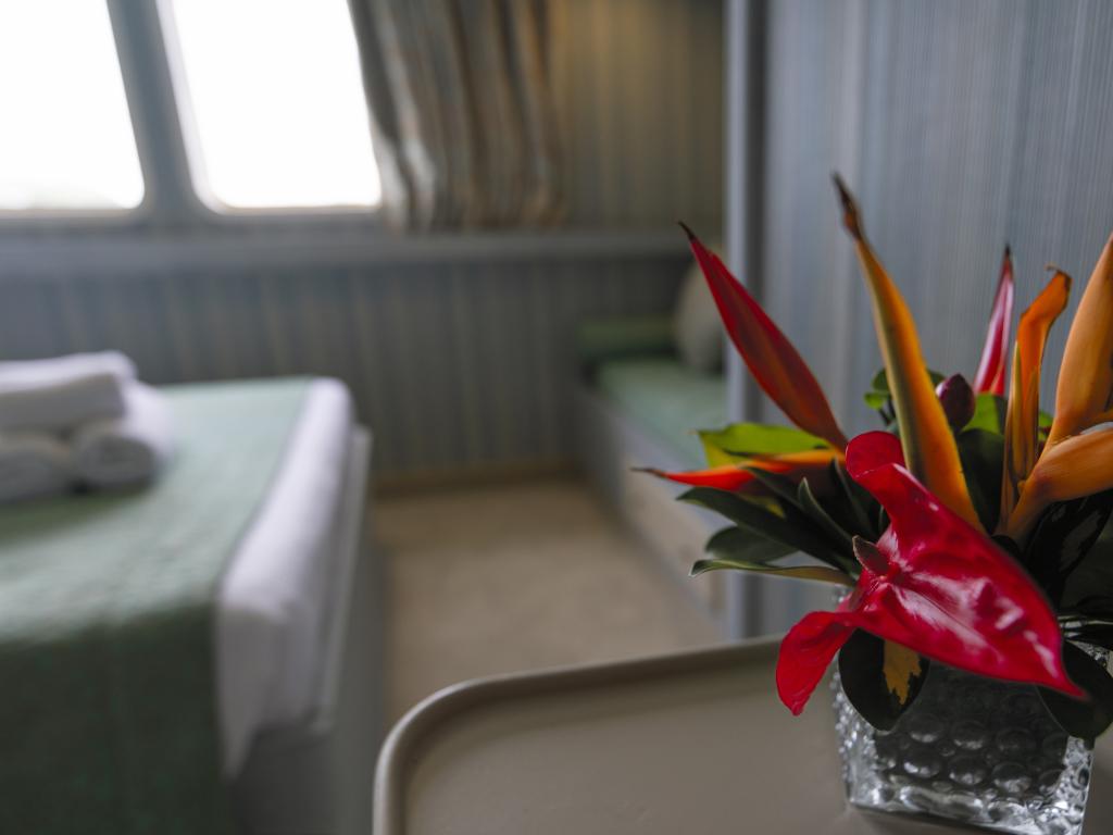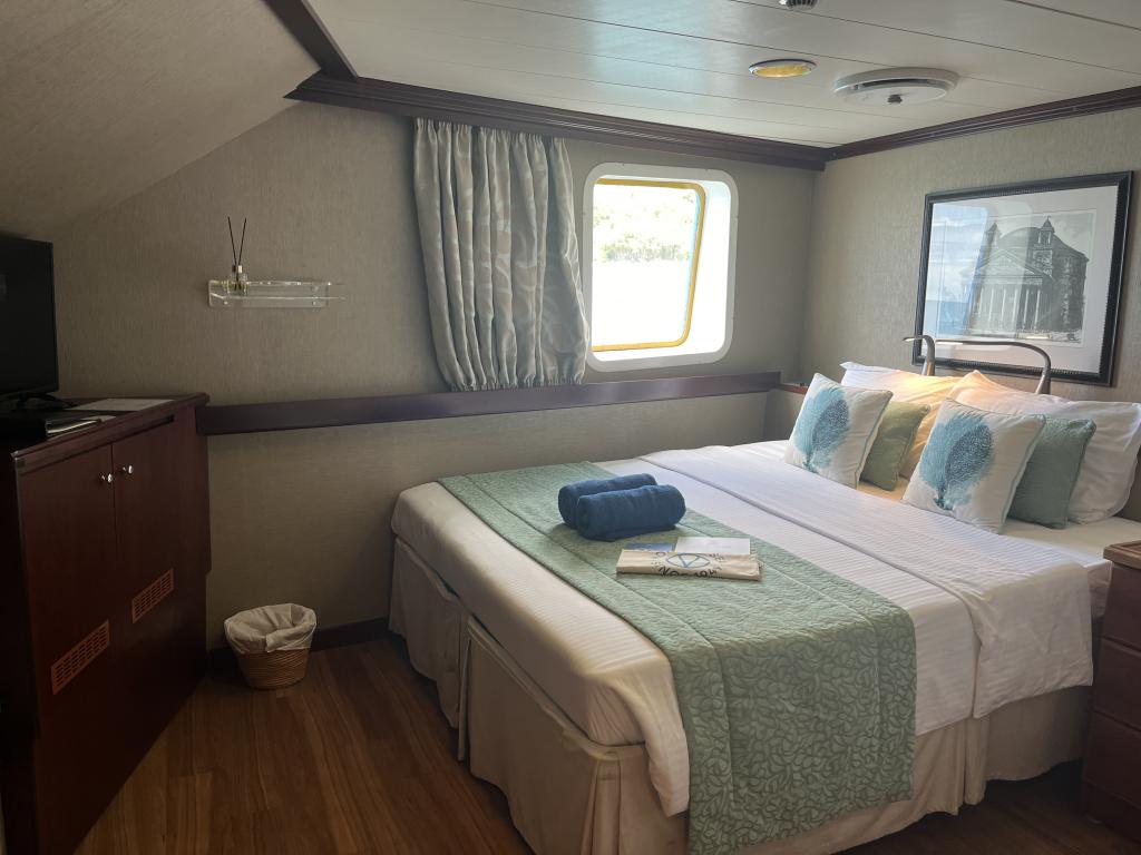 Sehr aufmerksames , freundliches Personal. Sauberkeit und der gesamte Service perfekt. Ansprechende Lounge und Essbereich . Verpflegung nett präsent und immer schmackhaft. Zum Dinner immer weiße Tischdecken. Einen deutlichen Abzug gibt es für die Kaninen. Dringend renovierungsbedürftig ! Die Schranktüren und Schubladen sowie auch unsere Toilettentür konnten aufgrund des Alters nicht genügend gesichert werden bei stärkerem Wellengang . So dass der Kapitän sich Einlass durch das Fenster zu unserer Kabinentür verschaffen musste. Grund war eine hervorragende Schublade. Sicherheitsproblem : die Kabinentür muss nach außen aufgehen. Fluchtweg !!! Badtür liess sich nicht arretieren so dass ich mir beim Wellengang die Fingergelenke verletzt habe. Scharfe Kante an der Begrenzung der Dusche am Boden. Verletzungsgefahr der Füße. Wir hatten das große Glück, dass das Boot nur mit 15 Gästen statt 40 belegt war . Und davon waren auch noch 3 Kinder. Wir hatten eine der preisgünstigsten Kabinen C . Nachdem ich mir andere Kabinen von anderen Gästen angeschaut habe, stellte ich fest dass unsere Kabine mit Abstand die kleinste war. Badtür liess sich nur zur Hälfte öffnen und stieß gegen das Bett so dass man weder rein noch raus konnte. Meine Mutter war aber mit Abstand, die älteste (80) Person auf dem Boot . Hier hätte ich mir mehr Flexiebilität vom Hotelmanager gewünscht. Bzw. Würde ich von vornherein nicht die älteste Person in die kleinste u. unkompfortabelste Kabine stecken wenn ich noch 14 leere Kabinen habe. Auch in der gleichen Kategorie war noch etwas frei. So dass wir insgesamt die Pegasus nicht empfehlen können und definitiv nicht mehr buchen werden.