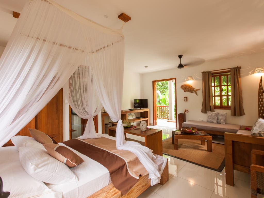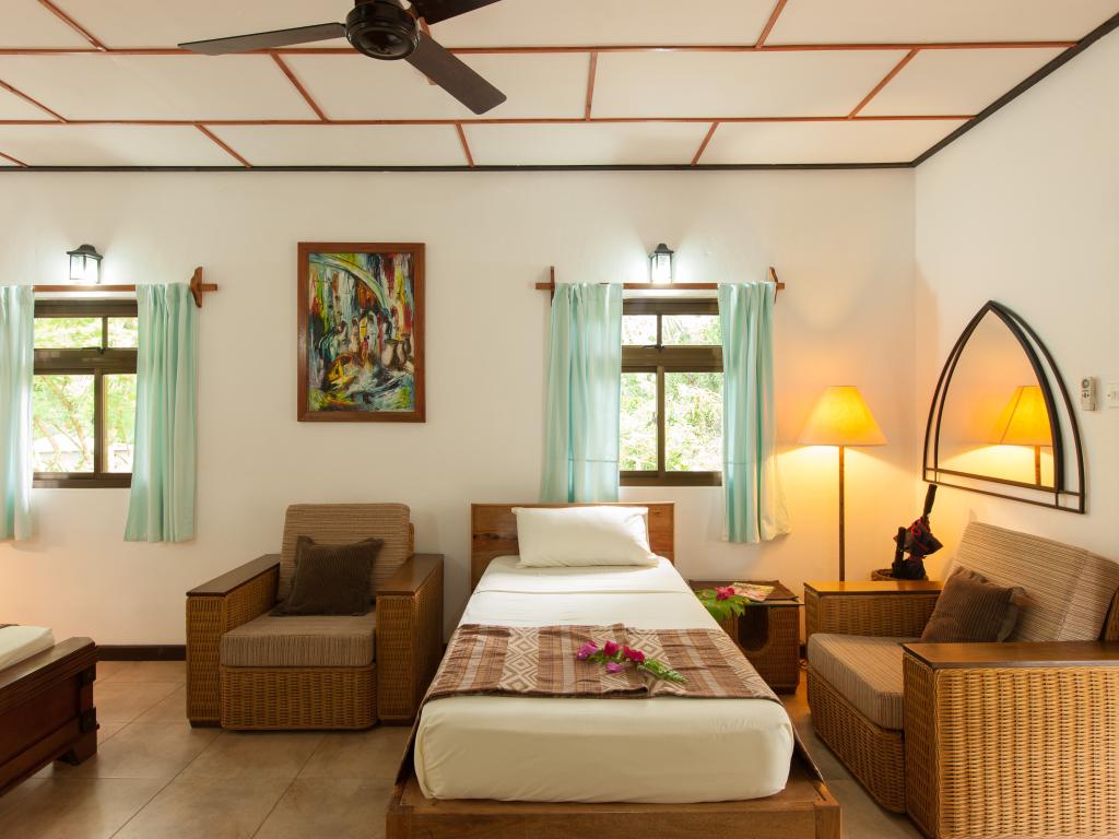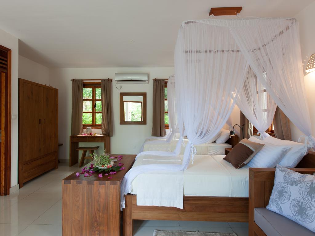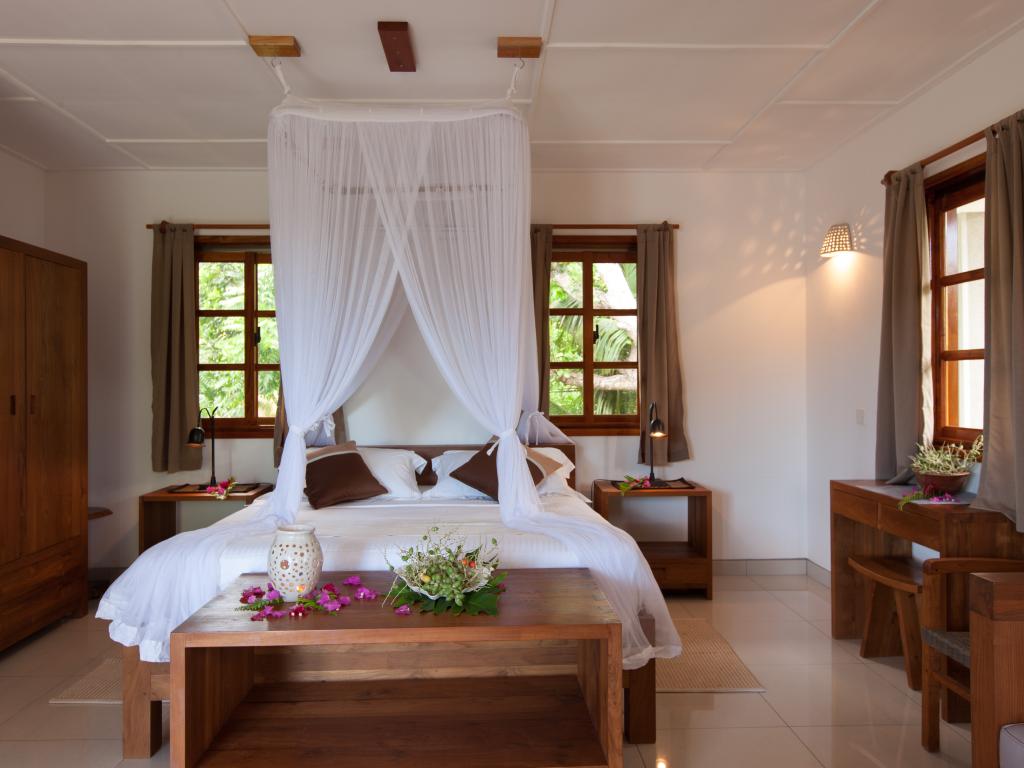 Das "Domaine Les Rochers" ist eine charmante kleine Unterkunft auf La Digue, in einem tropischen Garten und im Herzen des Dorfes La Passe gelegen. Es stehen hier zwei Selbstversorger-Bungalows und vier moderne Appartments zur Verfügung.