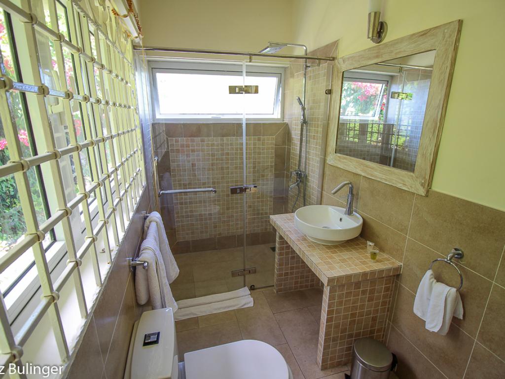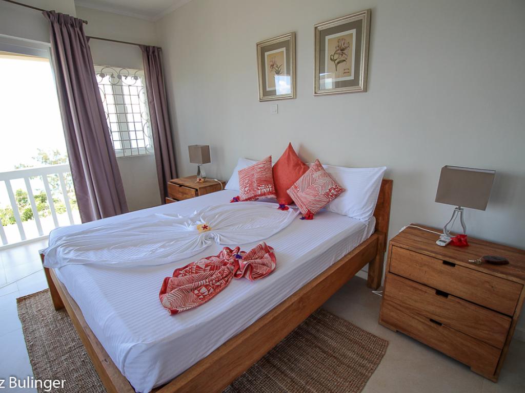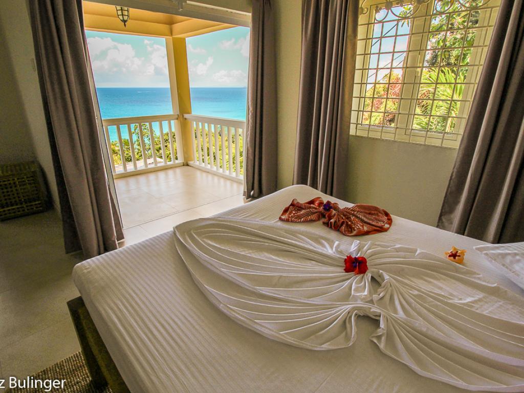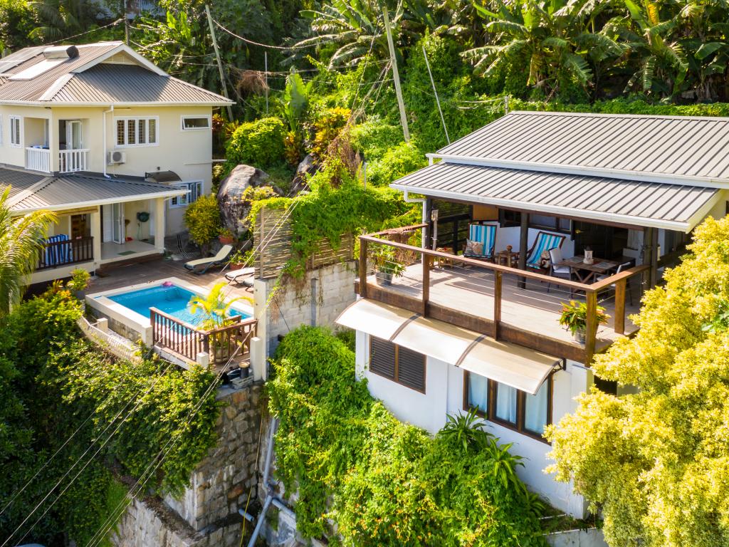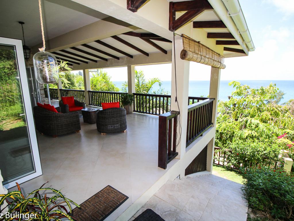 In einem ruhigen Wohngebiet im Norden von Mahé liegt das charmante Landhaus "Kaz Bulinger". Sie genießen von hier aus einen atemberaubenden Blick auf den Ozean. Weniger als 100 Meter unterhalb der Villa, auf der anderen Straßenseite, findet man eine felsige Küste - ideal zum Schwimmen, Schnorcheln oder einfach nur Entspannen.