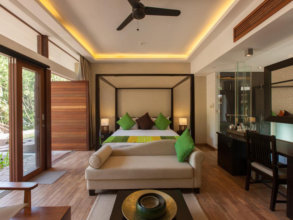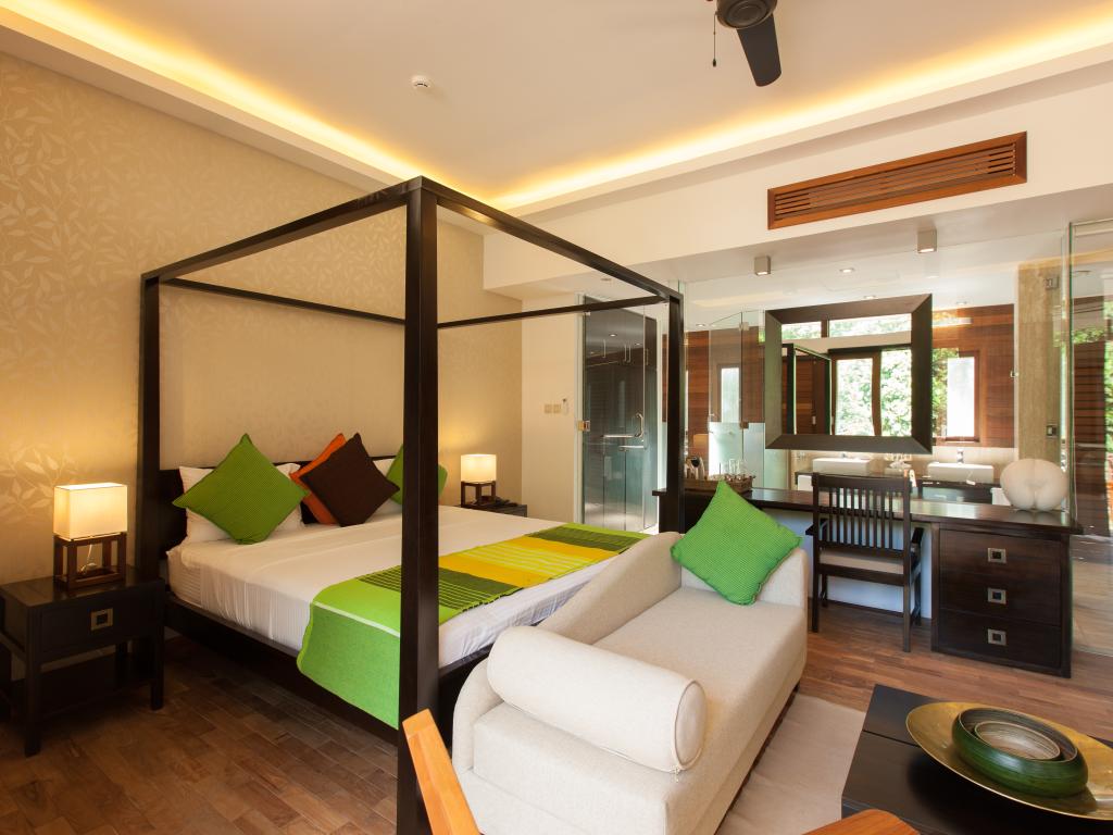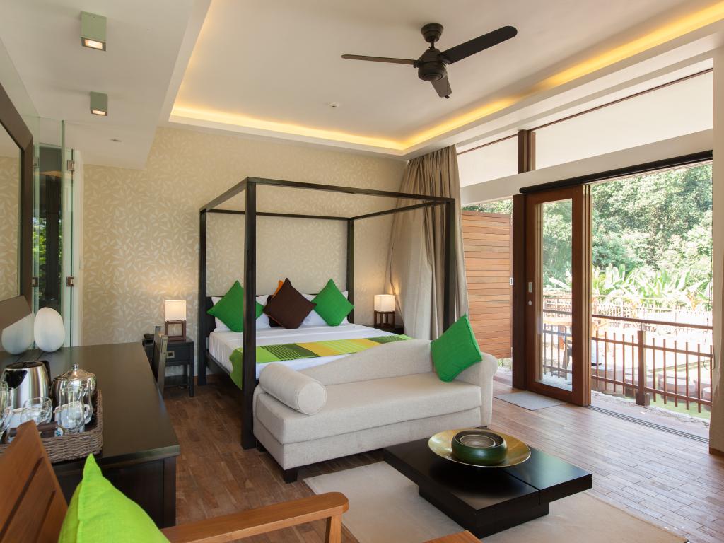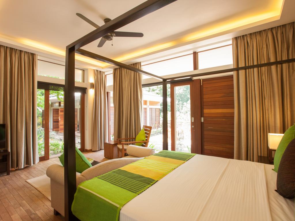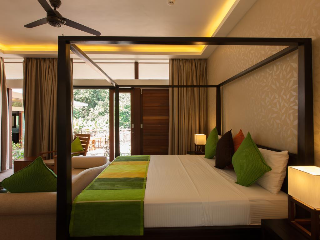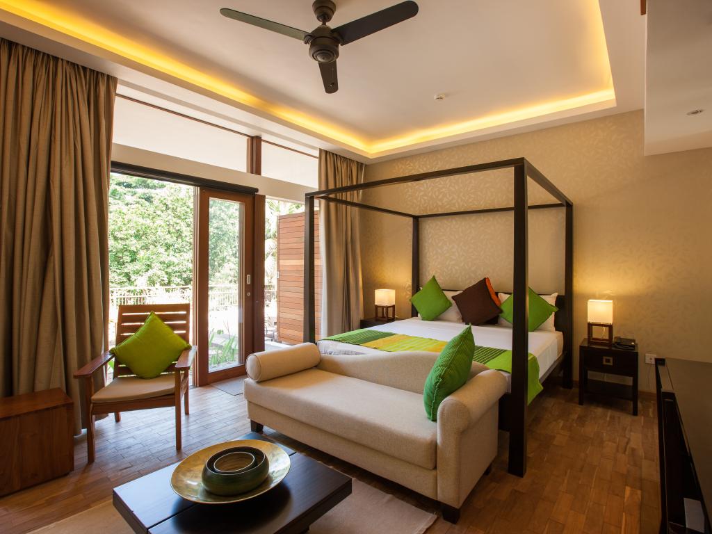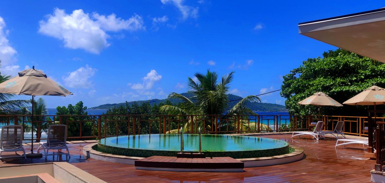 Klein, aber fein - auf diese Weise empfängt die "Le Relax Luxury Lodge" ihre Gäste. Die charmante Anlage schmiegt sich an einen tropisch begrünten Hang, befindet sich also inmitten der Natur, zugleich jedoch direkt am weißen, feinsandigen Traumstrand Anse Gaulettes.