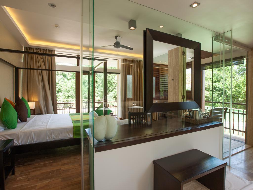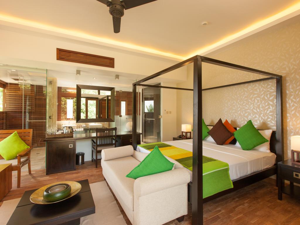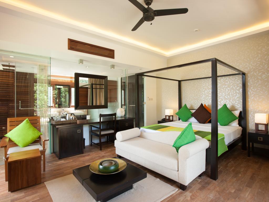 Das Zimmer war sehr stylisch eingerichtet. Kann nicht Jedermann Geschmack sein. Sonst Garten nicht gerade gepflegt. Whirlpool geht nicht, was Gáste schon seit Monaten schreiben. Pool ist nur 90 cm tief und es fehlen Fliesen. Angeblich sind sie ja unterwegs laut Direktor, aber er soll mal unter das erste Haus schauen, da liegen seit Jahren der Ersatz.