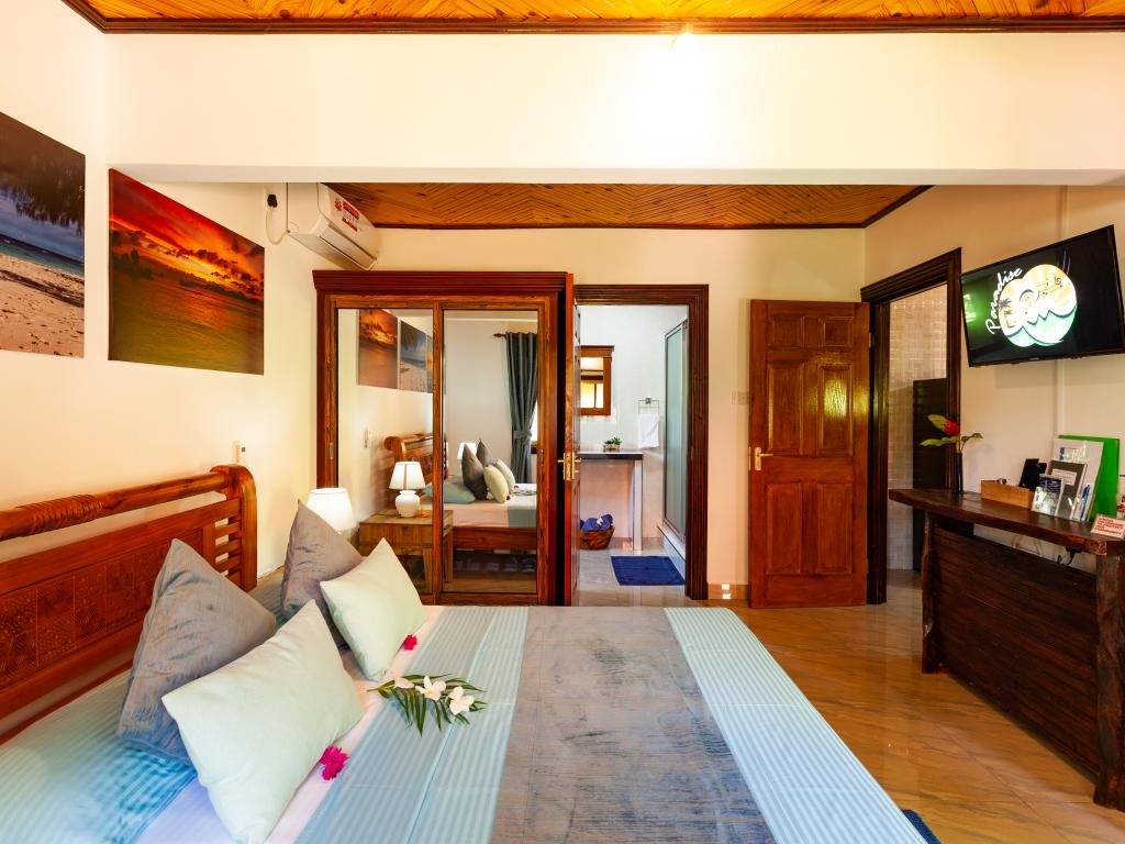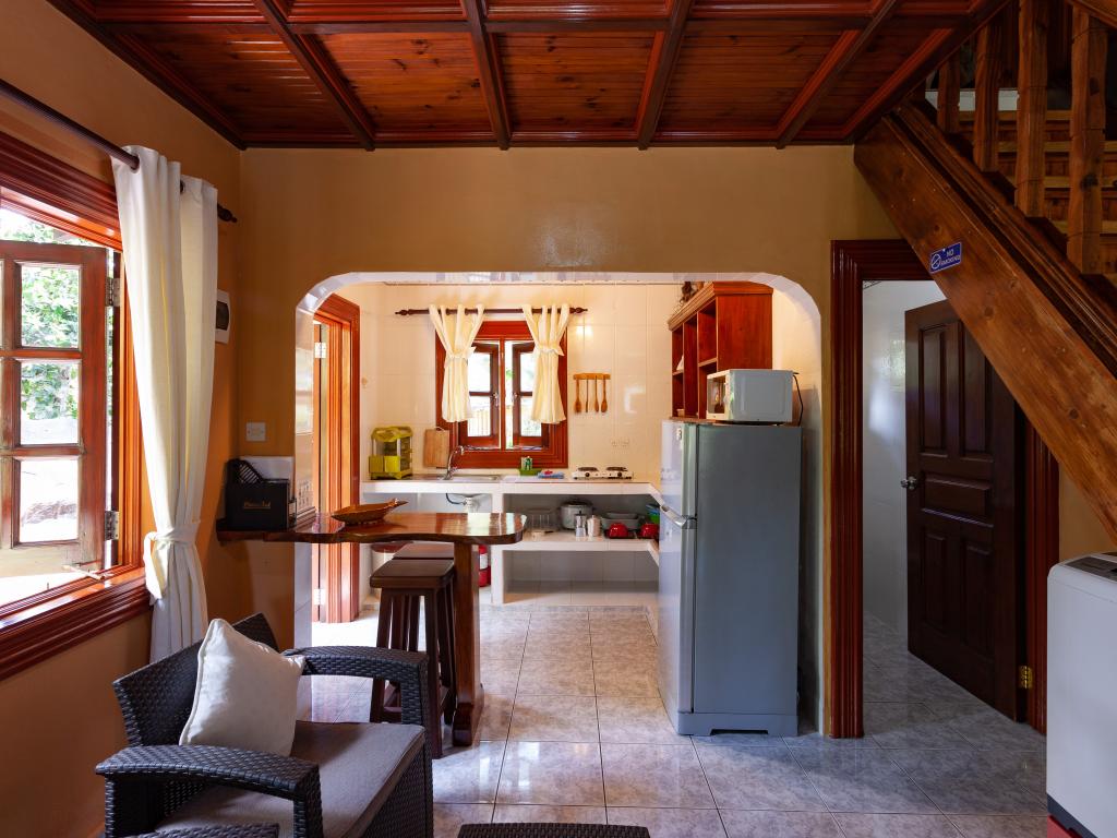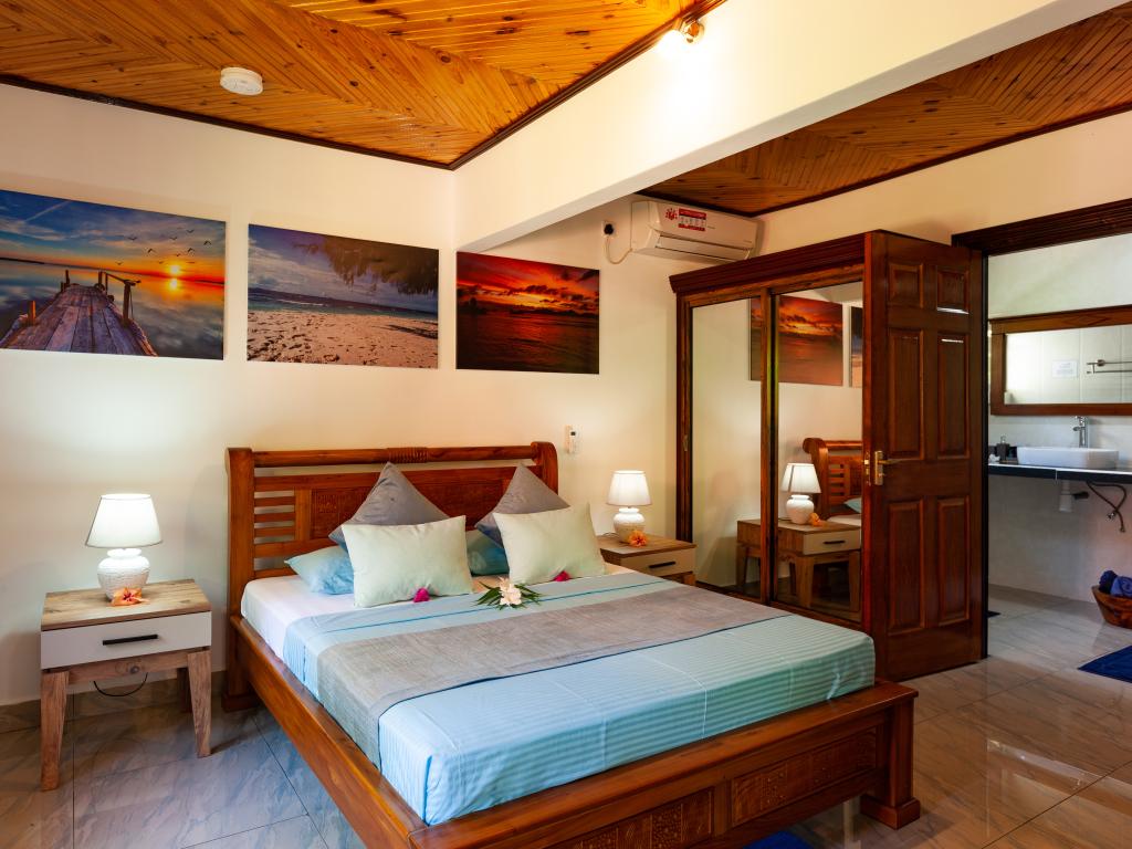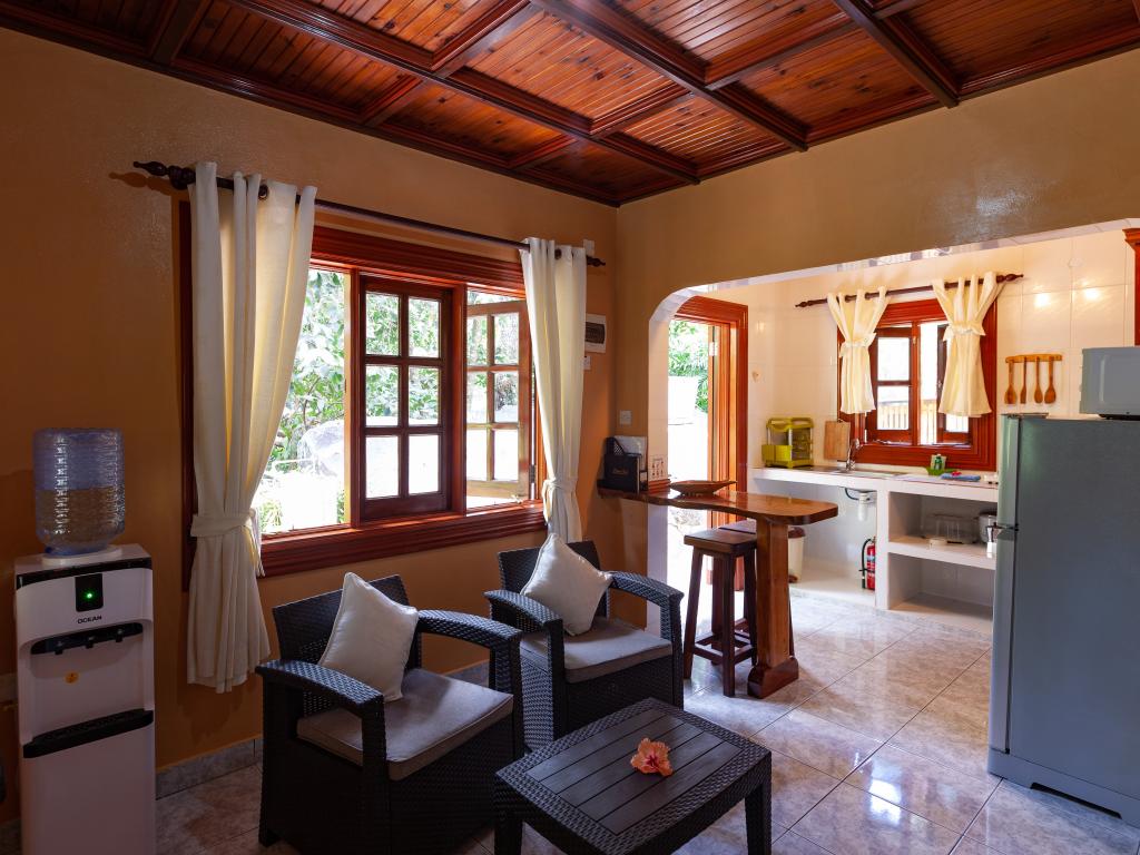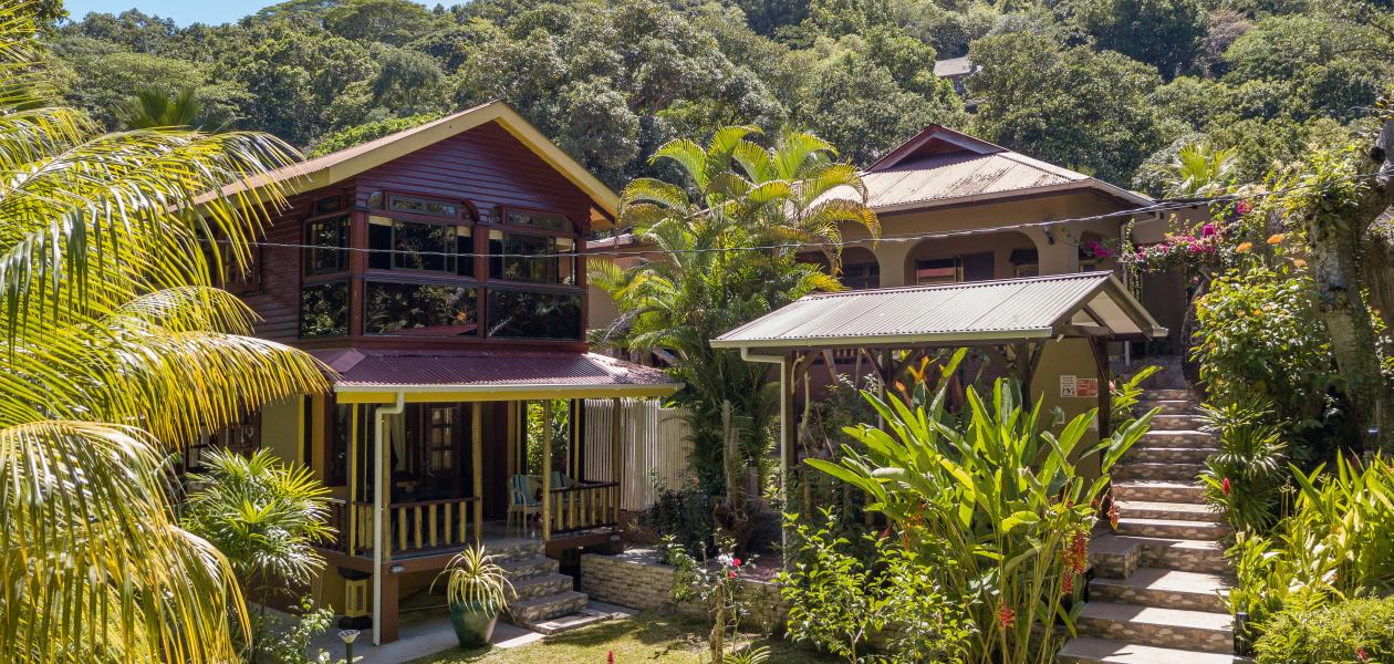 Nur fünf Fußminuten vom Landungssteg in La Passe entfernt, lassen sich an diesem Fleckchen Erde ruhige Urlaubstage in angenehmer Privatsphäre verbringen. Das zweigeschossige Haus und ein Appartment jeweils für ein bis drei Personen ist von einer einmalig üppigen Vegetation umgeben, und gleich gegenüber des Gartens sorgt ein Kiosk für das Erfrischungsgetränk oder den Snack zwischendurch.