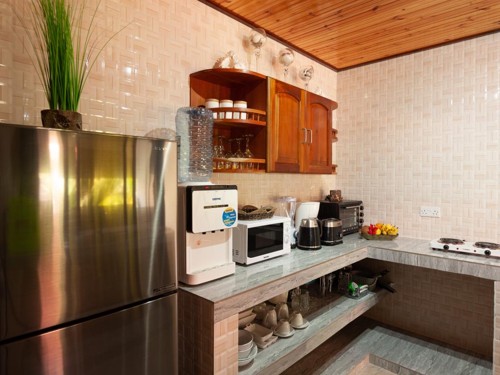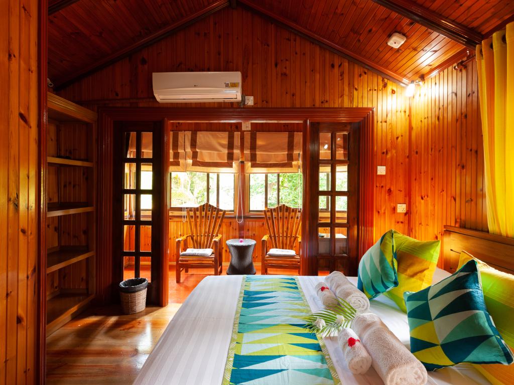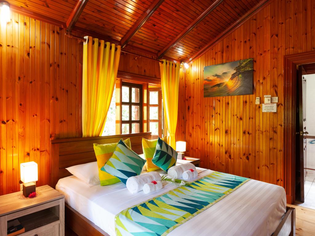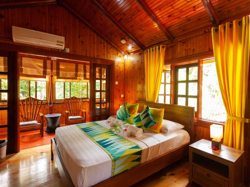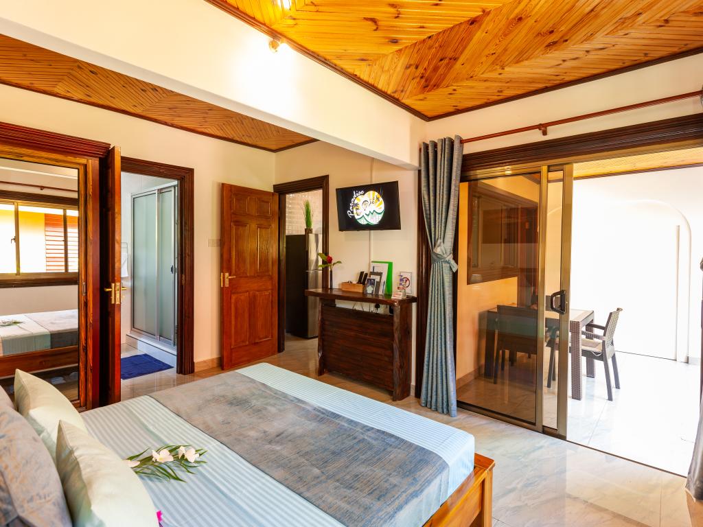 Nur fünf Fußminuten vom Landungssteg in La Passe entfernt, lassen sich an diesem Fleckchen Erde ruhige Urlaubstage in angenehmer Privatsphäre verbringen. Das zweigeschossige Haus und ein Appartment jeweils für ein bis drei Personen ist von einer einmalig üppigen Vegetation umgeben, und gleich gegenüber des Gartens sorgt ein Kiosk für das Erfrischungsgetränk oder den Snack zwischendurch.