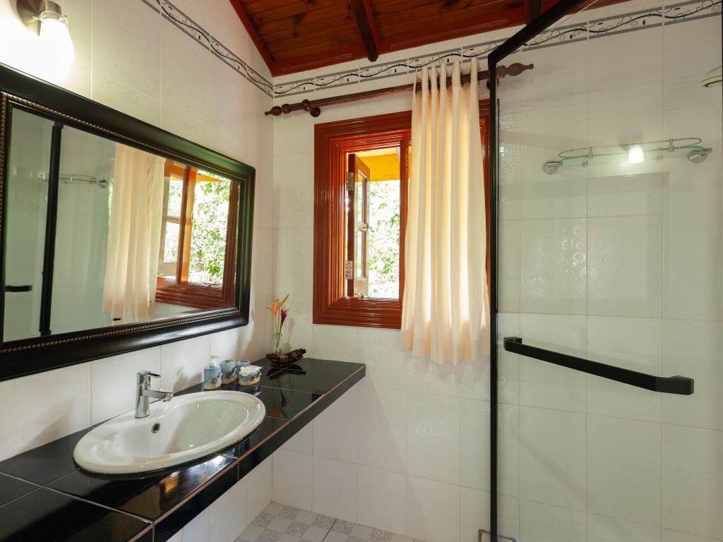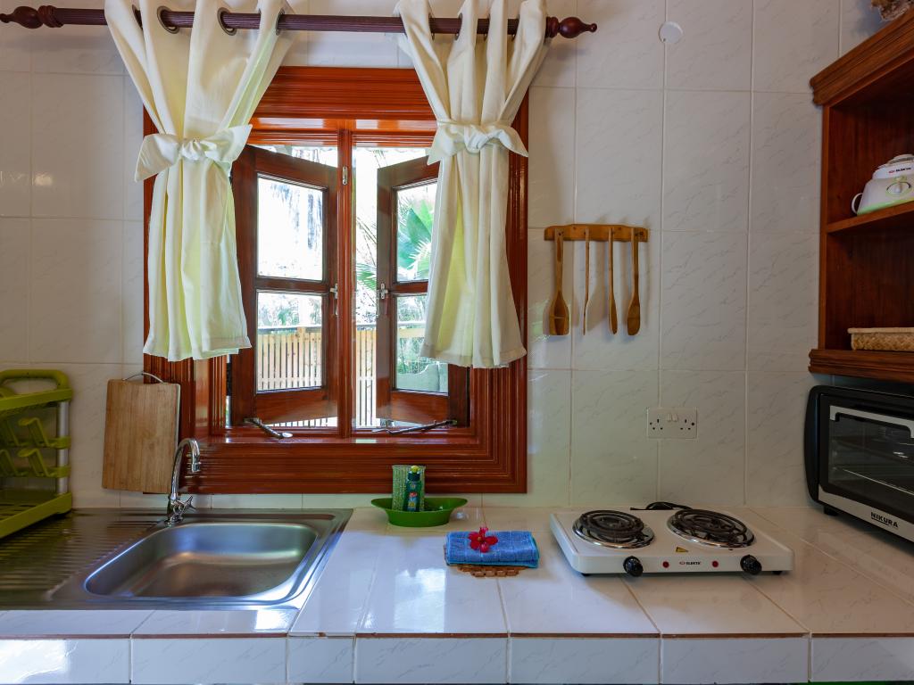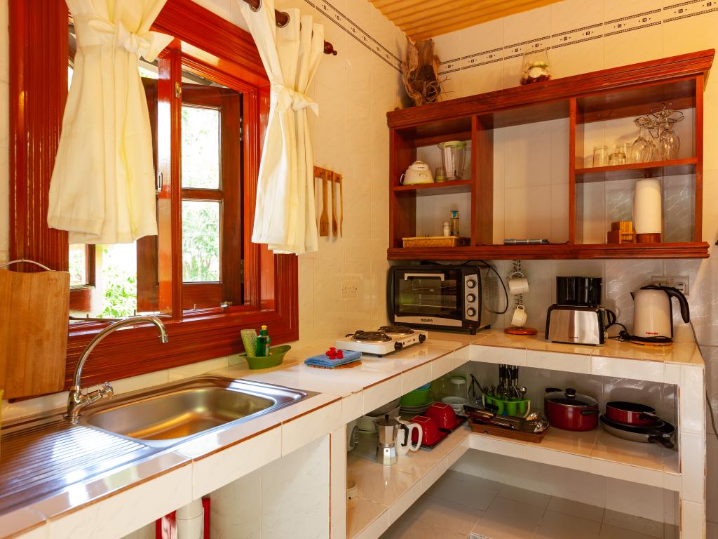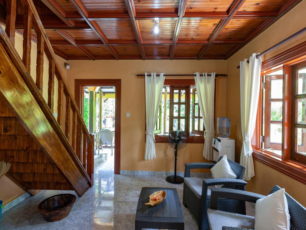 Wir hatten das kleine Haus in kreolischer Bauweise umgeben von einem sehr schönen Garten. Oben befindet sich das Schlaf- und Badezimmer und unten die gut ausgestattete Küche.