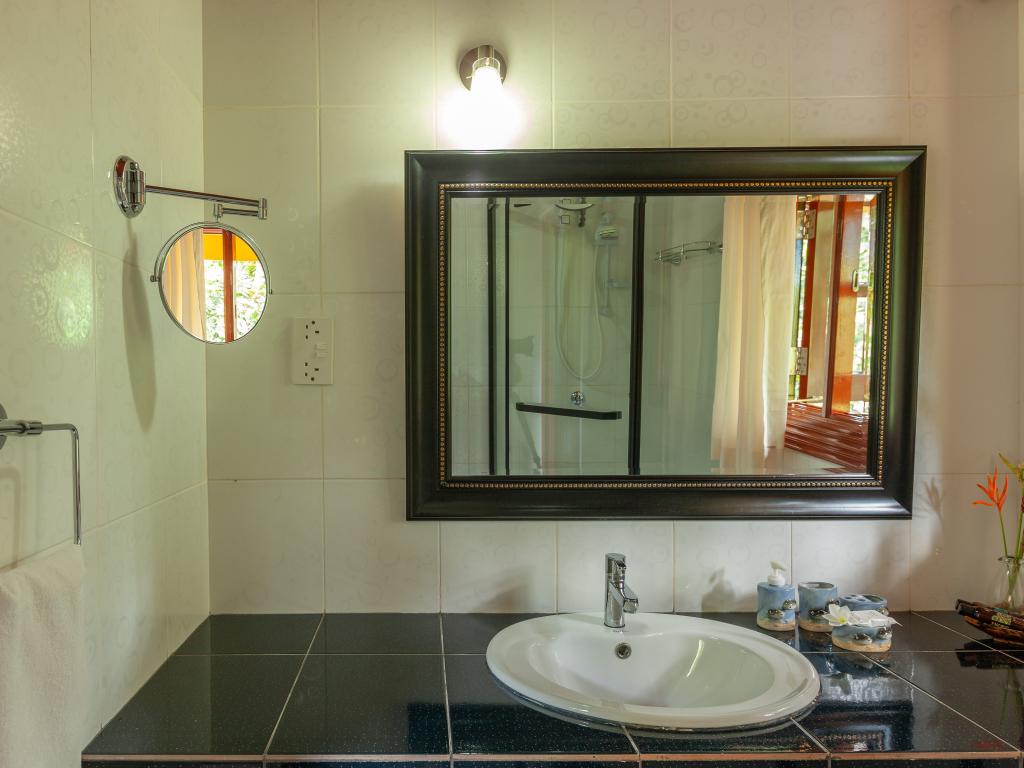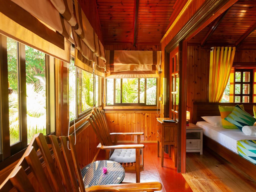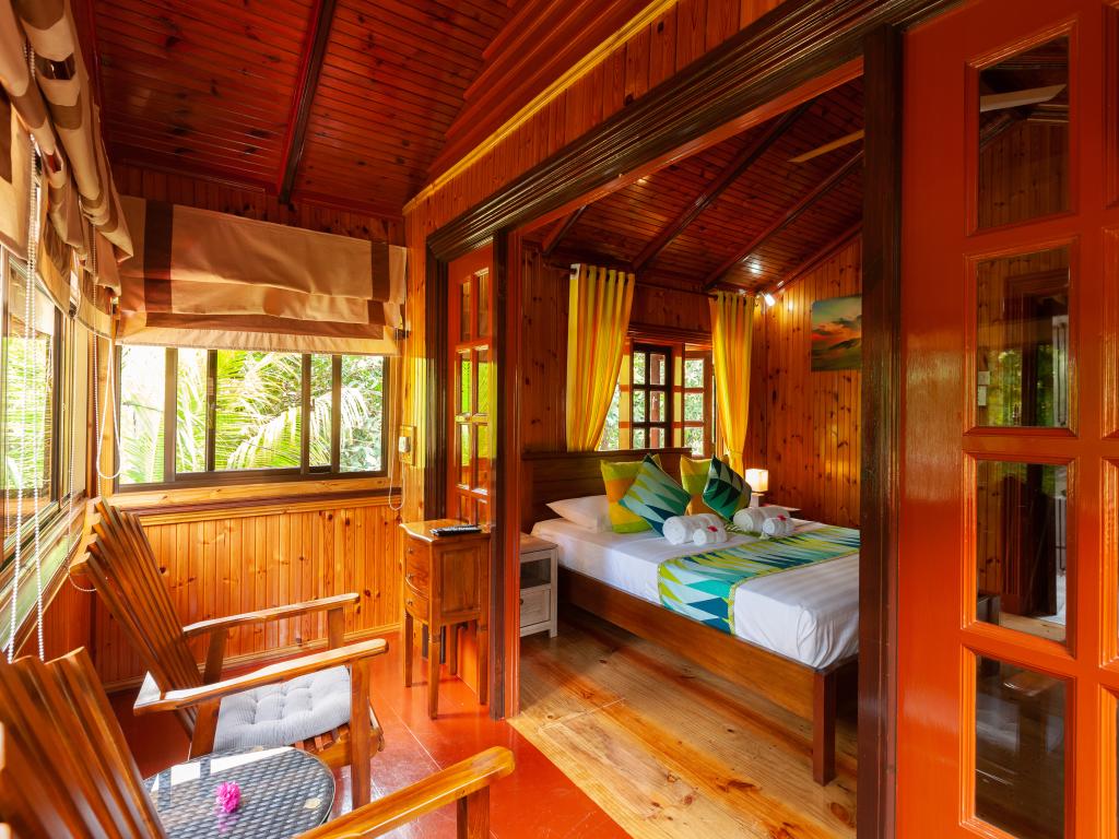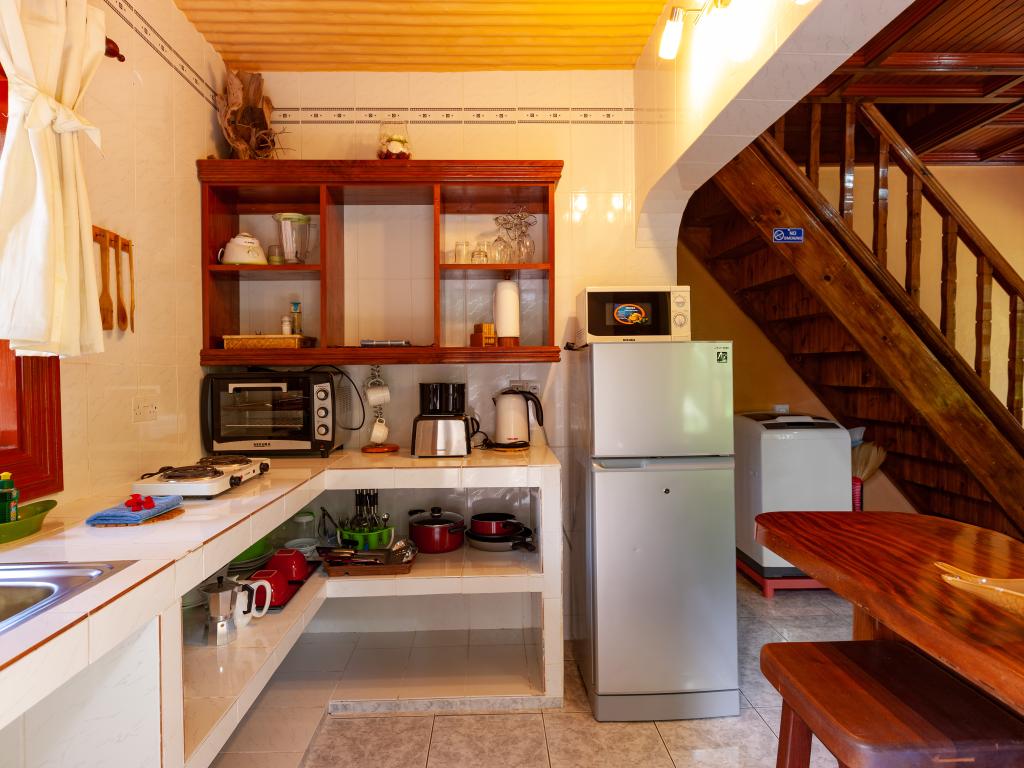 Wir hatten das kleine Haus in kreolischer Bauweise umgeben von einem sehr schönen Garten. Oben befindet sich das Schlaf- und Badezimmer und unten die gut ausgestattete Küche.