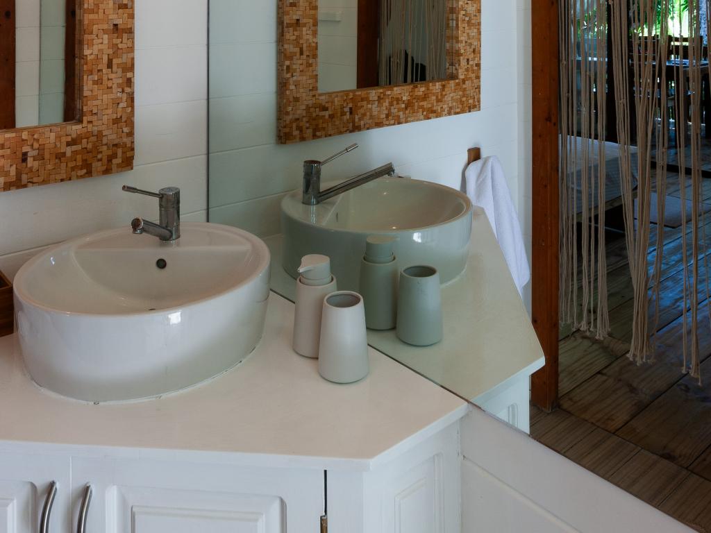 Translation (IT): GoogleTranslateWir hatten das Merle Beach Studio in den La Pointe Beach Huts auf Praslin und haben uns rundum wohlgefühlt. Das Studio war sehr gemütlich und im passenden Strandstil eingerichtet. Besonders praktisch war die kleine Küchenzeile, in der wir problemlos selbst kochen konnten – alles, was man für eine Woche braucht, war vorhanden.