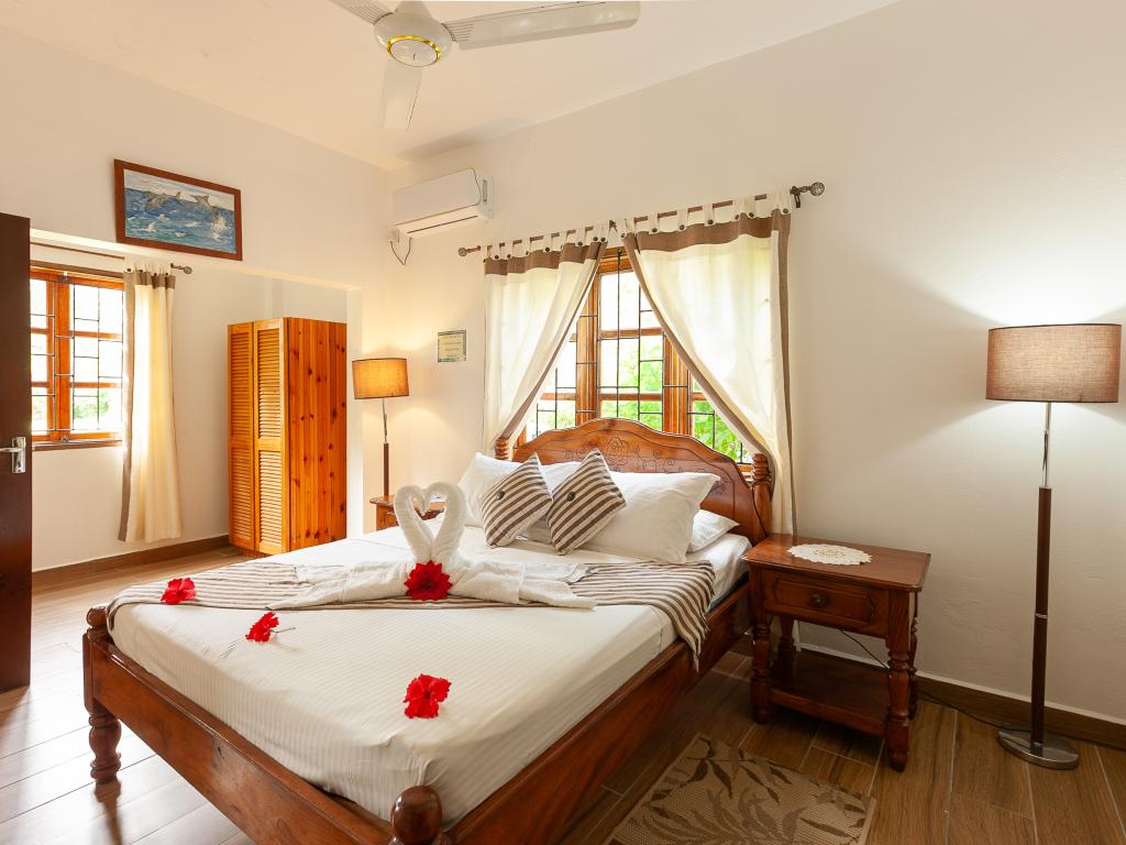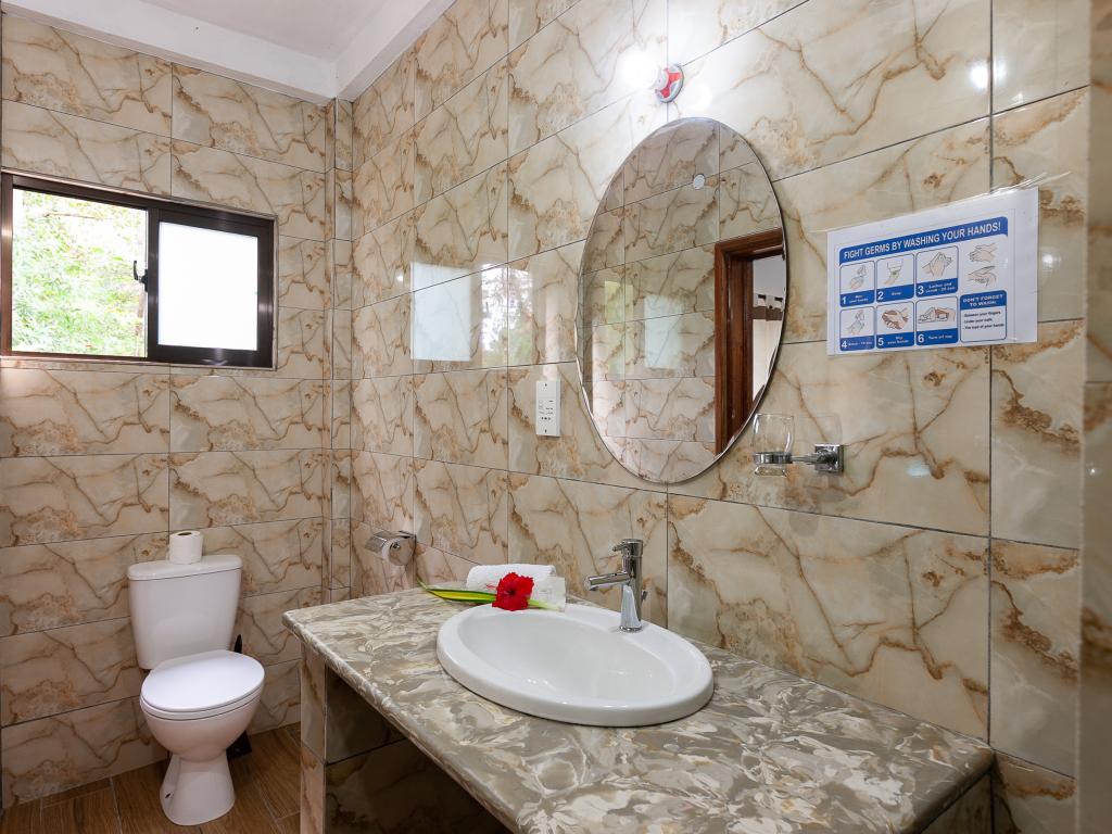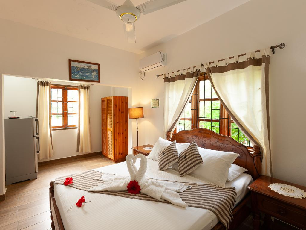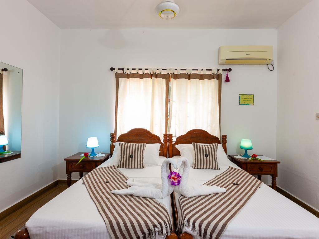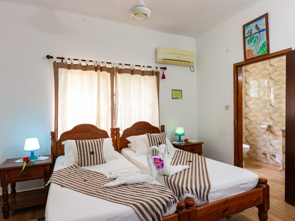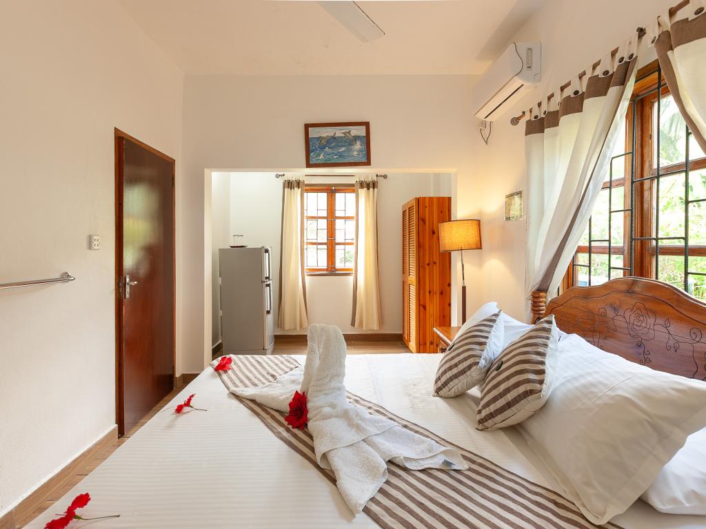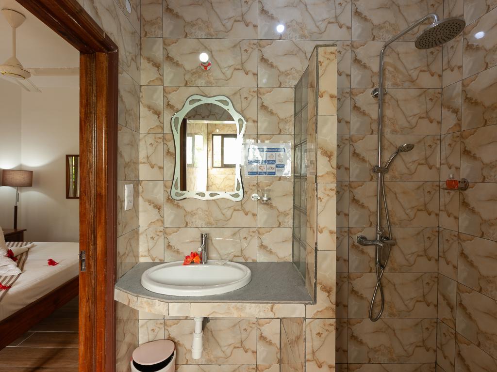 Das Personal war sehr freundlich, und die Möglichkeit, Fahrräder auszuleihen, wurde sehr geschätzt. Das Zimmer war nicht sehr groß und bot wenig Platz für Gepäck; das Badezimmer war jedoch sehr schön, mit einer schönen Dusche und einer großen Außenterrasse mit Tisch und Stühlen. Das Frühstück war jeden Tag anders und außergewöhnlich, mit frischen Säften, Tee, Obst, Toast mit Marmelade, Joghurt oder Porridge und einer Auswahl an Gerichten (Fisch, Eier oder typisch kreolische Spezialitäten). Die Lage ist praktisch, um die Insel mit dem Fahrrad zu erkunden, denn ein Imbiss und kleine Märkte sind nur 3 Minuten entfernt.