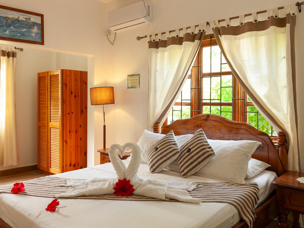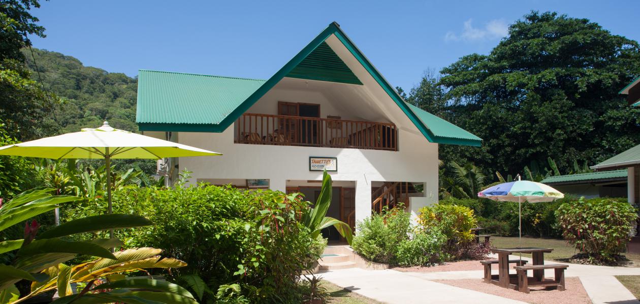 Herrlich ruhig geht es zu, rings um die "Tannette's Villa", während man hier zugleich eine sehr attraktive infrastrukturelle Anbindung durch die Nähe zum Dorf La Passe genießt. Das unmittelbare Umfeld präsentiert sich üppig grün bis waldig - Sie wohnen "auf Du und Du" mit dem hier beheimateten "Seychellen-Paradiesschnäpper", der mit diesem Namen seinem Lebensraum La Digue alle Ehre macht.