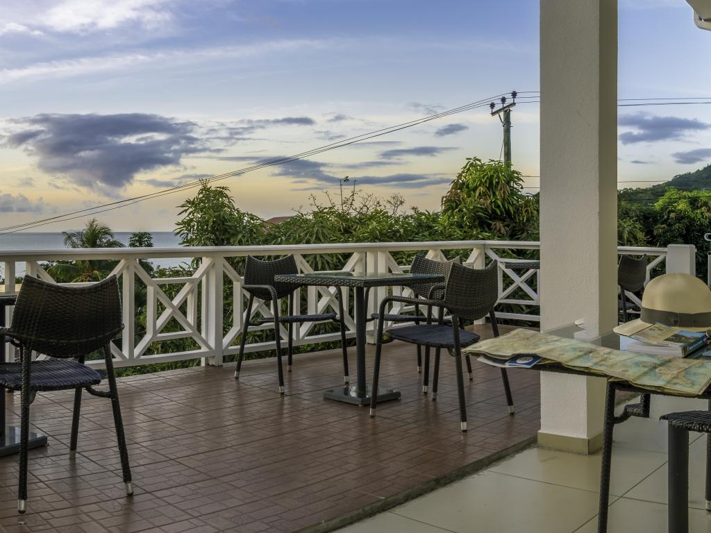 wunderbarer Blick von der Terrasse über die Bucht Beau Vallon, sehr freundliches Personal, exzellentes Abendessen auf Wunsch/Bestellung