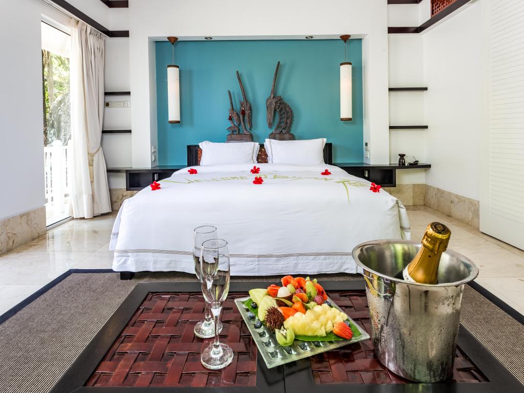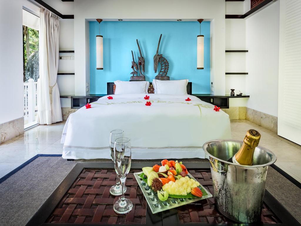 Traumlage, herrlicher Strand (u.E. der schönste, den wir gesehen haben). Schöne Poolvilla, innen etwas spärlich und nicht so liebevoll dekoriert wie auf La Digue, aber viel Privacy und netter Privatpool. Kein besonderer Service, keine überraschenden Extras, die man auf diesem Niveau erwarten dürfte. Preis/Leistung stimmt nicht ganz. Zweimal im Restaurant gegessen (Safran und Tomahawk-Grill). Ersteres top, letzteres mit etwas überfordertem Service. Preislich beide schon leicht drüber.