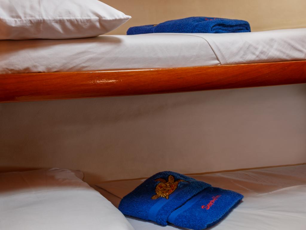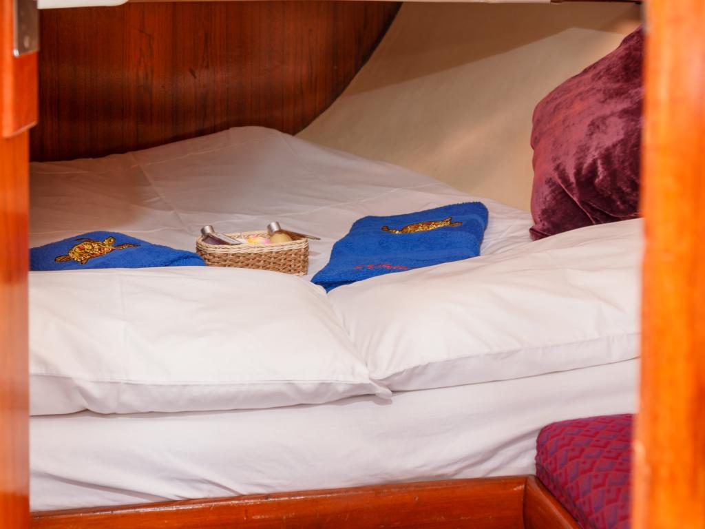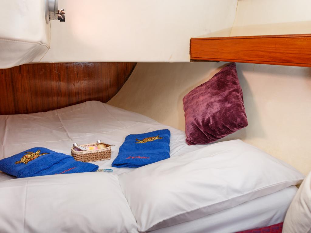 Toller Skipper und talentierter junger Koch. Der fürsorgliche Skipper hat wirklich alles für uns getan und wir haben uns sehr gut versorgt gefühlt . Wir haben die schönsten Inseln gesehen und sind beim Schnorcheln sehr gut betreut worden. Leider altes Boot mit schwachem Motor, das mit Verspätung ankam und superkleine Kabinen, wir haben draußen auf den Sitzbänken geschlafen.
