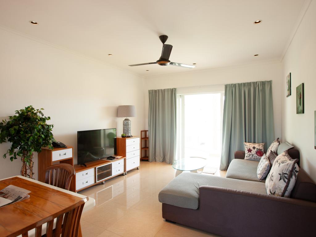 Die Mitarbeiter vor Ort waren super, Check-In, Erreichbarkeit etc. Tägliche Reinigung der Wohnung ist ebenfalls erfolgt. Zu Fuß zum Essen gehen war möglich. Es gibt Fußwege!