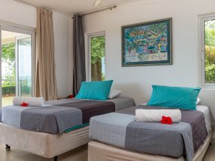 - Service: Super, diesmal durch einen Nachbarn und Freund der Eigentümer geleistet. Sehr freundlich und zuvorkommend, alle Dinge wurden fast ohne Anfrage im Vorhinein erledigt, wie z.B. Austausch Trinkwasserkartuschen, Gasbehälter usw. Sehr responsive - perfekte Kommunikation über Whatsapp. Wir haben die Trinkwasserkartuschen und einen großen Obstkorb sogar als "Courtesy" noch obendrauf bekommen. Am letzten Tag durften wir wg. sehr spätem Abflug noch unser Gepäck stehen lassen und später noch die Outdoor-Dusche nutzen - so daß wir de facto "for free" einen Extra-Strandtag gewonnen haben !
