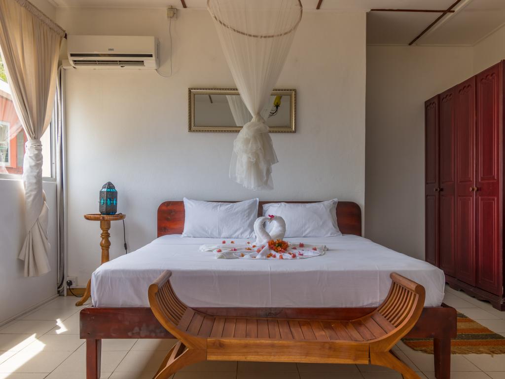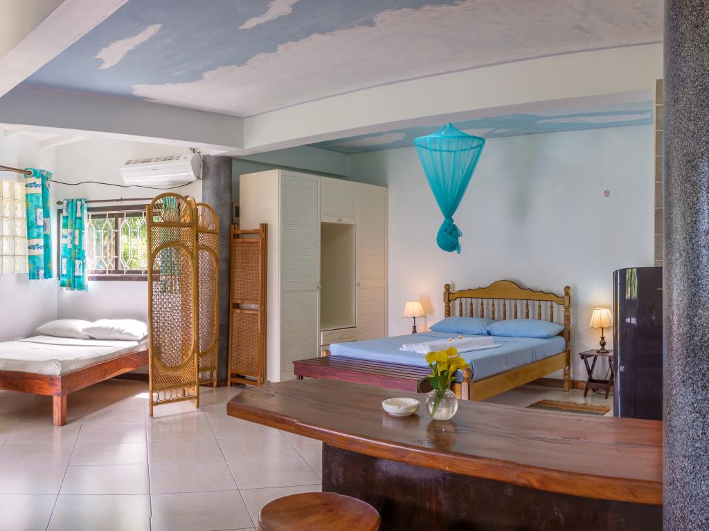 Schlechter Wohnraum und im Verhältnis zum Verfall zu teuer. Muffiger Geruch in den Zimmern. Ziemlich gute Lage, obwohl die Straße dorthin extrem steil ist (was nicht unbedingt ein Problem ist). Mir persönlich hat Beau Vallon nicht gefallen, vor allem nachdem ich durch ruhige Orte wie Praslin und La Digue gekommen war. Zu viel Verkehr, zu viele Menschen und extrem dichte Bebauung. Der Süden der Insel ist wesentlich schöner, ruhiger und deutlich angenehmer zum Leben.