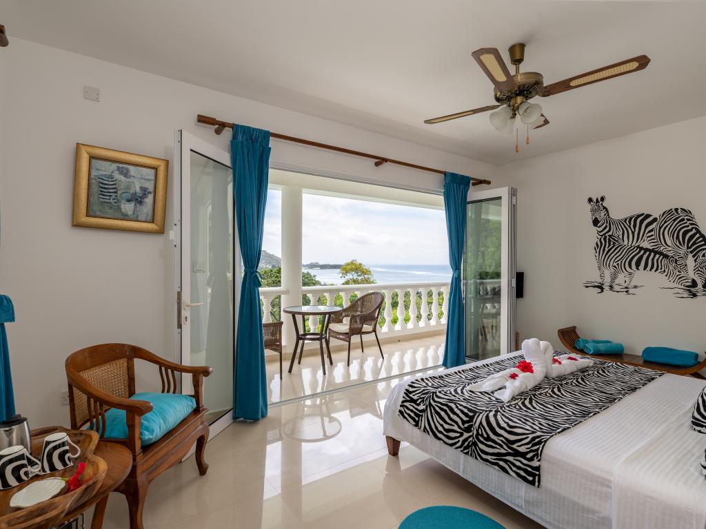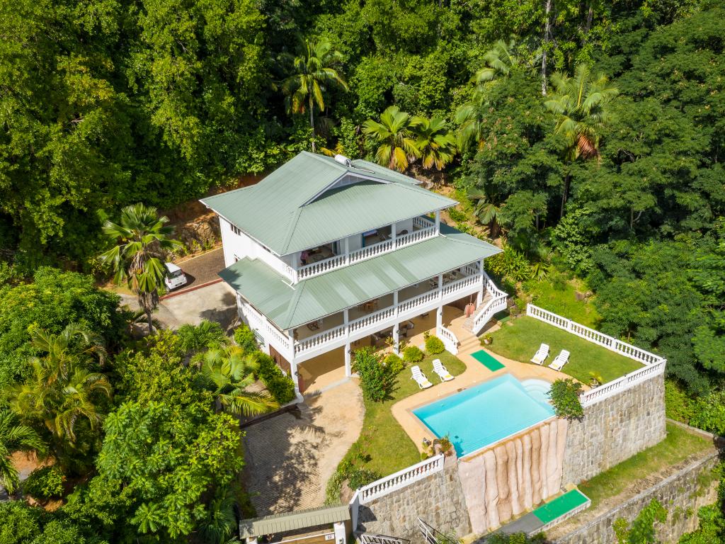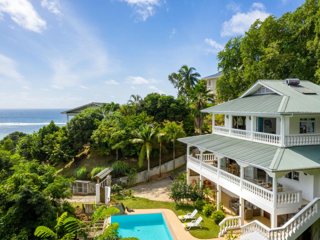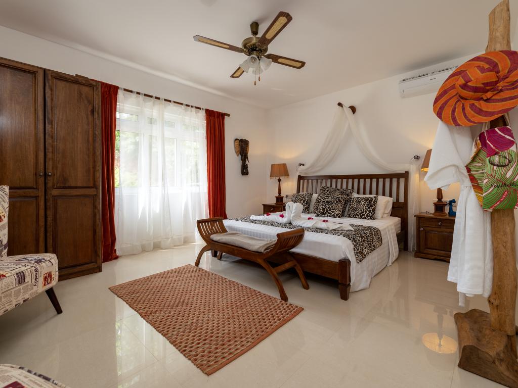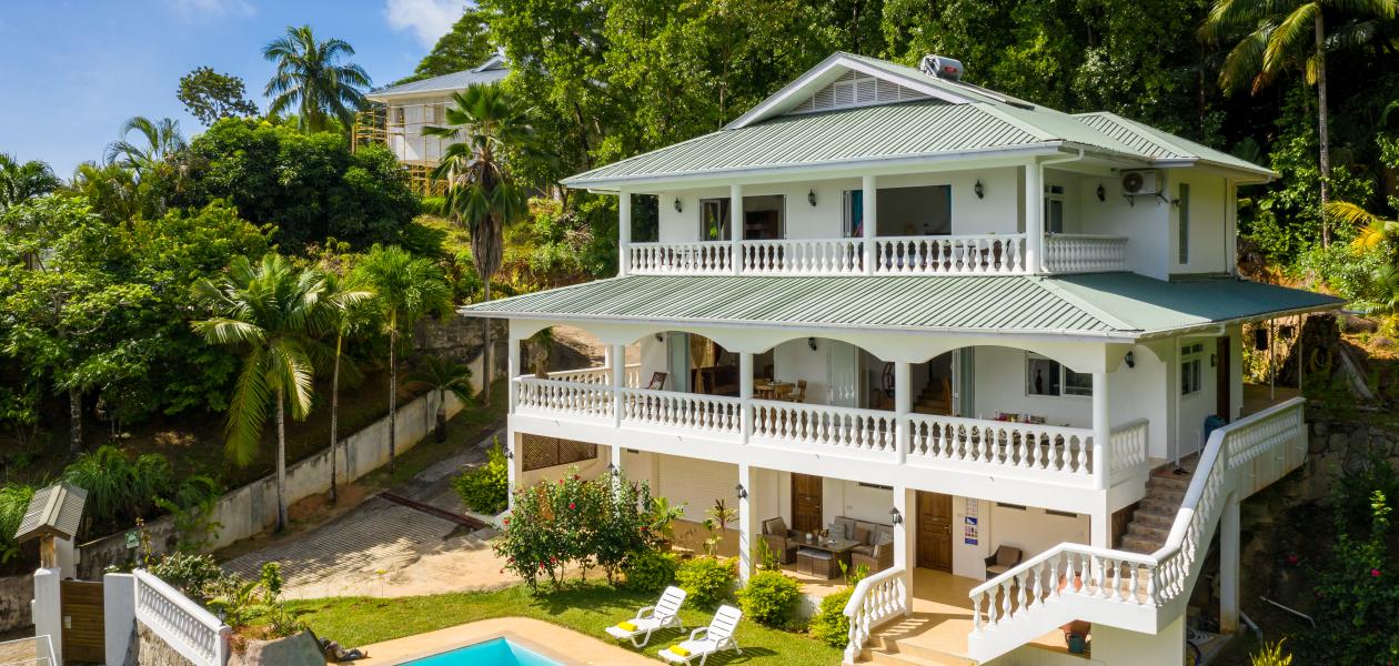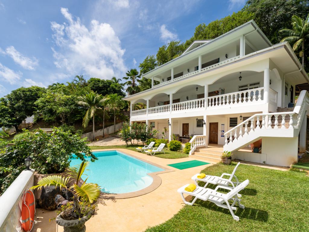 Die "Villa Karibu" verführt mit einer traumhaften Lage auf einer Anhöhe, eingebettet in einer wahren Insel-Oase mit viel üppigem Grün, meterhohen Palmen, teilweise auch zahlreichen blühenden Gewächsen - und mit einem sagenhaften Ausblick über den Indischen Ozean. In nur wenigen Autominuten können Sie den gleichermaßen schönen wie bekannten Anse aux Pins erreichen, die Hauptstadt Victoria ist ebenfalls nur etwa 30 min von der Unterkunft entfernt.