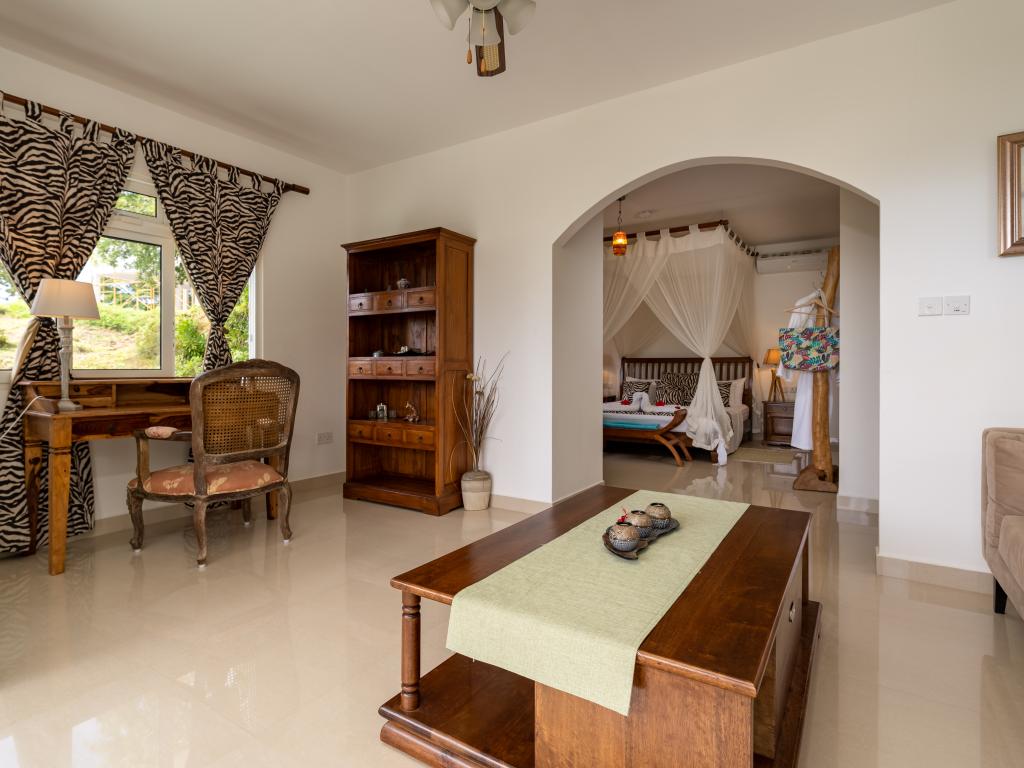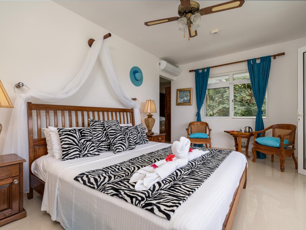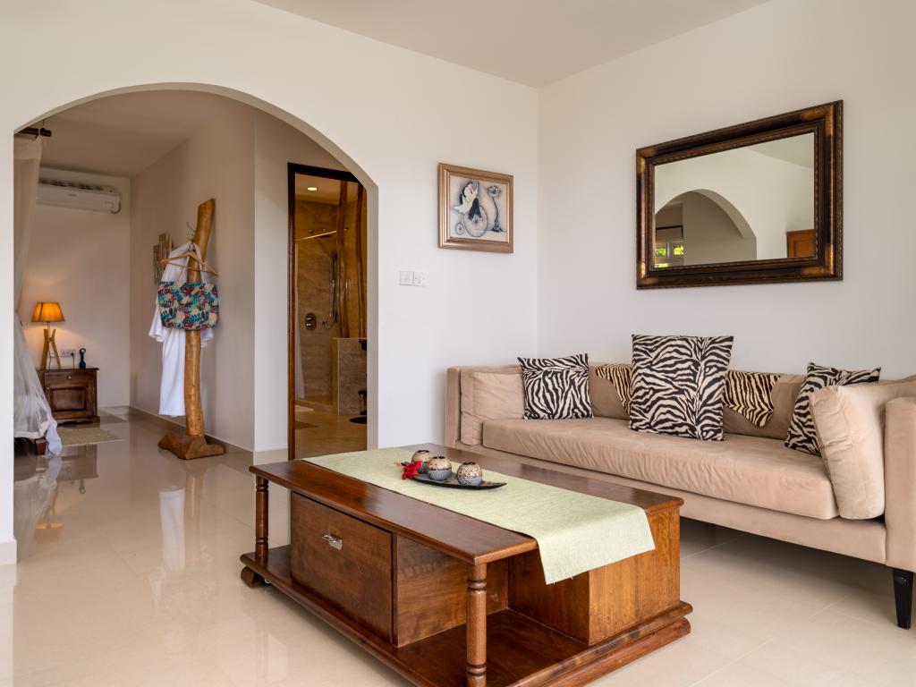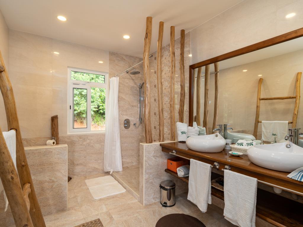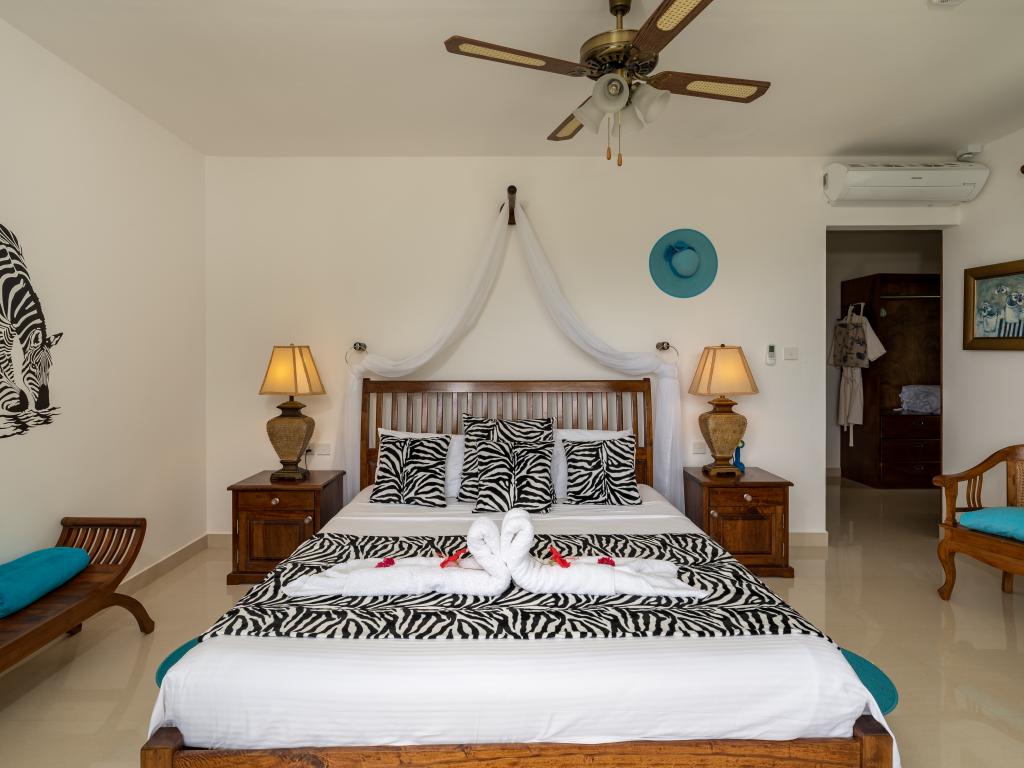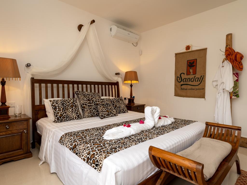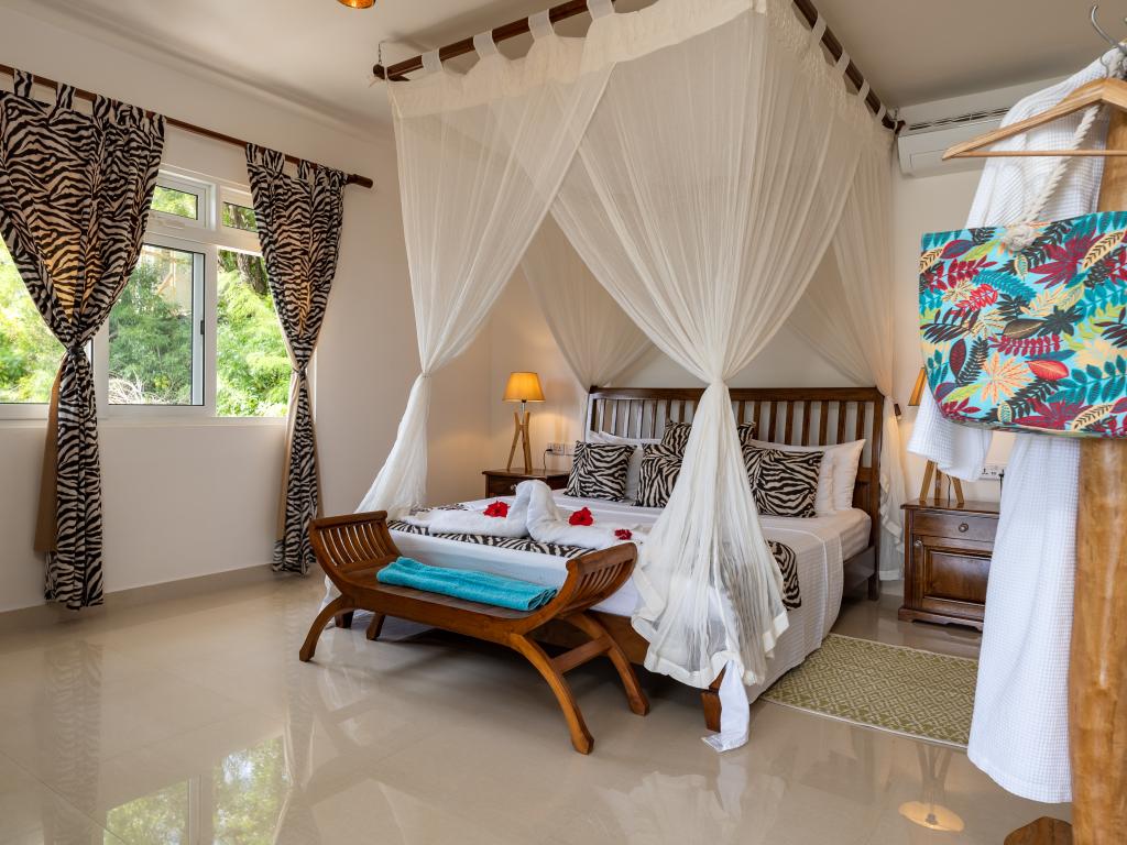 Die "Villa Karibu" verführt mit einer traumhaften Lage auf einer Anhöhe, eingebettet in einer wahren Insel-Oase mit viel üppigem Grün, meterhohen Palmen, teilweise auch zahlreichen blühenden Gewächsen - und mit einem sagenhaften Ausblick über den Indischen Ozean. In nur wenigen Autominuten können Sie den gleichermaßen schönen wie bekannten Anse aux Pins erreichen, die Hauptstadt Victoria ist ebenfalls nur etwa 30 min von der Unterkunft entfernt.