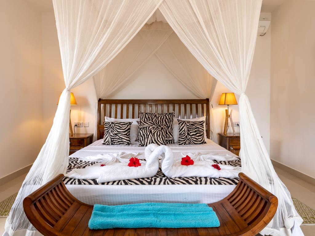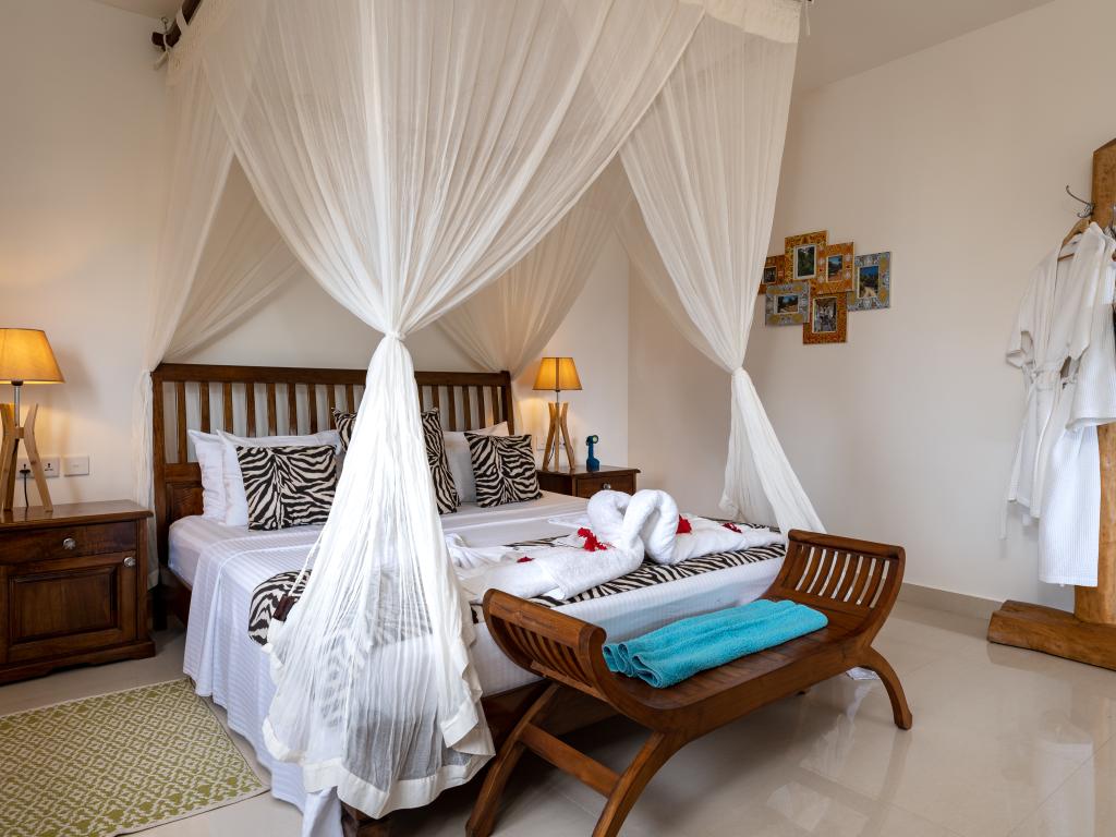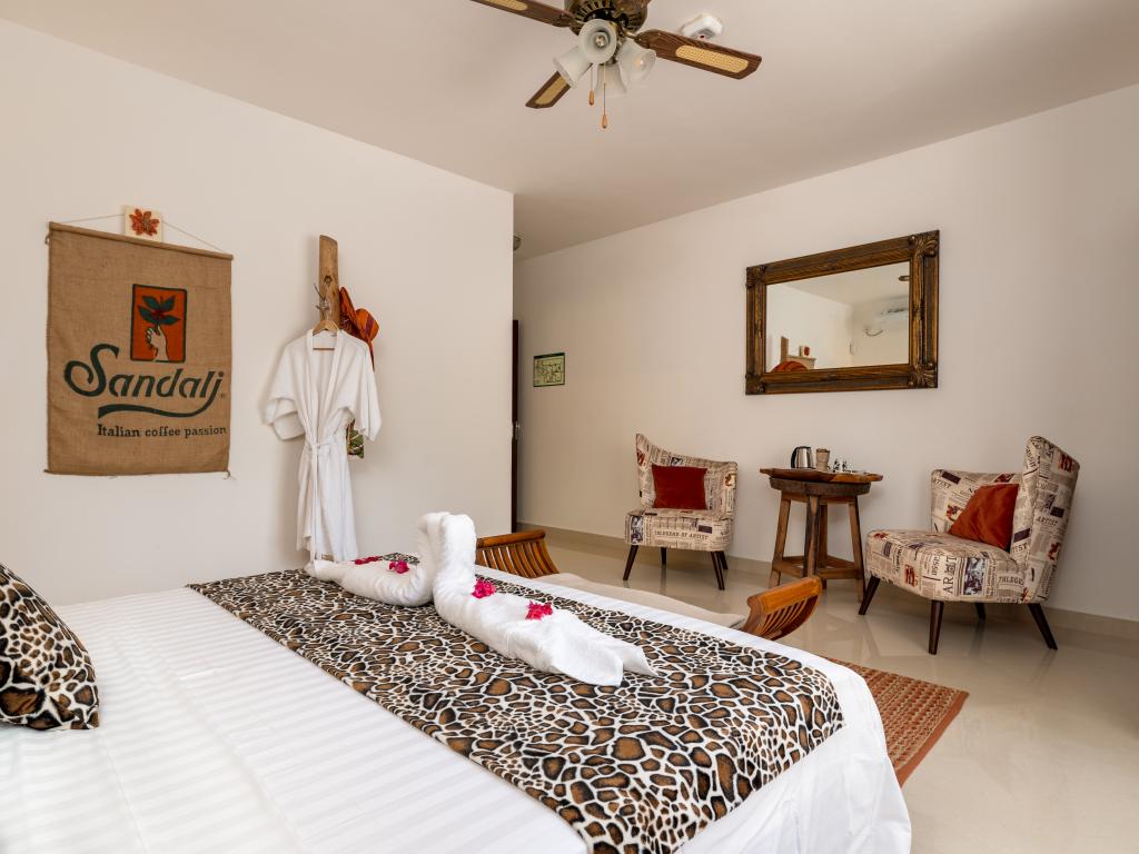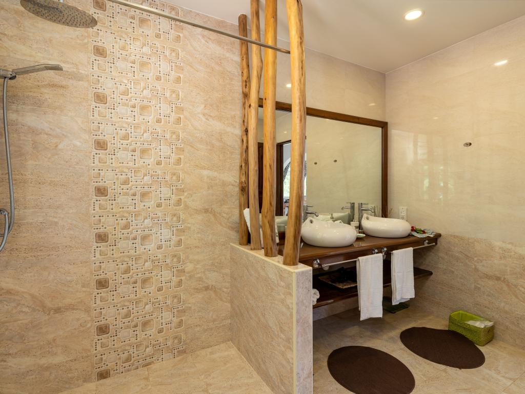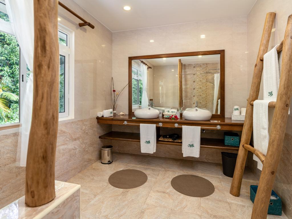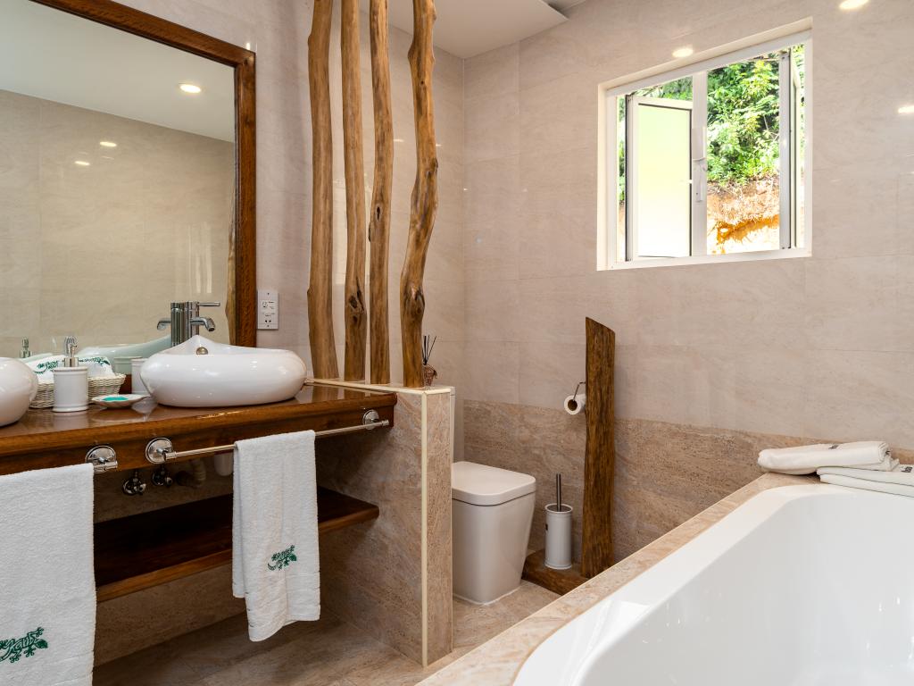 Die "Villa Karibu" verführt mit einer traumhaften Lage auf einer Anhöhe, eingebettet in einer wahren Insel-Oase mit viel üppigem Grün, meterhohen Palmen, teilweise auch zahlreichen blühenden Gewächsen - und mit einem sagenhaften Ausblick über den Indischen Ozean. In nur wenigen Autominuten können Sie den gleichermaßen schönen wie bekannten Anse aux Pins erreichen, die Hauptstadt Victoria ist ebenfalls nur etwa 30 min von der Unterkunft entfernt.