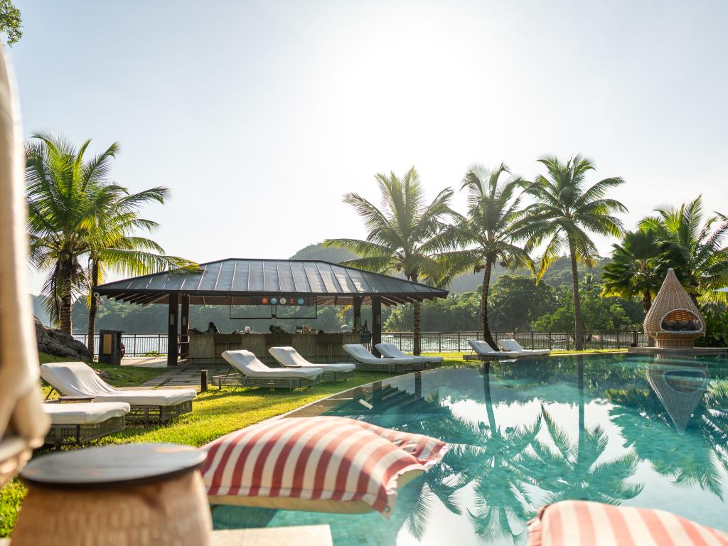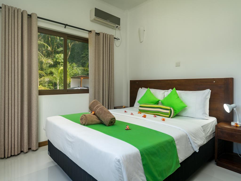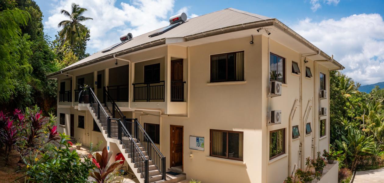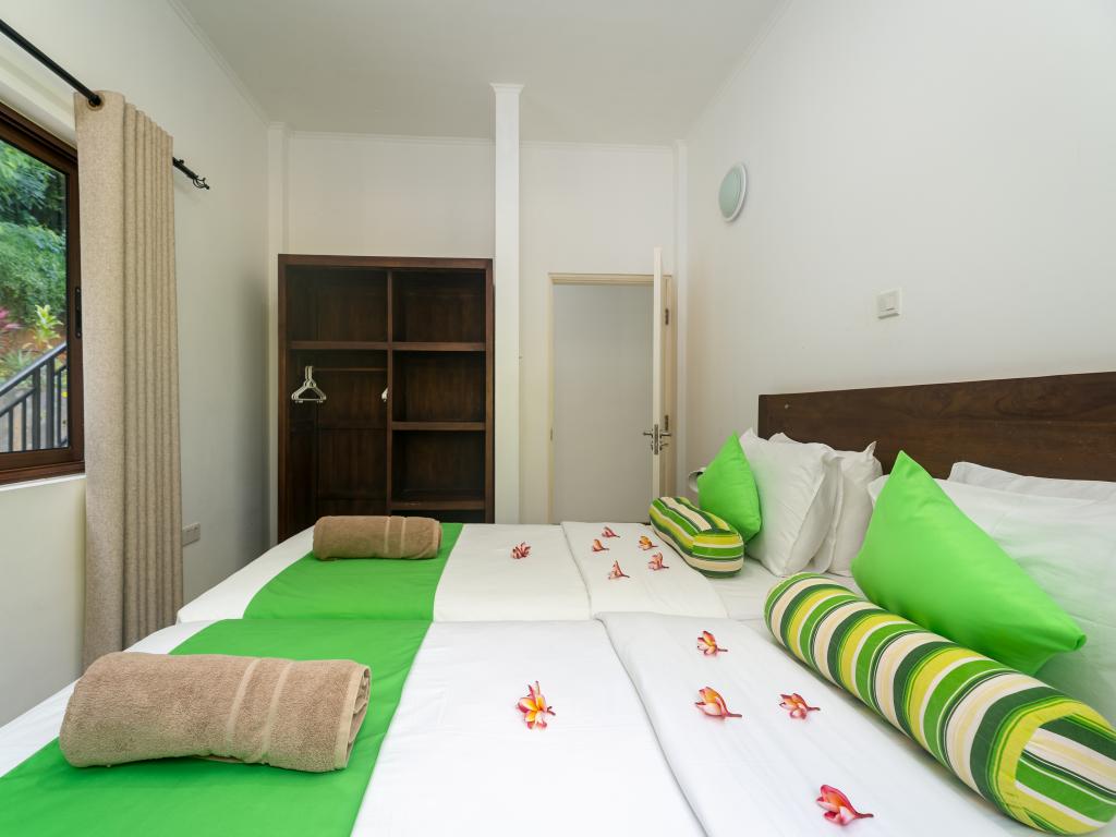 Mitten im Grünen zwischen üppigen Bananenbäumen und hochgewachsenen Kokospalmen befinden sich die modern ausgestatteten Kanasuk Self Catering Apartments. Die Lage in der Region Anse Aux Poules Bleues im Süden Mahés ist perfekt: Der hübsche Ortsstrand ist fußläufig entfernt, weitere Traumstrände wie Anse Soleil und Petite Anse sind nach nur etwa 3 km mit dem Mietwagen ebenfalls schnell erreicht.