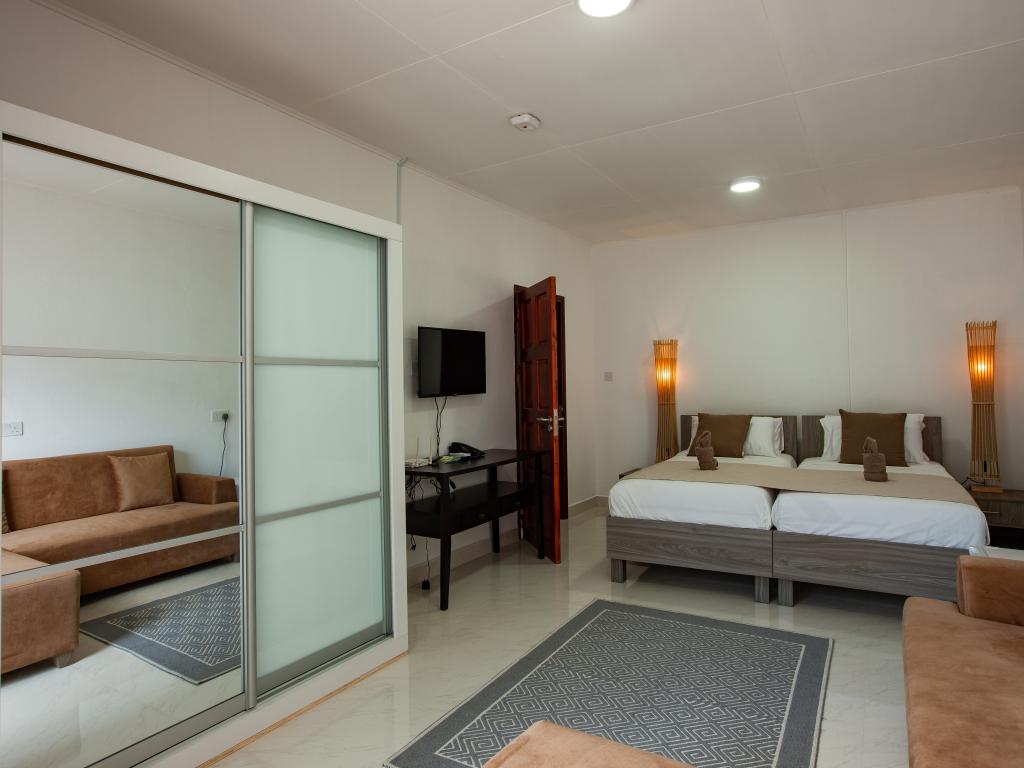 Das Hotel "Plein Soleil" bietet modernen Komfort und liegt in ca. 200m Nähe zum attraktiven Strand von Grand Anse. Wichtige Einrichtungen wie Banken, Cafés, Restaurants und Supermärkte erreichen Sie von hier aus bequem zu Fuß. Dank Gemeinschaftspool können Sie sich hier auch unabhängig von Strandbesuchen im kühlen Nass erfrischen.