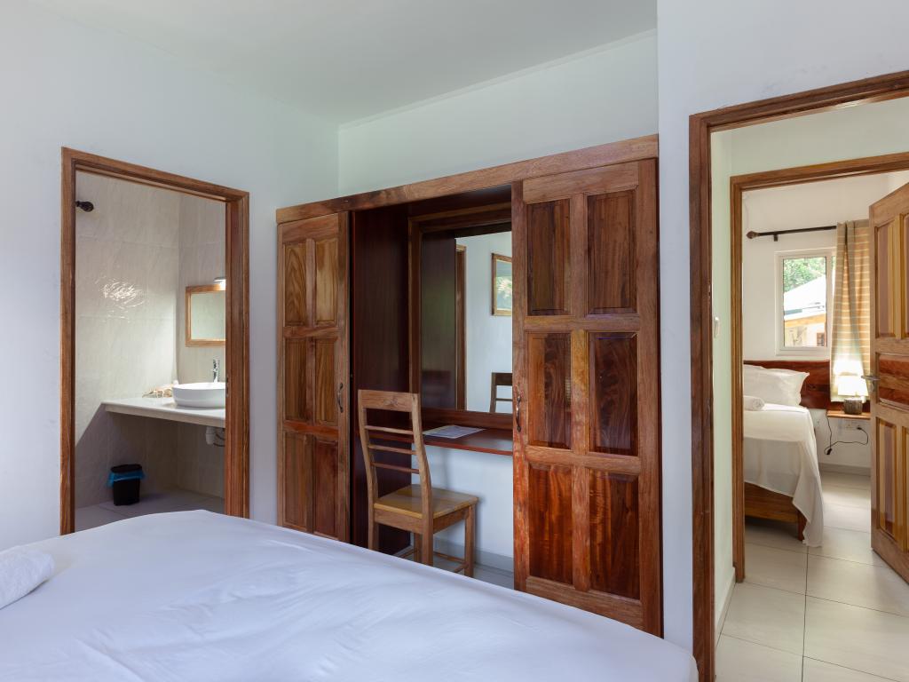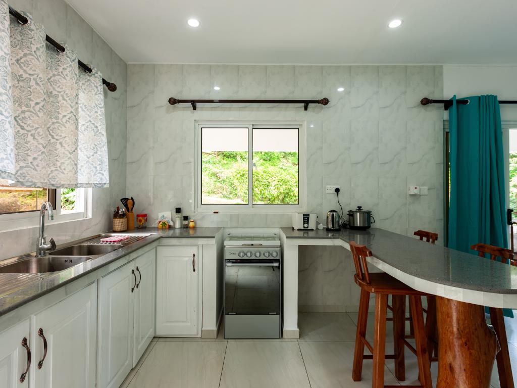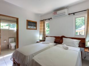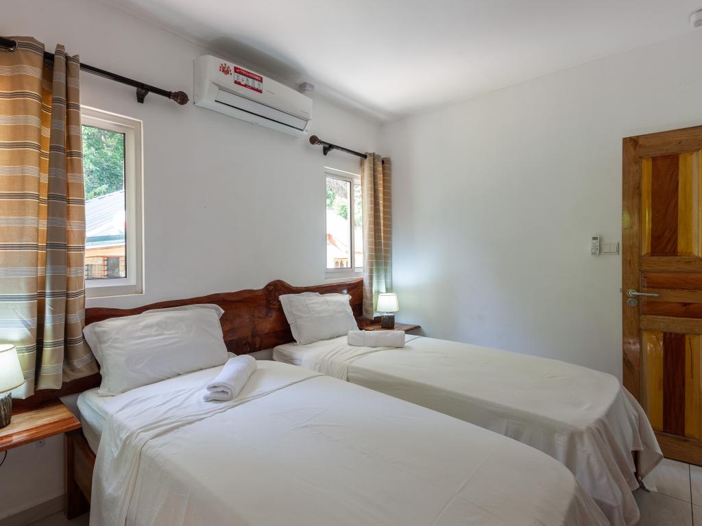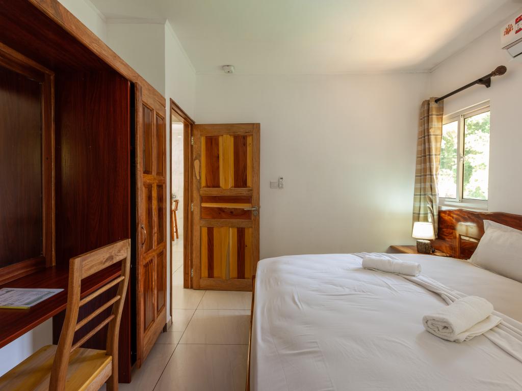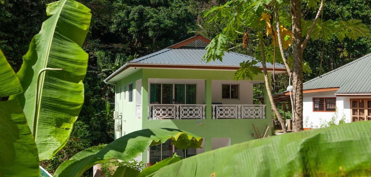 Das moderne Guesthouse "Fond B‘Offay Lodge" auf Praslin ist eine hervorragende Basis für Selbstversorger, die einen abwechslungsreichen Seychellen-Urlaub verbringen möchten. Zur einen Seite mitten in der Natur und zur anderen an einer Straße gelegen, die Sie nach nur knapp 2 km direkt zum Naturpark Vallée de Mai führt, können Sie hier sowohl Ihre Privatsphäre mit einem fantastischen Blick ins Grüne genießen als auch bequem die wichtigsten Sehenswürdigkeiten der Insel erreichen. Zum Strand Anse Volbert sind es nur gut 4 km.