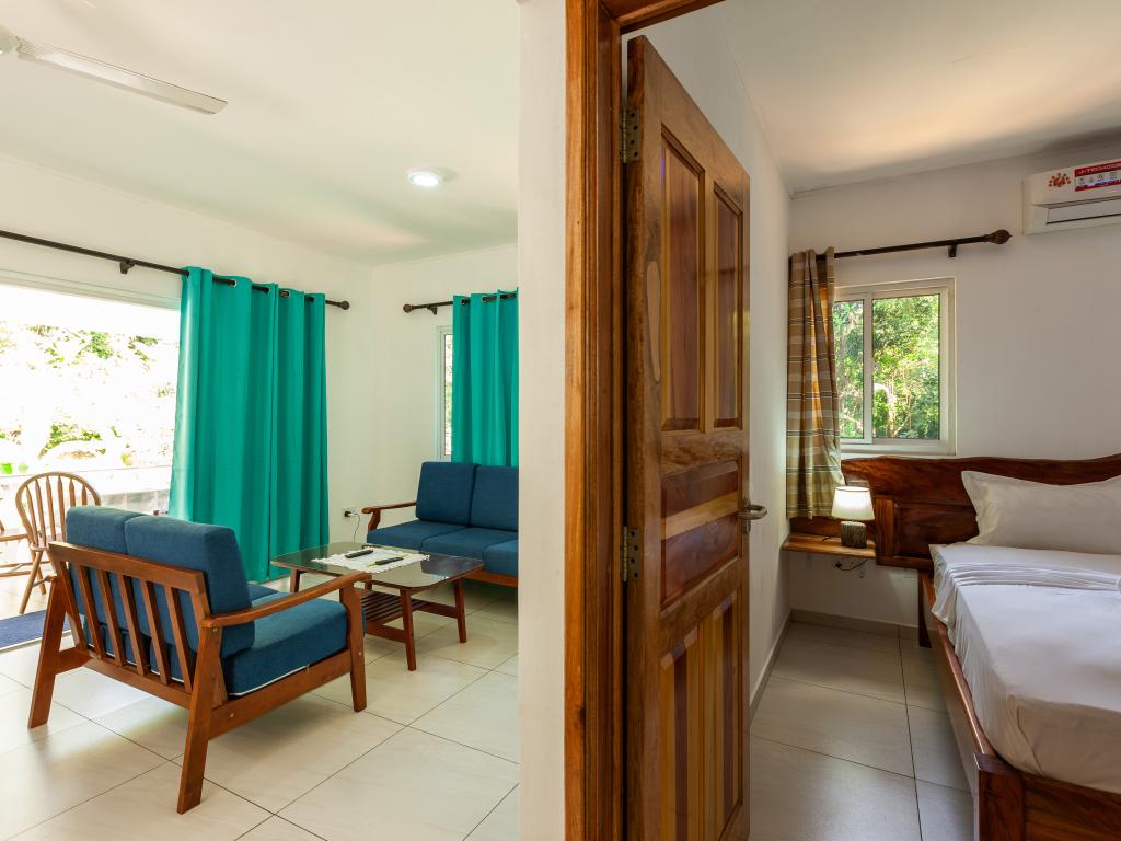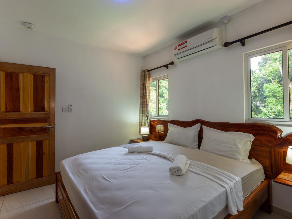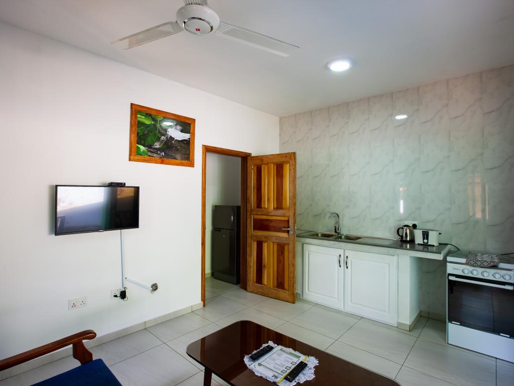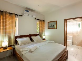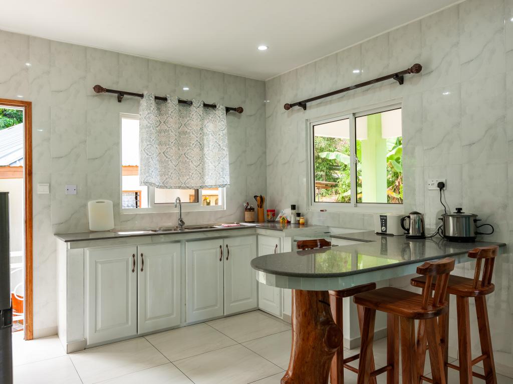 Das moderne Guesthouse "Fond B‘Offay Lodge" auf Praslin ist eine hervorragende Basis für Selbstversorger, die einen abwechslungsreichen Seychellen-Urlaub verbringen möchten. Zur einen Seite mitten in der Natur und zur anderen an einer Straße gelegen, die Sie nach nur knapp 2 km direkt zum Naturpark Vallée de Mai führt, können Sie hier sowohl Ihre Privatsphäre mit einem fantastischen Blick ins Grüne genießen als auch bequem die wichtigsten Sehenswürdigkeiten der Insel erreichen. Zum Strand Anse Volbert sind es nur gut 4 km.
