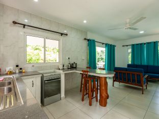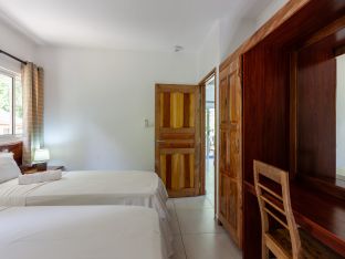 Funktionelle, saubere und gut gelegene Unterkunft am Rande eines Baches. Wir schätzten den herzlichen Empfang durch unseren Gastgeber, der uns einen Begrüßungssaft anbot und Bananen und Papaya hinterließ. Dann bot sie uns an einem anderen Abend frische Kokosnuss und gegrillte Brotfrüchte an. Sie hat gute Ratschläge gegeben. Über dem stillen Wald gesehen. Ich empfehle für eine Familie