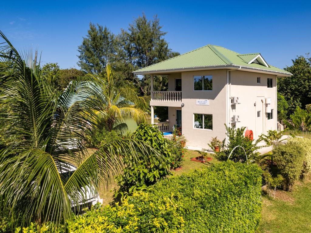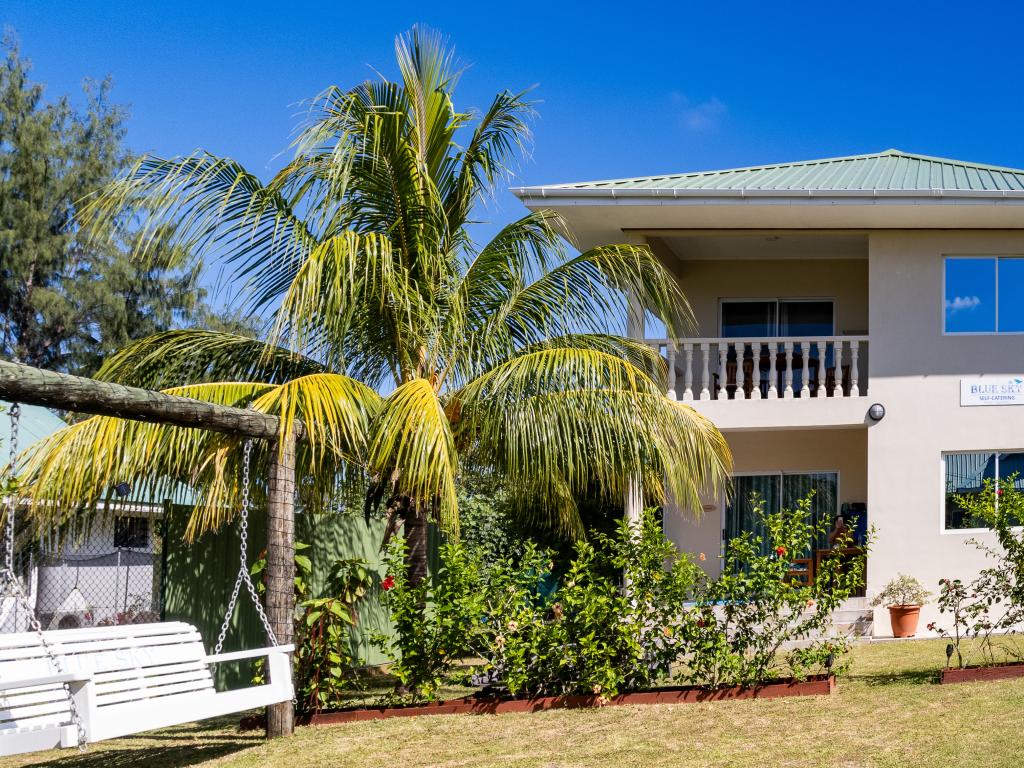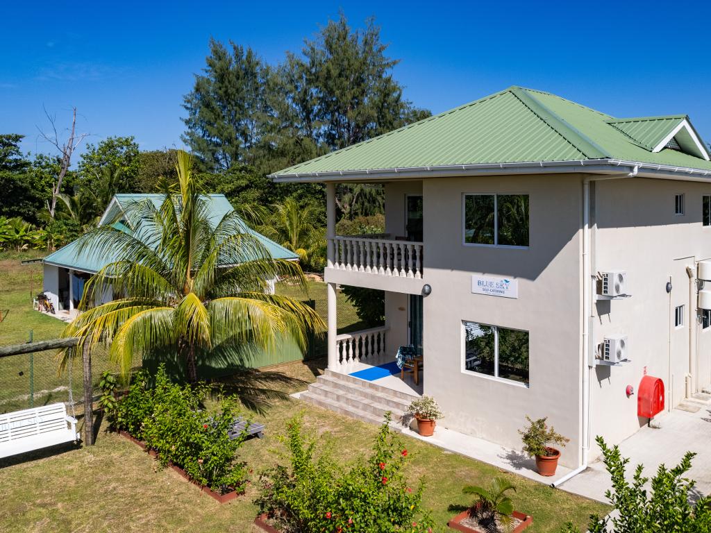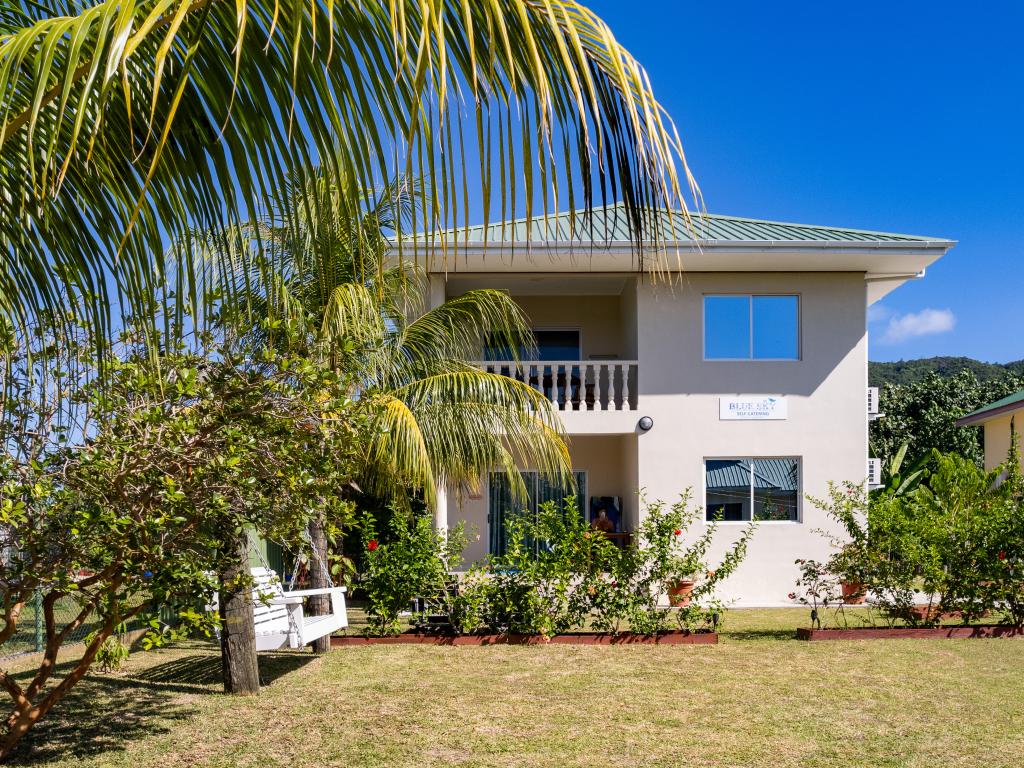 Sehr praktisch zugleich strand- als auch flughafennah befindet sich das gepflegte Gästehaus "Blue Sky Self Catering" in Grand Anse auf Praslin. Das Häuschen mit Terrasse und Balkon steht auf einem großzügigen Gartengrundstück mit Rasenfläche und Palmen und steht so nah am Indischen Ozean, dass Sie von hier aus einen teilweisen Meerblick genießen können.