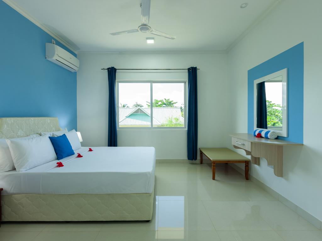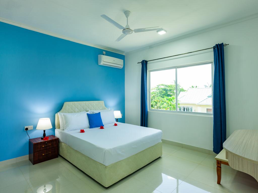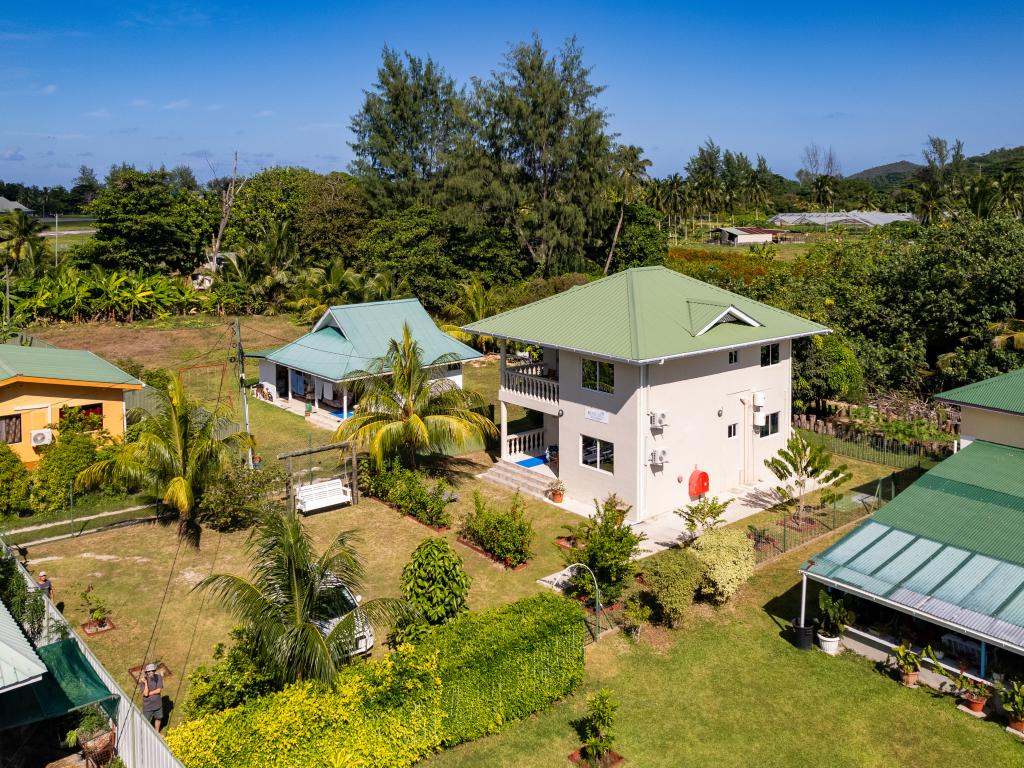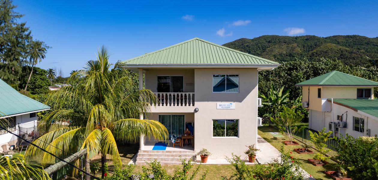 Sehr praktisch zugleich strand- als auch flughafennah befindet sich das gepflegte Gästehaus "Blue Sky Self Catering" in Grand Anse auf Praslin. Das Häuschen mit Terrasse und Balkon steht auf einem großzügigen Gartengrundstück mit Rasenfläche und Palmen und steht so nah am Indischen Ozean, dass Sie von hier aus einen teilweisen Meerblick genießen können.