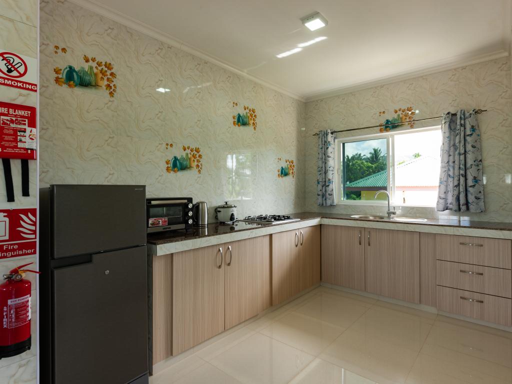 Schöne Wohnung, sehr geräumig, sauber, mit allem, was Sie brauchen, um ein paar Tage der Entspannung zu verbringen. Die Besitzer sind großzügig und hilfsbereit. Die Lage ist der einzige Nachteil, da sie einen der (unserer Meinung nach) schlimmsten Strände auf Praslin überblickt. Für uns war es jedoch kein Problem, da wir im Besitz eines Autos woanders hingezogen sind.