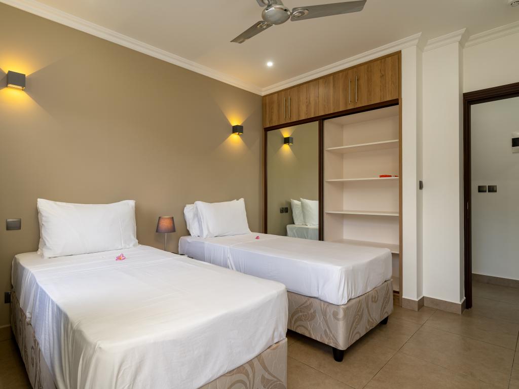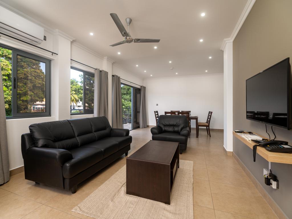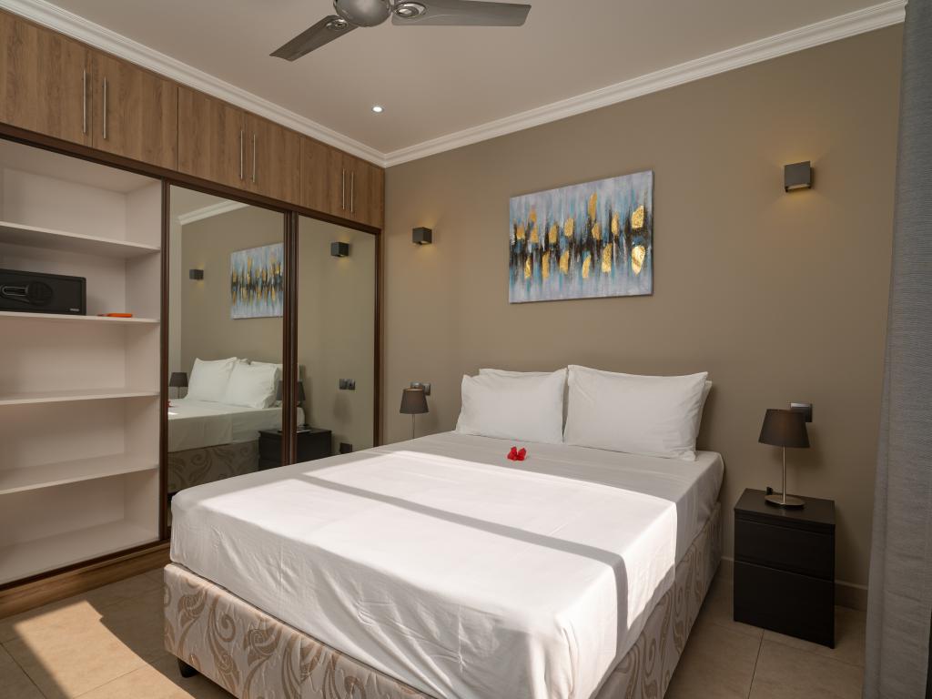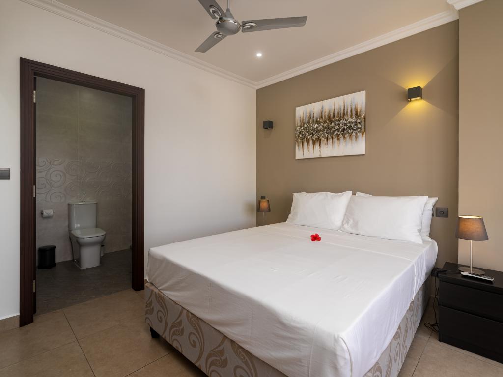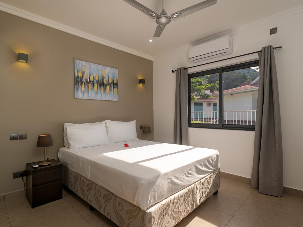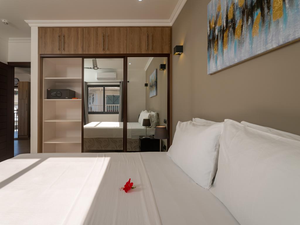 Nur ca. 600 m von einem der schönsten Strände der Seychellen entfernt liegen die "B Holiday Apartments" für Selbstversorger: Die Unterkunft, deren Appartements teilweise einen herrlichen Ausblick auf Beau Vallon und die Nachbarinsel Silhouette Island bieten, befindet sich an der Nordwestküste Mahés nahe Beau Vallon Beach in einer belebten Nachbarschaft. Von hier aus können Sie aber nicht nur das Meer, sondern auch Einkaufsmöglichkeiten, Shops und Restaurants bequem zu Fuß erreichen.