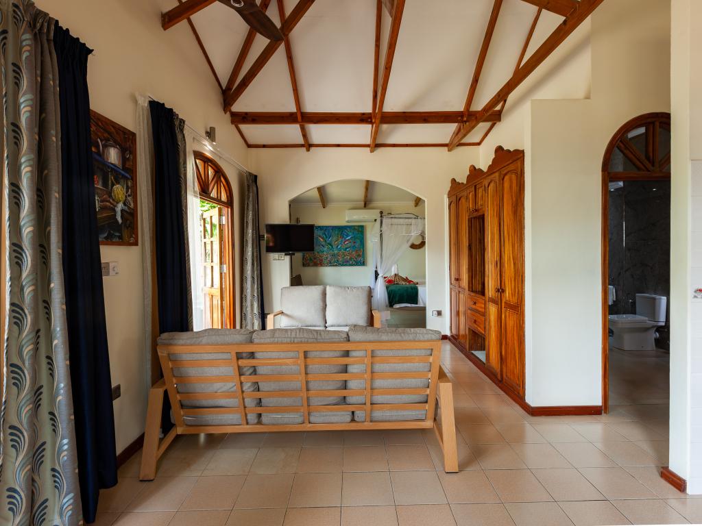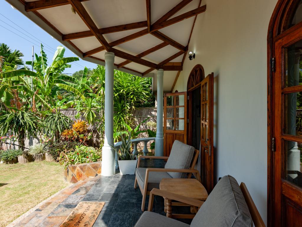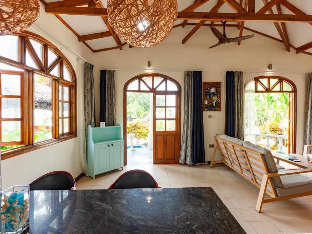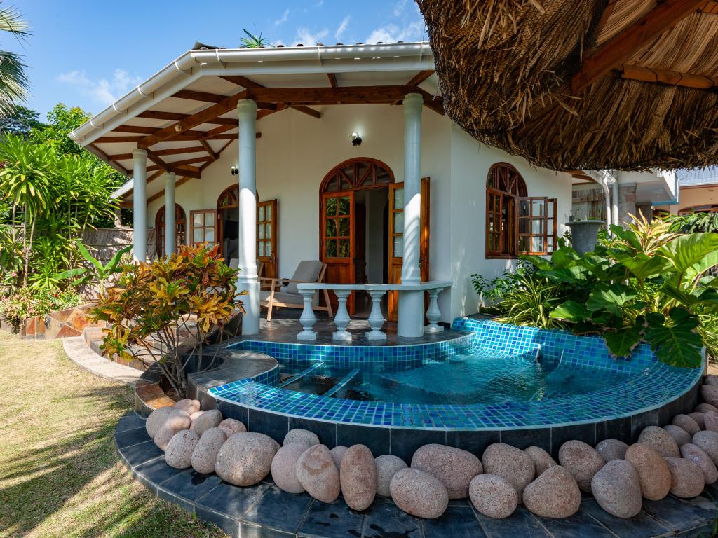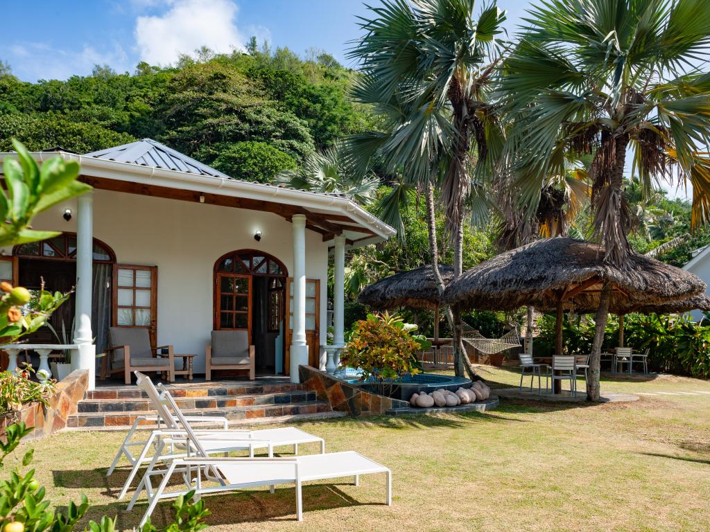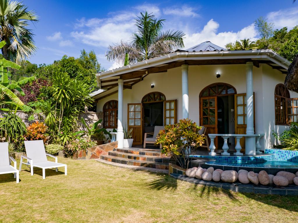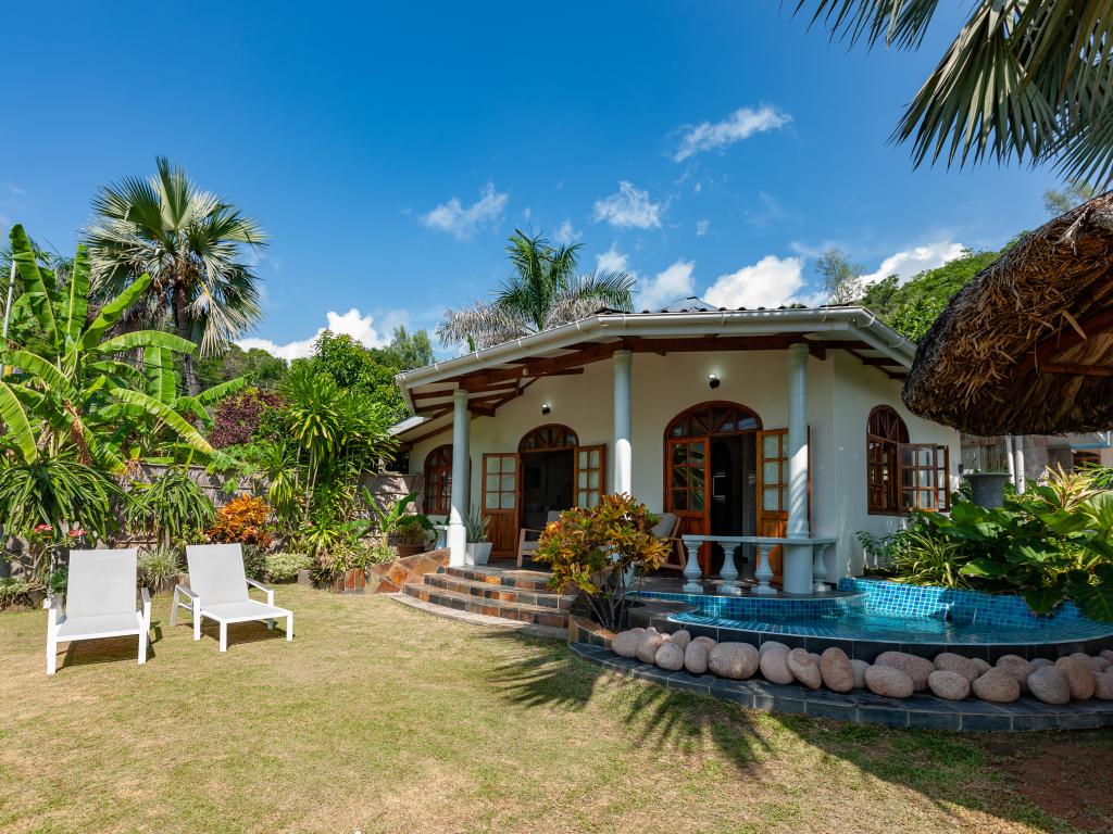 "La Petite Maison" heißt diese wunderschöne, komfortabel ausgestattete Villa direkt an der Küste von Praslin. Das Haus mit Mini-Pool steht auf einem grünen Grundstück mit gepflegten Rasenflächen, hohen Palmen und von Sonnenschirmen beschatteten Sitzbereichen. Vom Garten aus schauen Sie aufs Meer und bis zum Strand Anse Consolation sind es nur wenige Schritte. Einkaufsmöglichkeiten finden Sie ebenfalls in fußläufiger Entfernung.