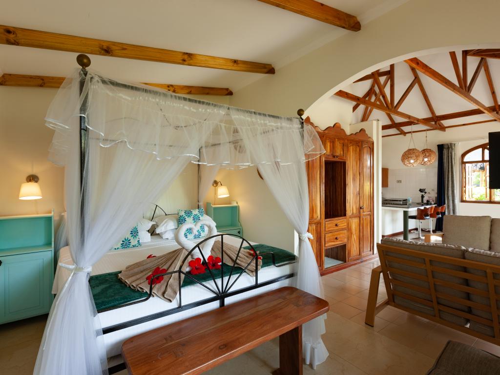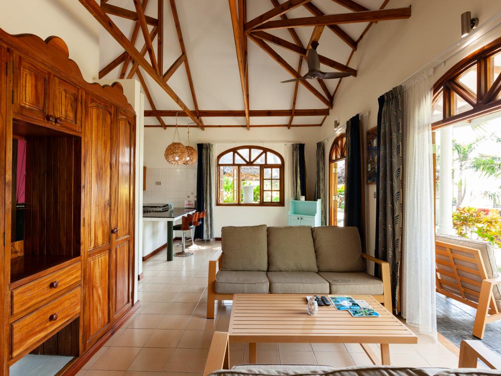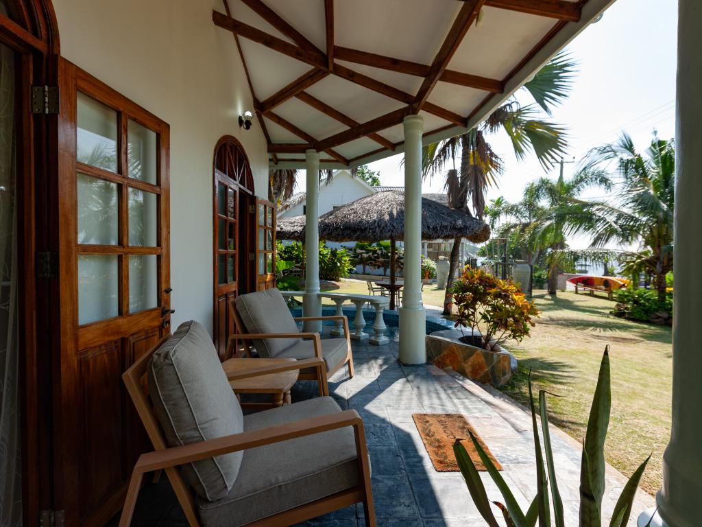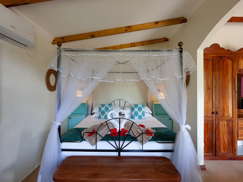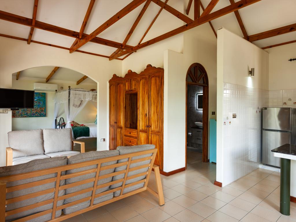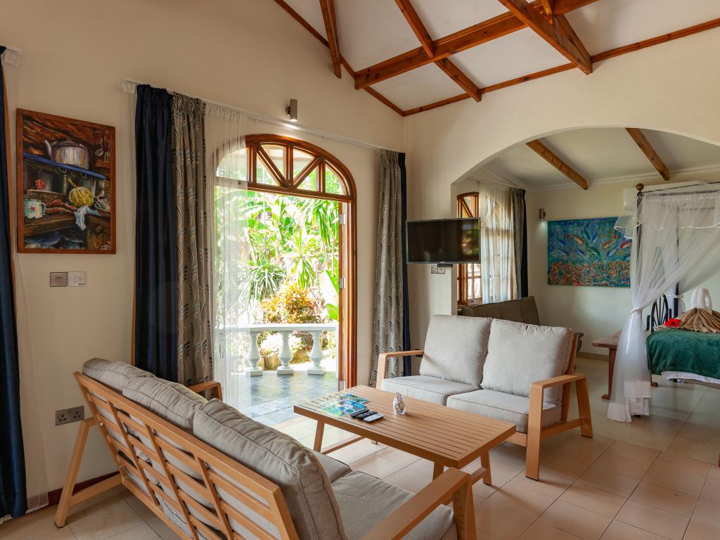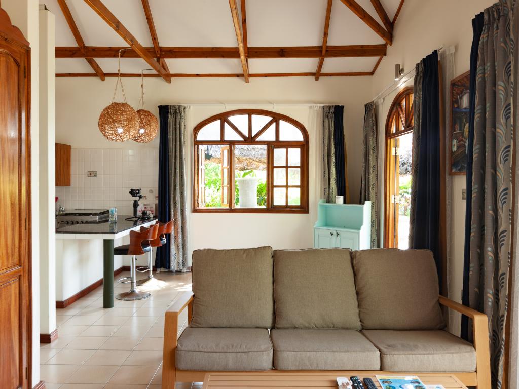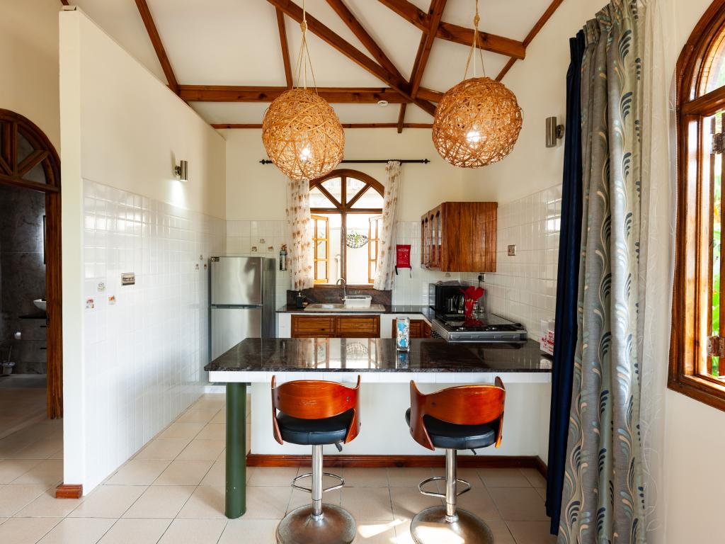 "La Petite Maison" heißt diese wunderschöne, komfortabel ausgestattete Villa direkt an der Küste von Praslin. Das Haus mit Mini-Pool steht auf einem grünen Grundstück mit gepflegten Rasenflächen, hohen Palmen und von Sonnenschirmen beschatteten Sitzbereichen. Vom Garten aus schauen Sie aufs Meer und bis zum Strand Anse Consolation sind es nur wenige Schritte. Einkaufsmöglichkeiten finden Sie ebenfalls in fußläufiger Entfernung.
