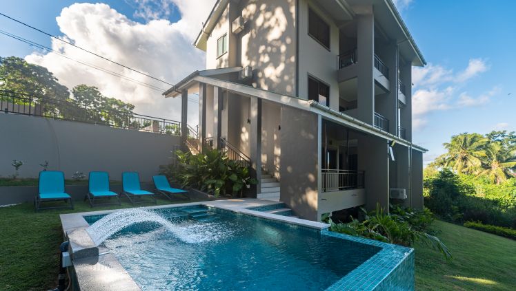 Die "Hidden Valley Residence" für Selbstversorger liegt wunderschön ruhig im Distrikt Au Cap an der grünen Ostküste Mahés. Das Haus mit den drei Etagen wurde am Hang gebaut und bietet einen herrlichen Ausblick auf die Berge und in den liebevoll angelegten Garten mit Rasenflächen und tropischen Pflanzen. Den nächsten Strand Au Cap Beach erreichen Sie nach ca. 1 km und auch Einkaufsmöglichkeiten sowie Restaurants und Take-Aways befinden sich in weniger als 2 km Entfernung.
