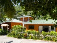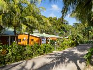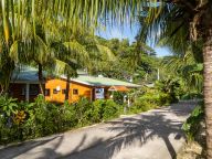 Im Nordosten von La Digue, nur wenige Schritte vom Strand Anse Grosse Roche entfernt, bietet diese Meerblick-Unterkunft einen schönen tropischen Garten. Die "Anse Grosse Roche Beach Villa" befindet sich zudem nur wenige Gehminuten vom Strand Anse Gaulettes und 700 m vom Strand Anse Banane entfernt. Der pittoreske Yachthafen von La Digue sowie das lebhafte Hafenörtchen La Passe sind nach etwa 3,2 km erreicht.