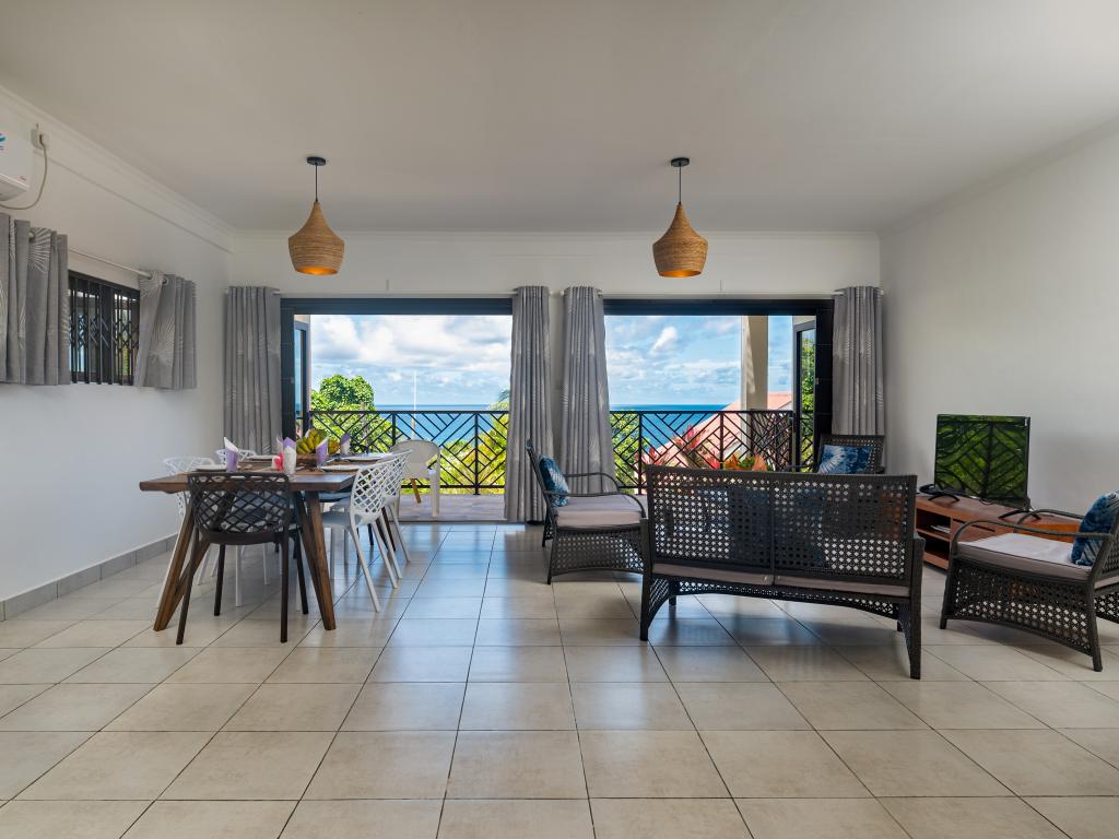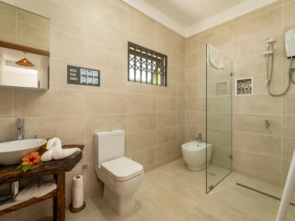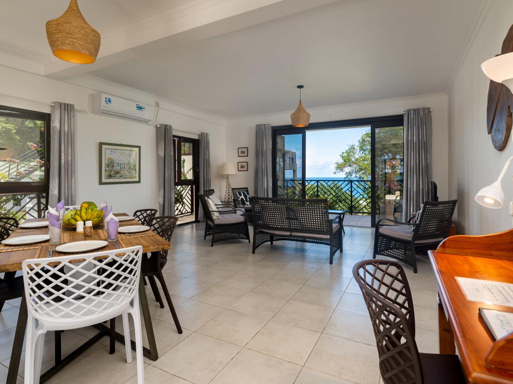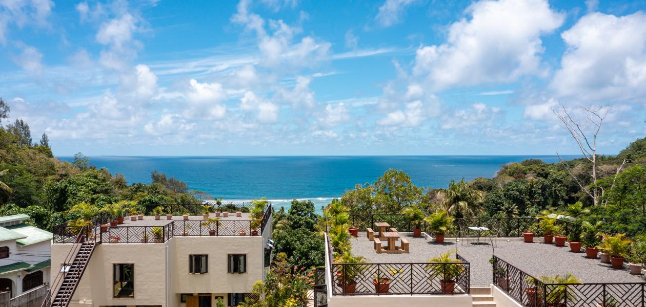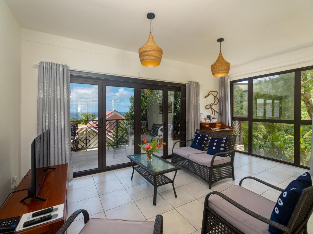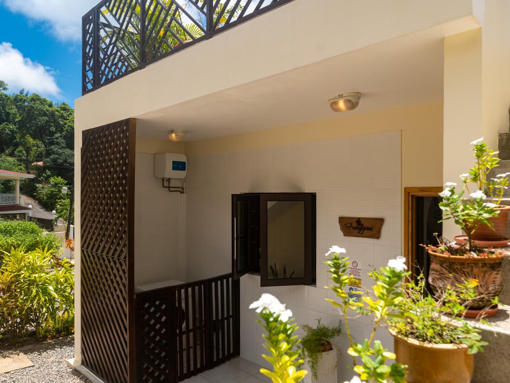 Modern, komfortabel, wunderschön ruhig gelegen und mit traumhaftem Blick auf die umliegenden Berge, den tropischen Garten und das türkisblaue Meer: Das sind die Appartements "Bougainvillas Seychelles", die sich in die grüne Hügellandschaft im Süden Mahés schmiegen. Auf dem großen Grundstück können Sie durch den liebevoll gestalteten Garten spazieren. Und auch bis zum Meer haben Sie es nicht weit: Nur ca. 850 m sind es bis zum nächsten Strand Anse Bougainville. Restaurants und Shops erreichen Sie nach nur wenigen Minuten Autofahrt.