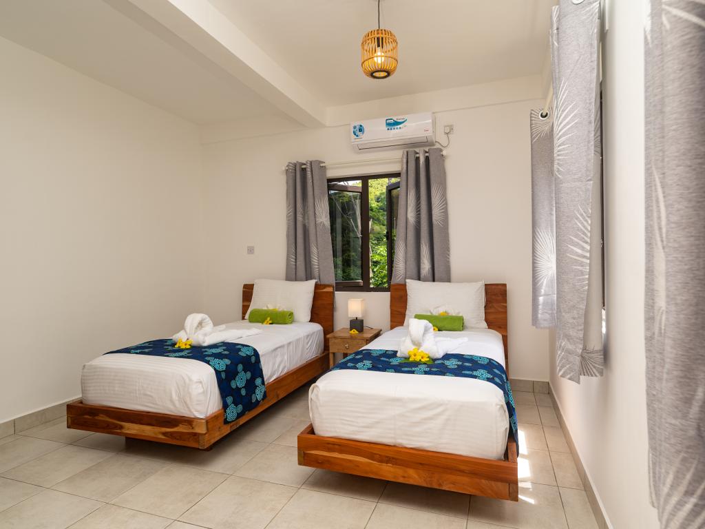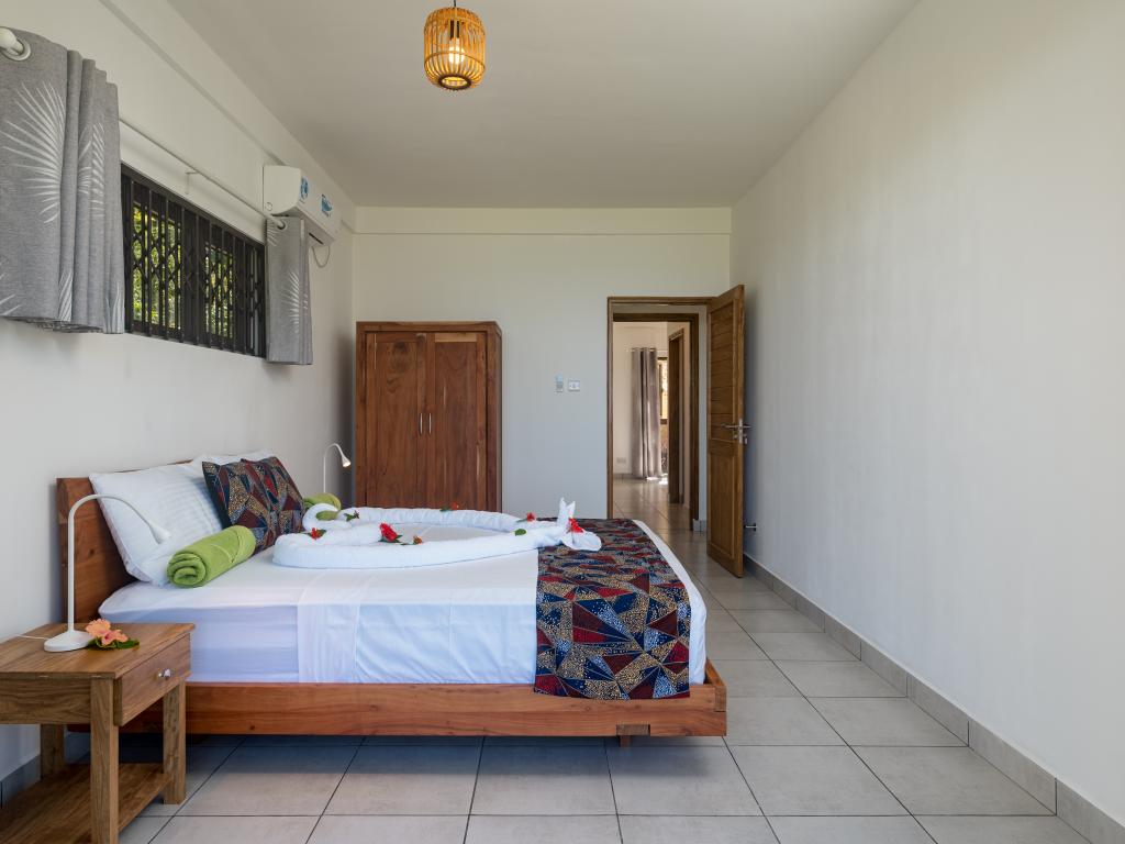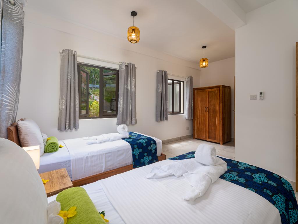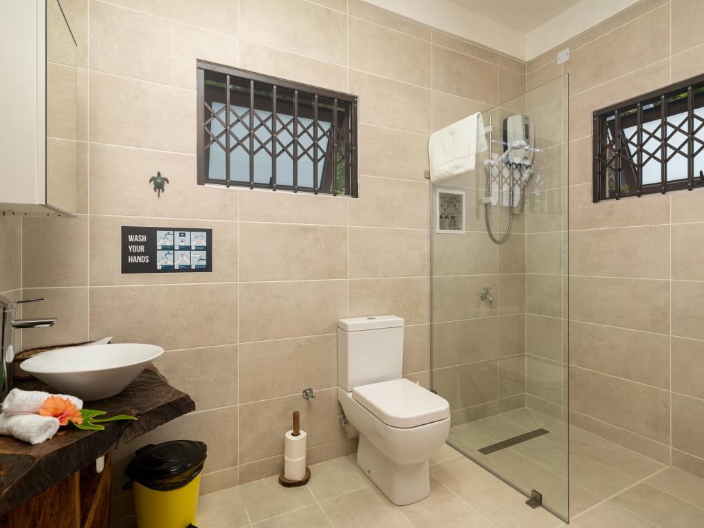 Die gebuchte Unterkunft auf Mahé war auch absolut einwandfrei. Ein Auto ist hier auf jeden Fall erforderlich, denn der Weg zur Unterkunft ist lang und steil und sowohl Strände, als auch Restaurants/Take Aways sind etwas weiter entfernt. Nane hat mich sehr herzlich willkommen geheißen und hat mich auch in der Buchung des Mietwagens unterstützt. Sie hat mir Tipps gegeben und war immer erreichbar. Ihr Frühstück war sehr liebevoll zubereitet und sehr lecker. Die Unterkunft selbst? WOW! Riesig! und ich habe von dort aus den schönsten Sonnenaufgang über dem Meer gesehen. Es war immer sauber und sehr einladend. Ich kann die Unterkunft nur weiterempfehlen.