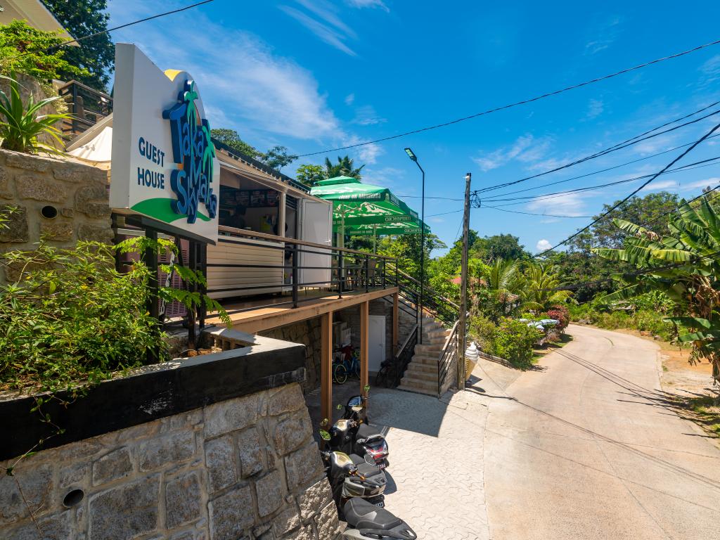 Die modern ausgestatteten "Takamaka Sky Villas" liegen im Südwesten Mahés. Sie sind eingebettet in die Natur und von Ihrem Haus aus genießen Sie einen fantastischen Blick auf die begrünten Berge und das Meer in der Ferne. Den nächsten Strand Anse Intendance erreichen Sie nach nur 650 m, Einkaufsmöglichkeiten gibt es ebenfalls in unmittelbarer Umgebung und auch zum nächsten Restaurant haben Sie es nicht weit, denn "Takamaka Sky Pizza & Grill" befindet sich direkt neben Ihrer Unterkunft.