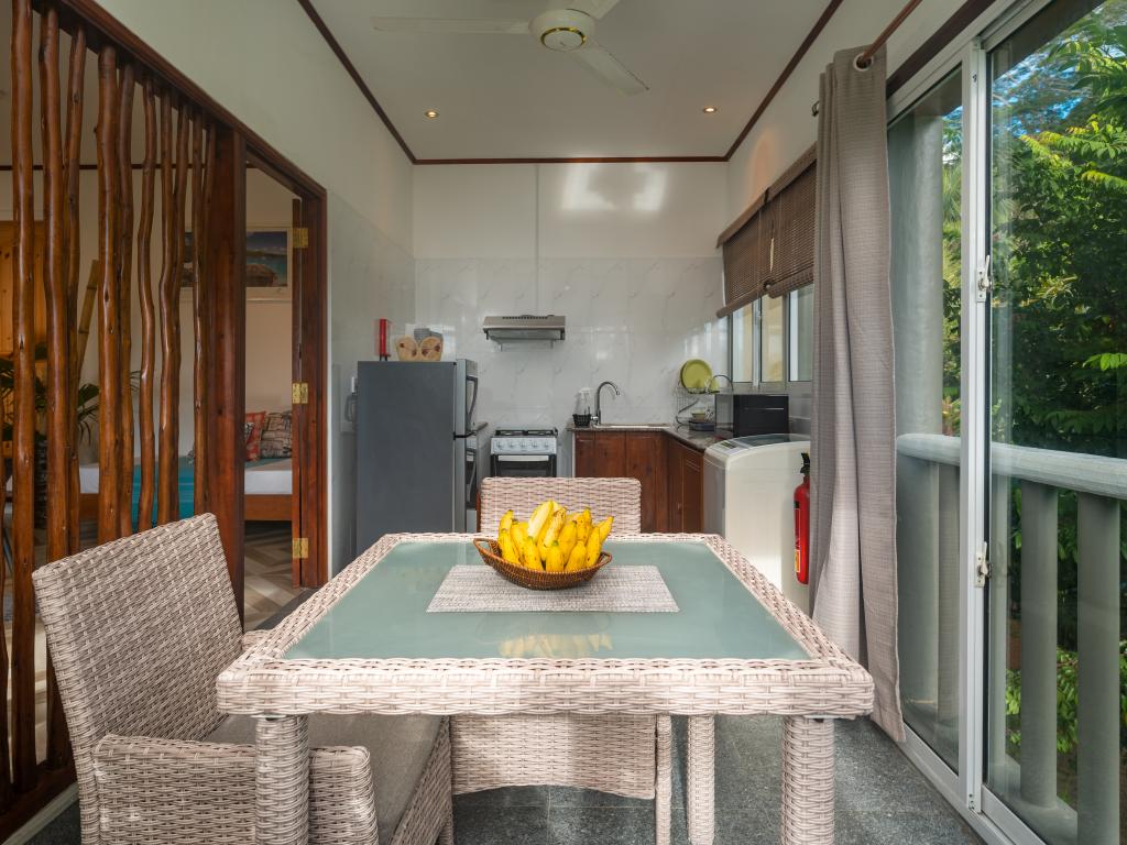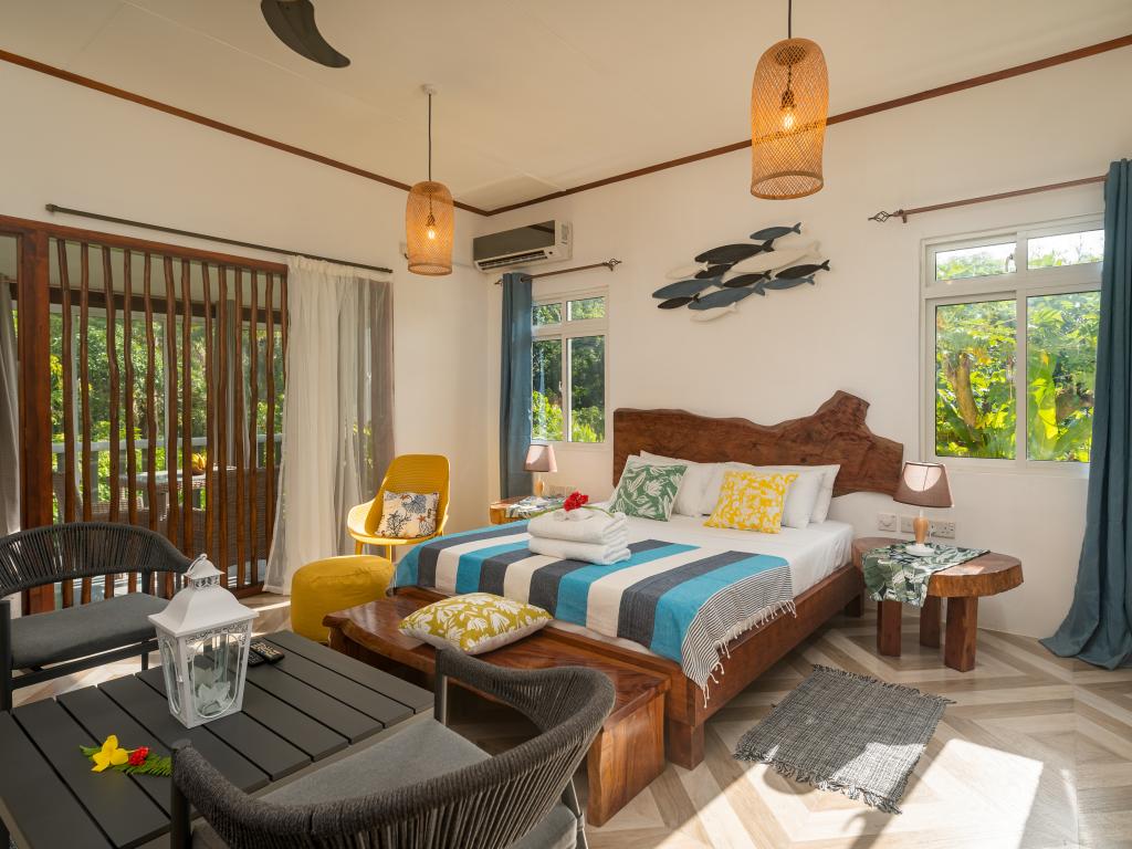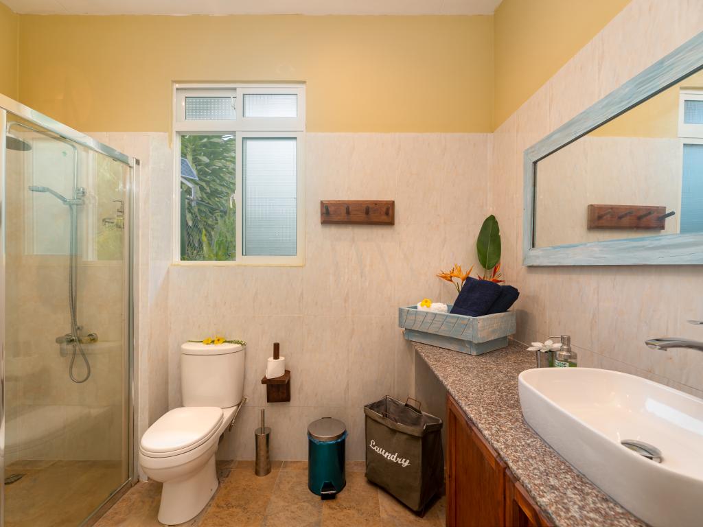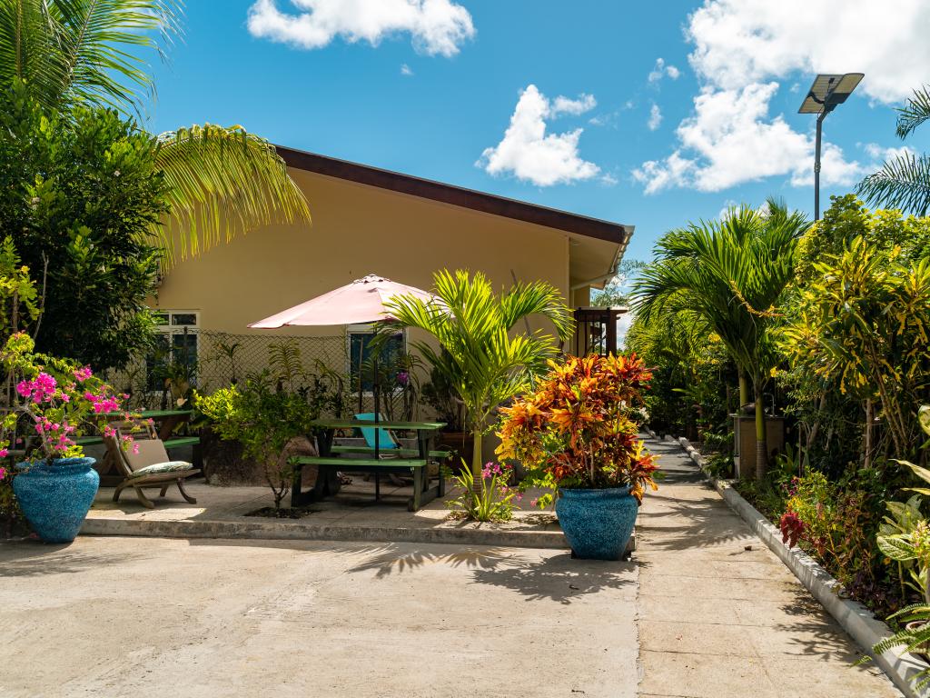 Auf unserem Inselhopping die letzte Unterkunft und mind. 8 Sterne wert, liegt im Westen von Mahe`, eine kleine Ruheoase am Rande des Dschungels, max. 10 min zu Fuß zum wunderschönen Anse la Mouche mit traumhaftem Sonnenuntergang, geschmackvolles und super gemütliches Appartement mit voll ausgestatteter Küche und toller Sitzecke im Garten, die Gastgeberin Jessie ist super herzlich, sie hat uns mit frischem Obst und Kokoswasser begrüßt und für uns Bananenbrot gebacken, Einkaufsmöglichkeiten, Restaurant und Pizzaria befinden sich fußläufig, ein guter Take Away direkt am Strand, unseren Mietwagen haben wir bereits über SeyVillas vorab gebucht, er wurde zur Unterkunft gebracht und dort wieder abgeholt, perfekt!