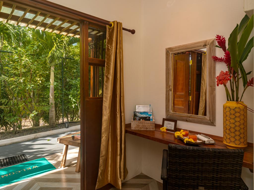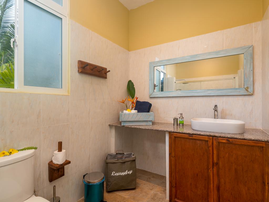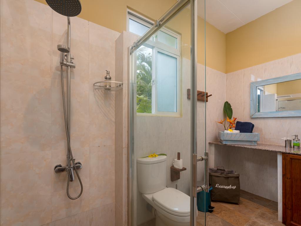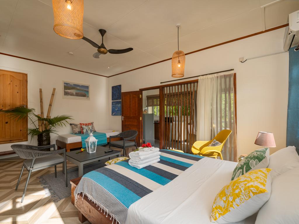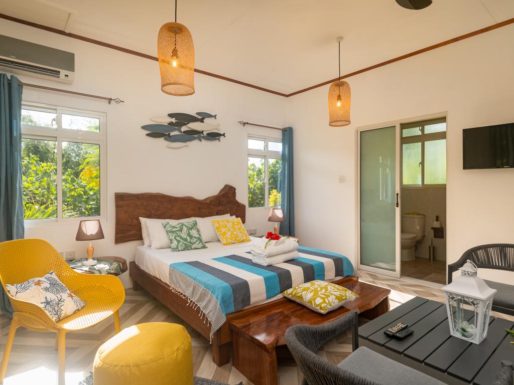 Auf unserem Inselhopping die letzte Unterkunft und mind. 8 Sterne wert, liegt im Westen von Mahe`, eine kleine Ruheoase am Rande des Dschungels, max. 10 min zu Fuß zum wunderschönen Anse la Mouche mit traumhaftem Sonnenuntergang, geschmackvolles und super gemütliches Appartement mit voll ausgestatteter Küche und toller Sitzecke im Garten, die Gastgeberin Jessie ist super herzlich, sie hat uns mit frischem Obst und Kokoswasser begrüßt und für uns Bananenbrot gebacken, Einkaufsmöglichkeiten, Restaurant und Pizzaria befinden sich fußläufig, ein guter Take Away direkt am Strand, unseren Mietwagen haben wir bereits über SeyVillas vorab gebucht, er wurde zur Unterkunft gebracht und dort wieder abgeholt, perfekt!