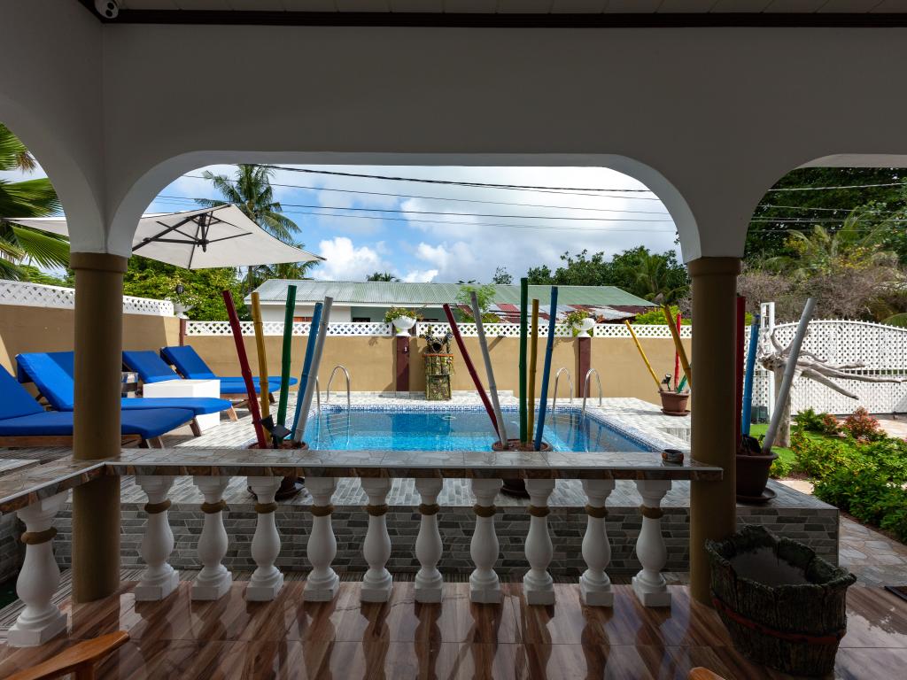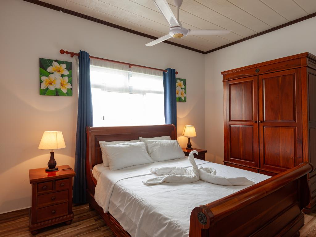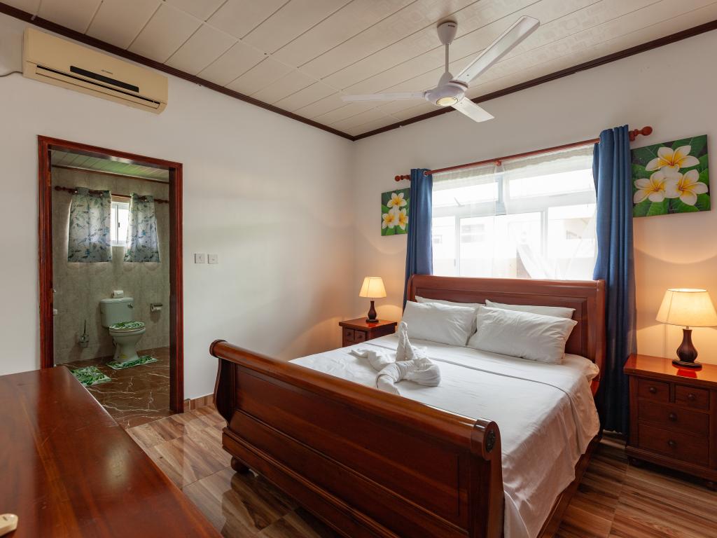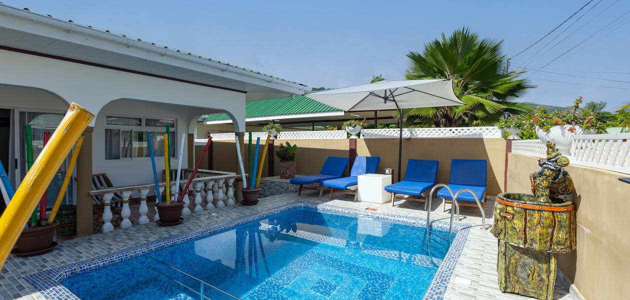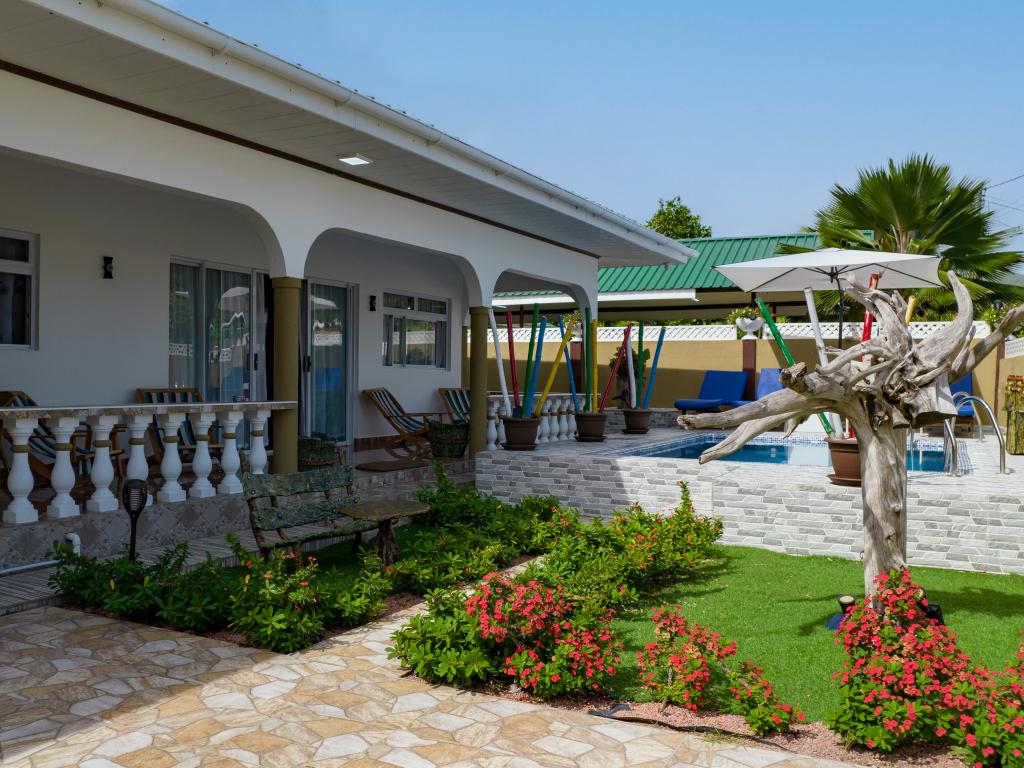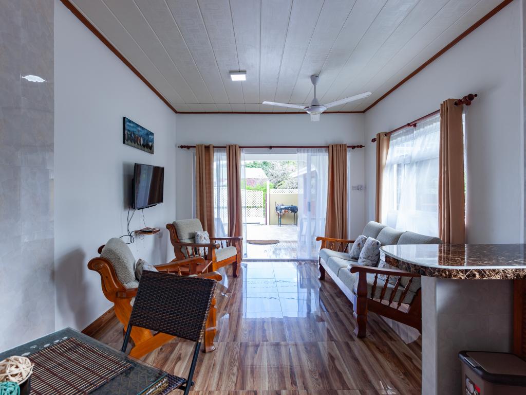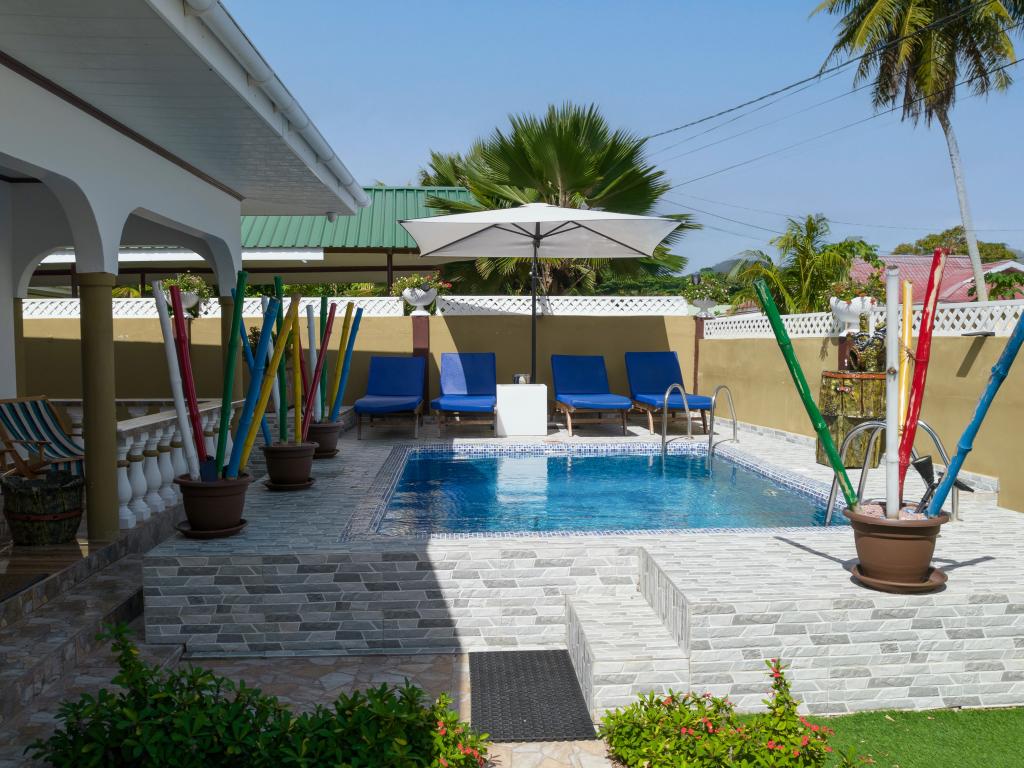 Die komfortabel ausgestattete "Happy Stay Villa" empfängt Sie in St. Joseph in der Küstenregion Praslins und in praktischer Nähe zum kleinen Insel-Flughafen. Direkt an dem gepflegten Haus wartet nicht nur eine überdachte Terrasse mit Liegestühlen, sondern auch ein gemeinschaftlich genutzter Pool auf die Gäste. Bis zum nächsten Strand Grand Anse Beach sind es nur knapp 400 m, auch Restaurants, Shops und Einkaufsmöglichkeiten befinden sich in fußläufiger Entfernung.