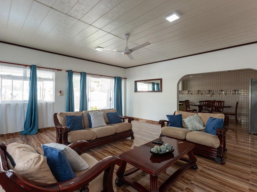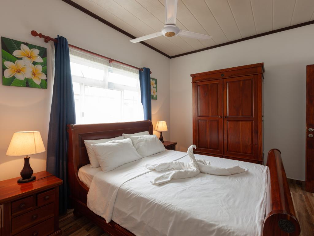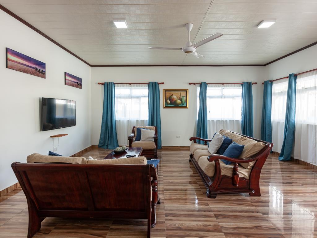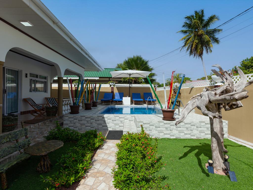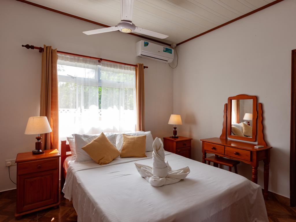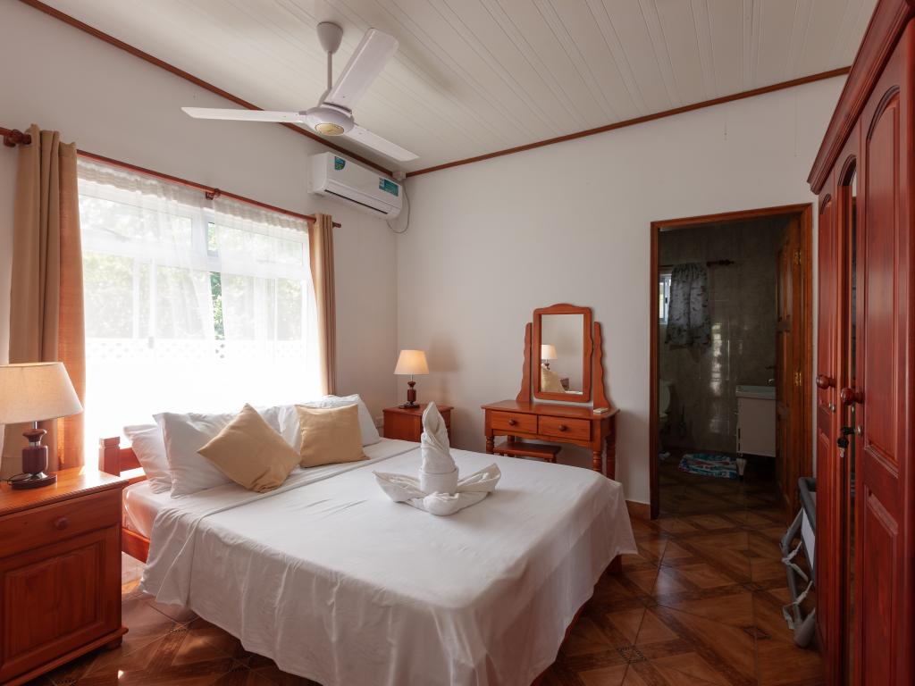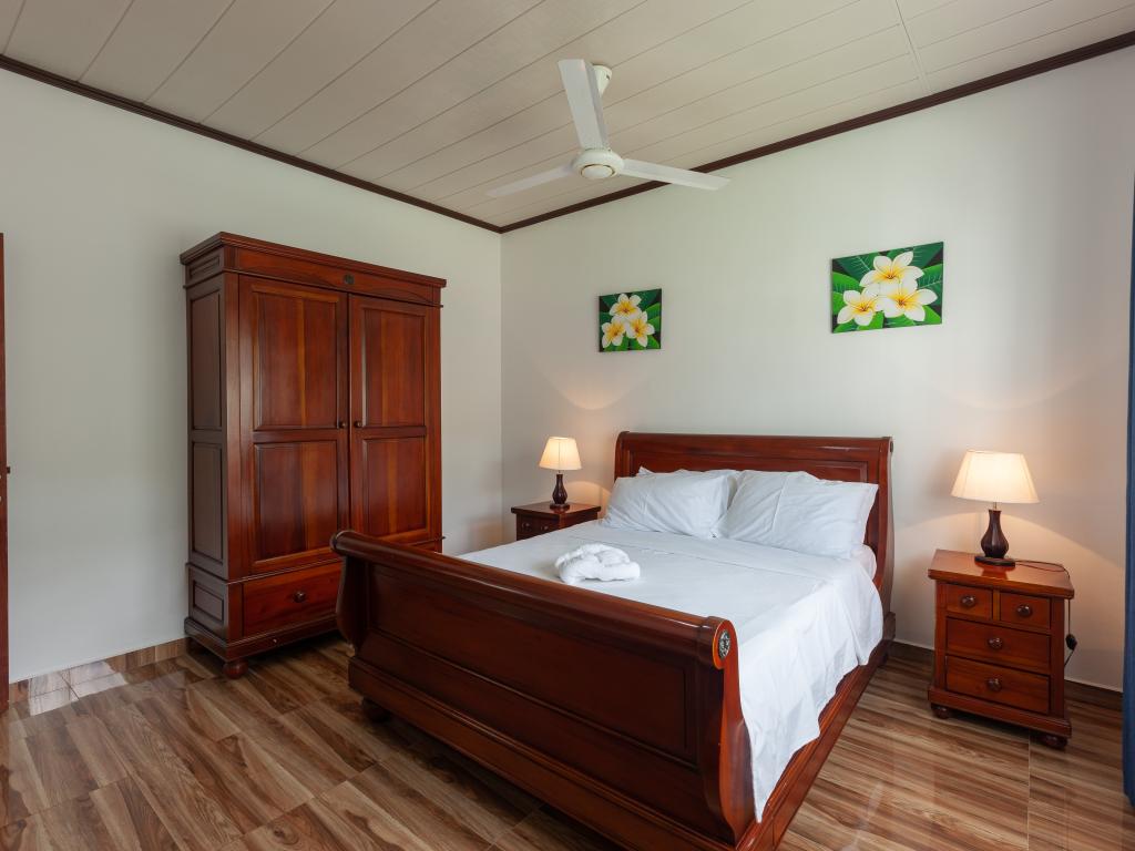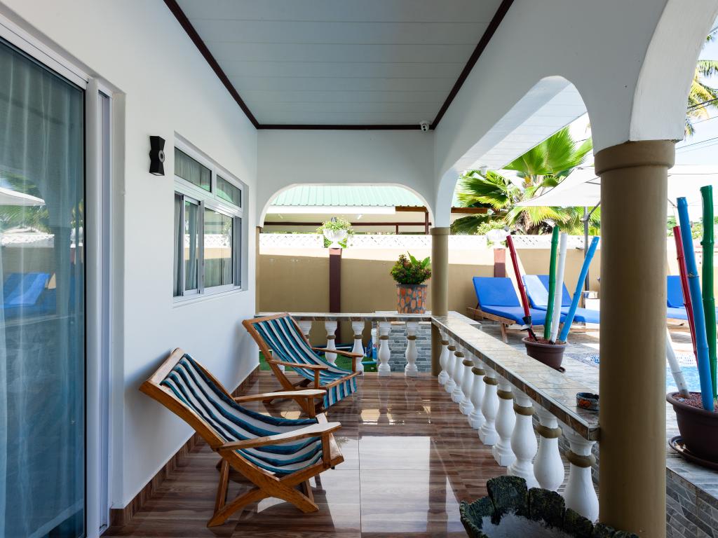 Die komfortabel ausgestattete "Happy Stay Villa" empfängt Sie in St. Joseph in der Küstenregion Praslins und in praktischer Nähe zum kleinen Insel-Flughafen. Direkt an dem gepflegten Haus wartet nicht nur eine überdachte Terrasse mit Liegestühlen, sondern auch ein gemeinschaftlich genutzter Pool auf die Gäste. Bis zum nächsten Strand Grand Anse Beach sind es nur knapp 400 m, auch Restaurants, Shops und Einkaufsmöglichkeiten befinden sich in fußläufiger Entfernung.